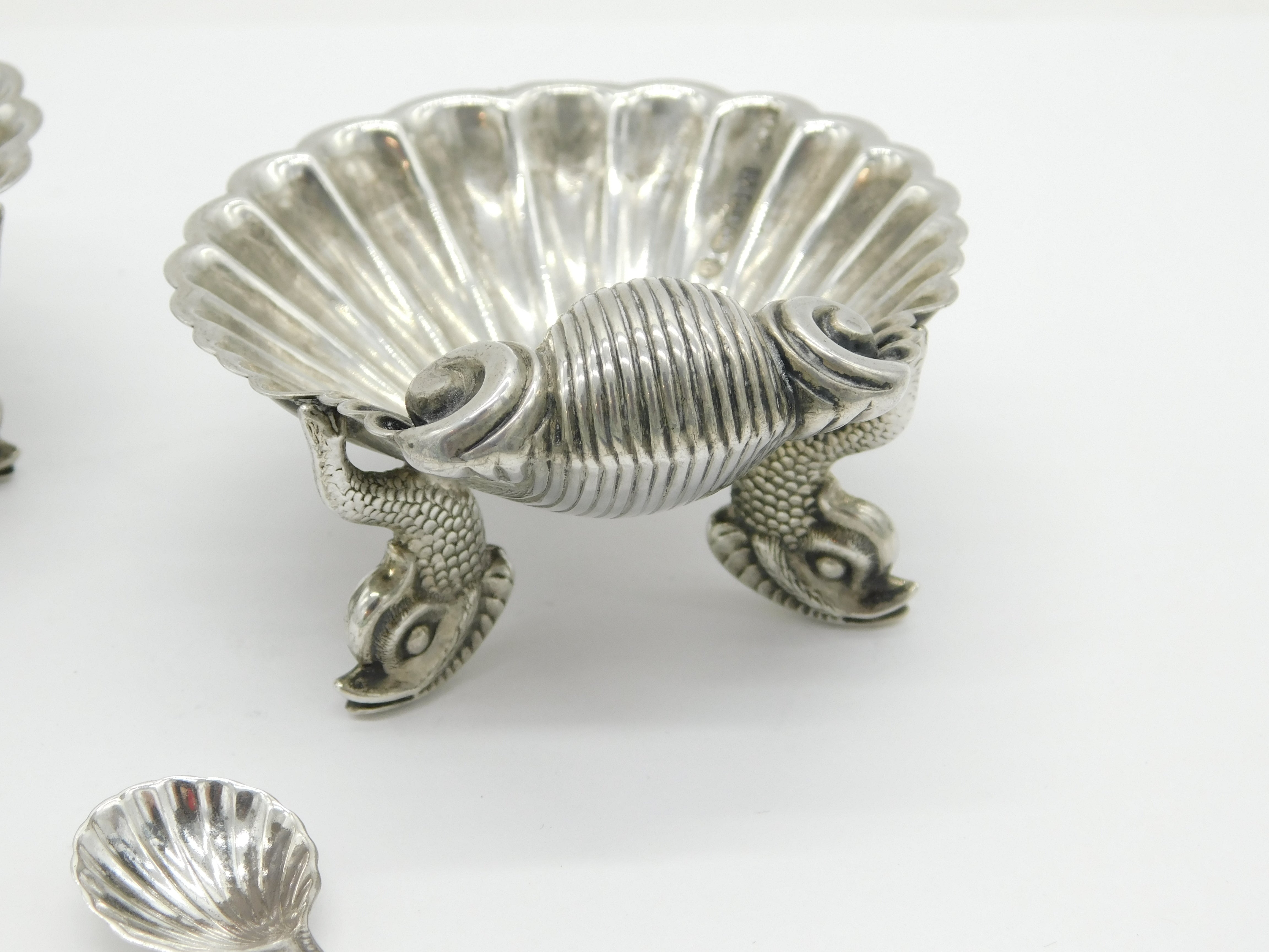 Victorian Pair of Sterling Silver Dolphin Salt Cellars Antique 1864 Birmingham