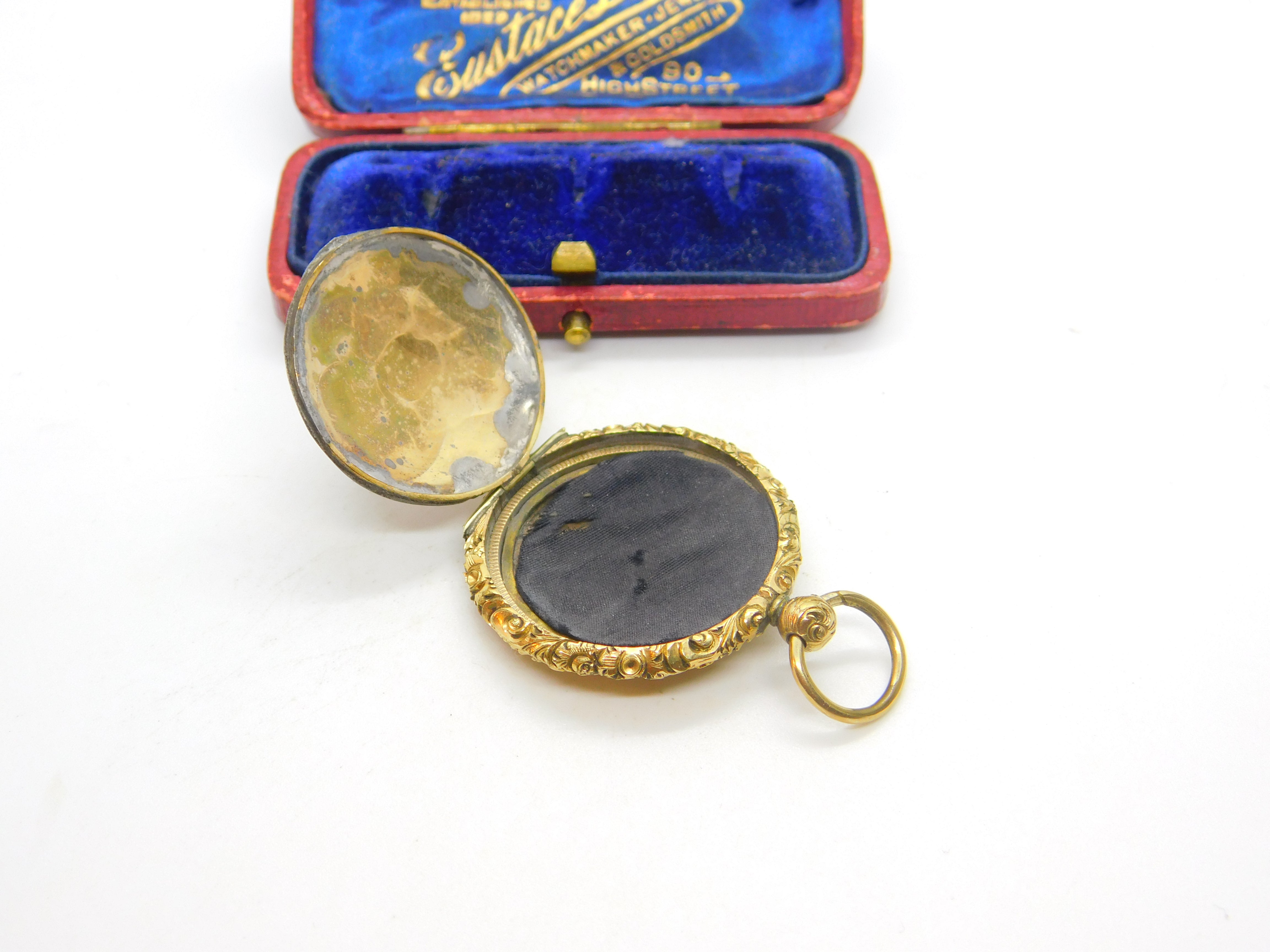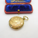 Victorian Pinchbeck Gold Floral Pattern Locket Fob Pendant Antique c1860