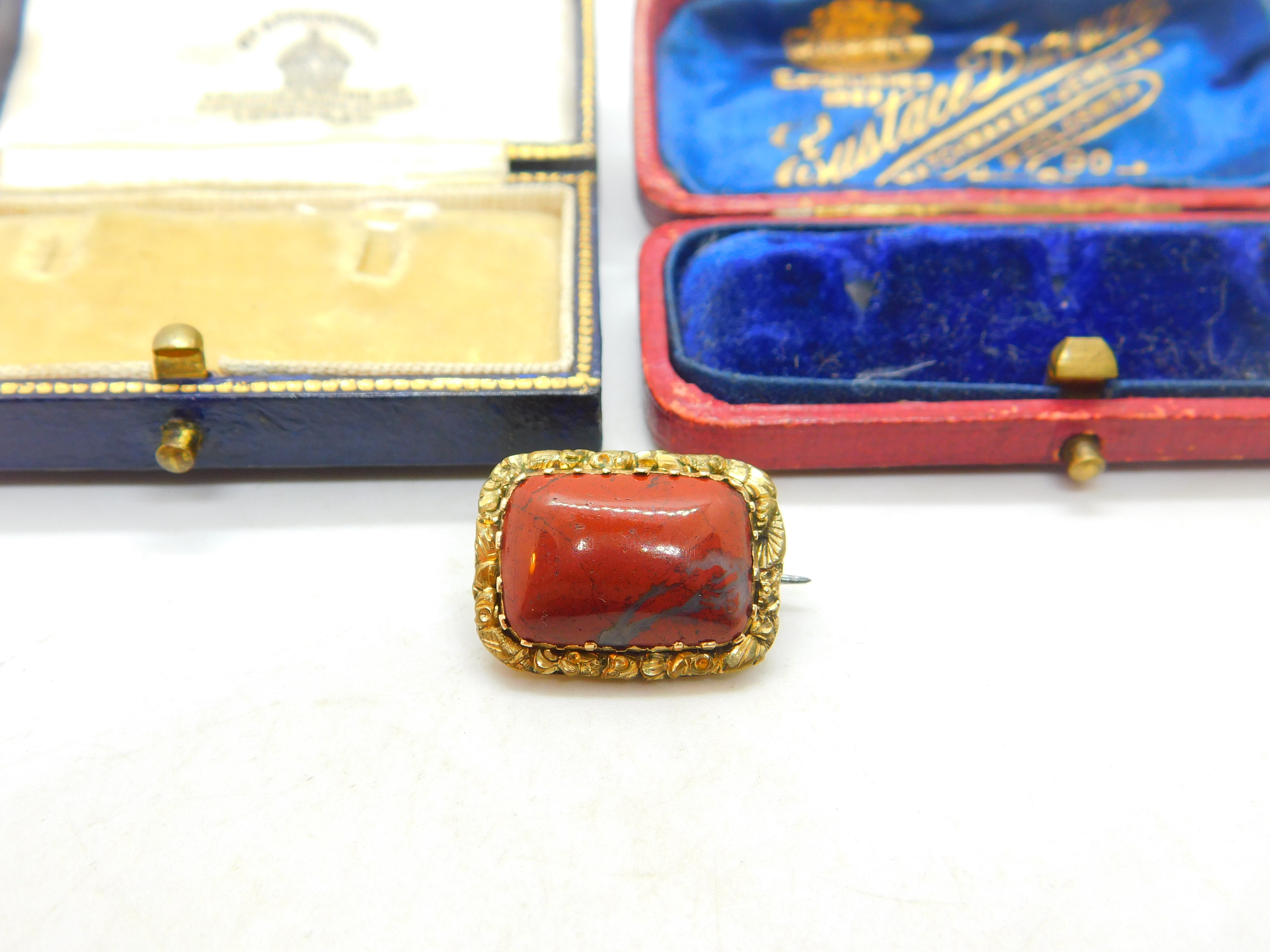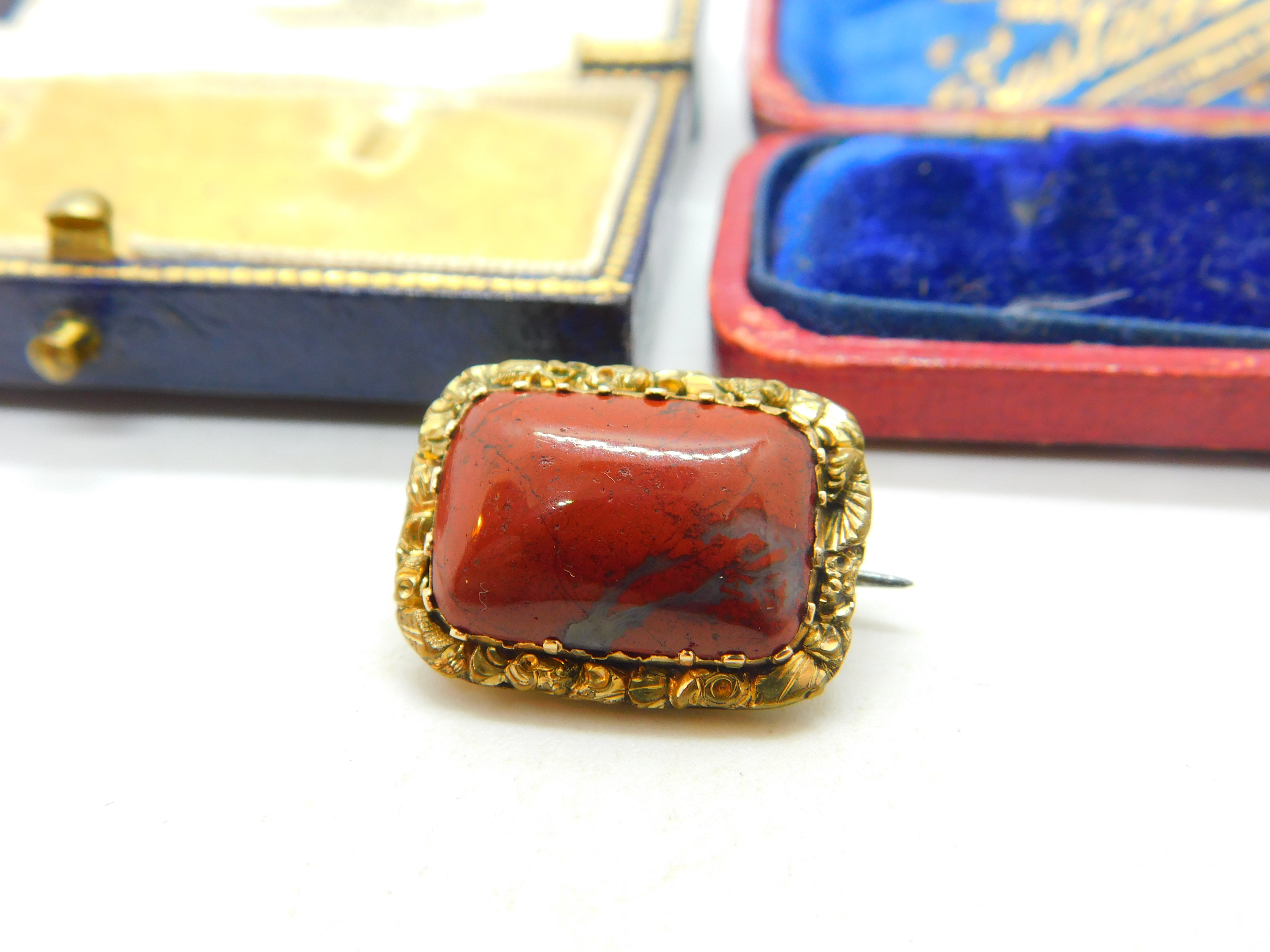 Victorian Rolled Gold & Red Jasper Floral Cushion Brooch Pin Antique c1890