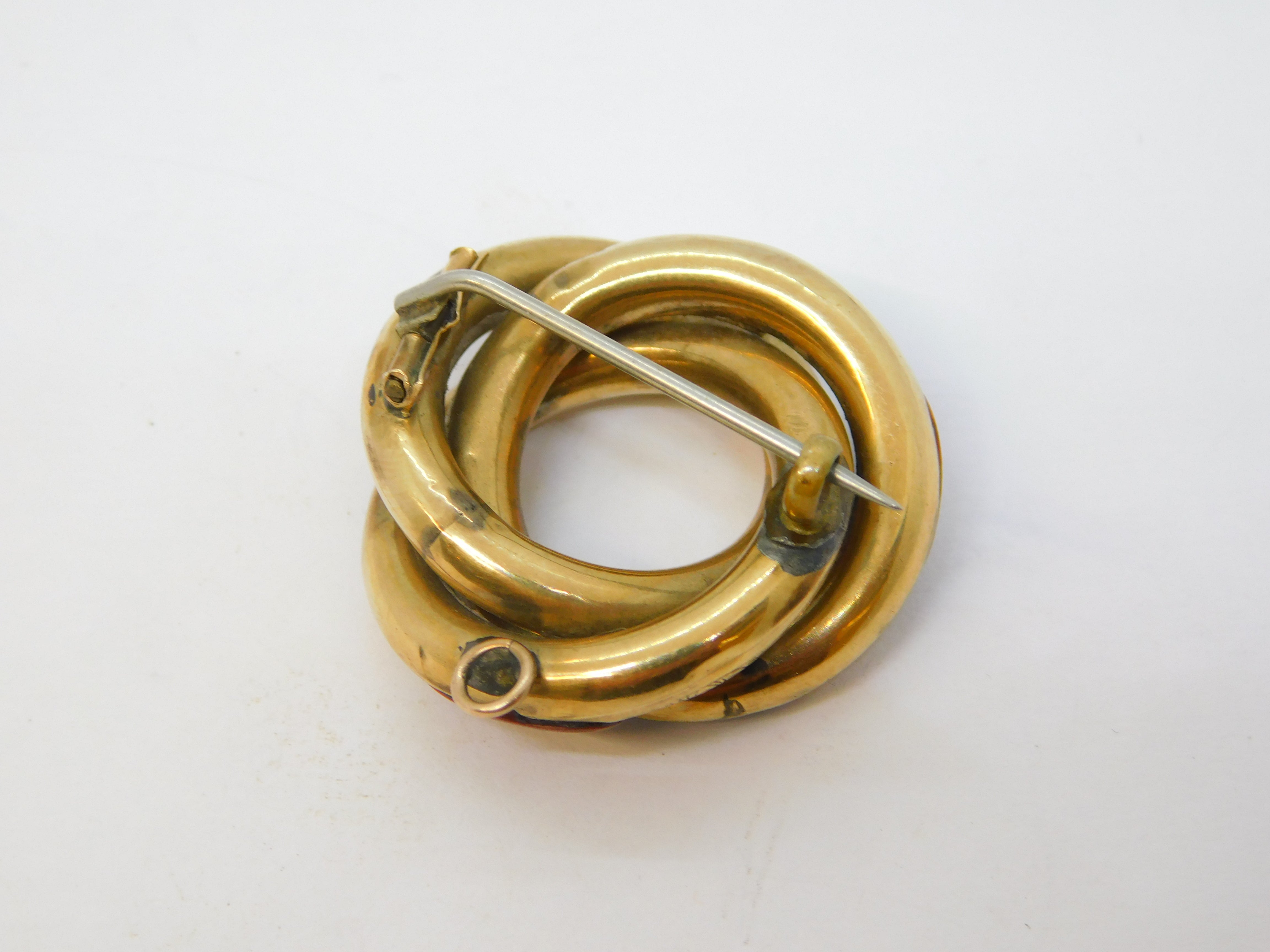 Victorian Scottish 9ct Gold, Montrose & Red Agate Knot Brooch Antique c1860
