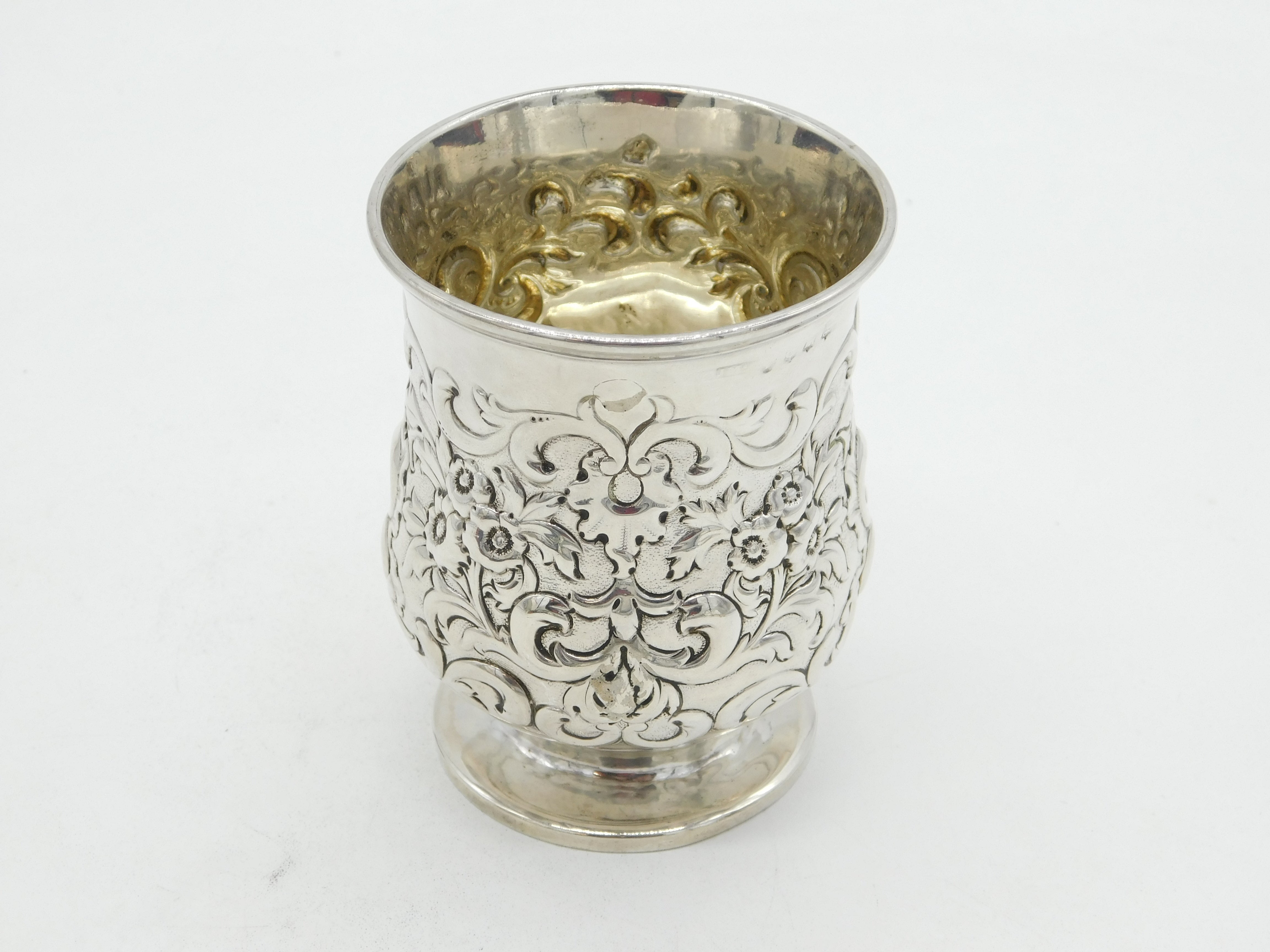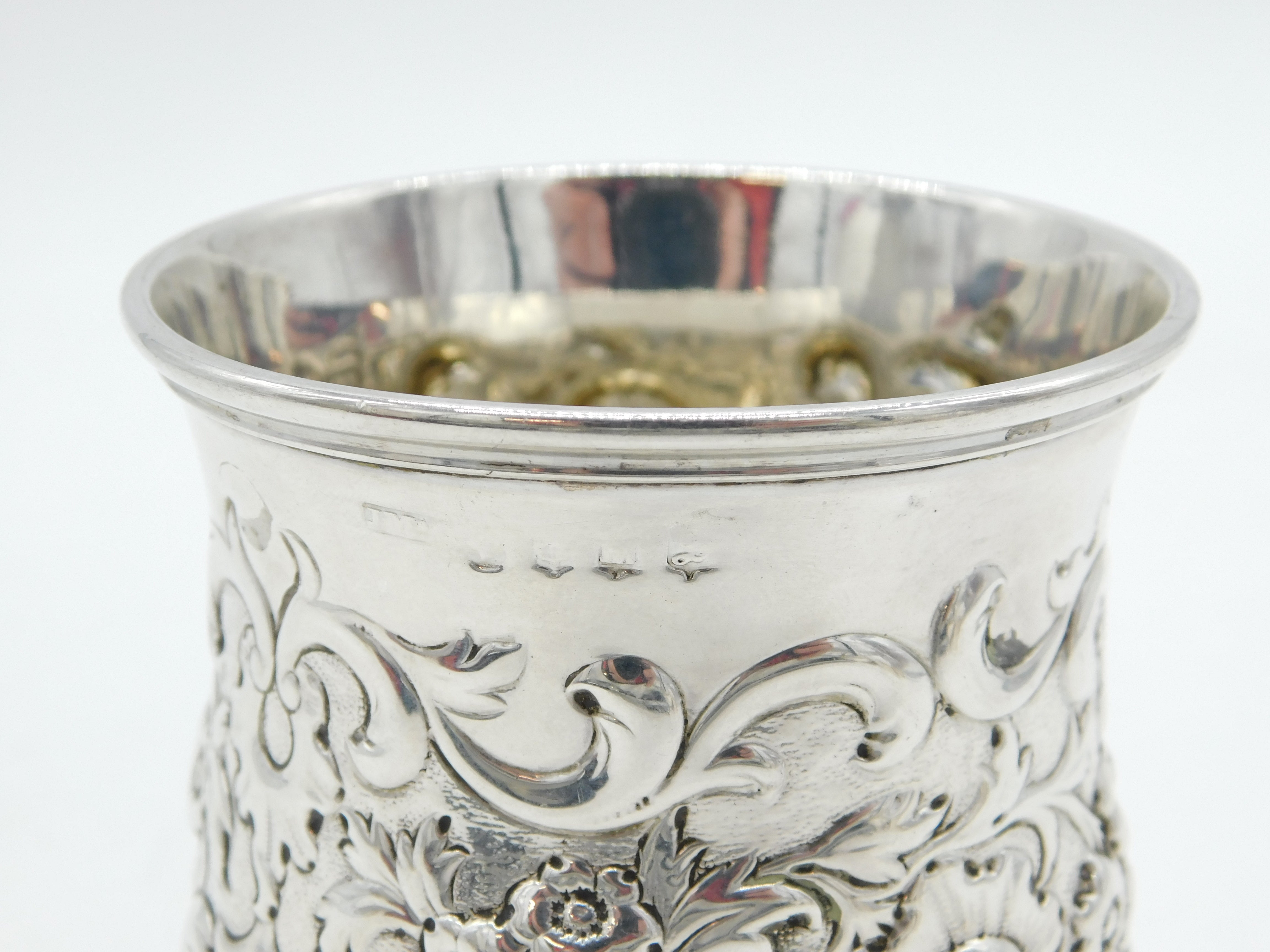 Details: A fantastic and wonderfully designed antique early-Victorian sterling silver floral pattern beaker mug with lovely detailing hallmarked Edinburgh 1849 by Jonathan Millidge. This is a wonderful item that would make a perfect gift or addition to any collection.