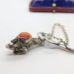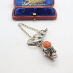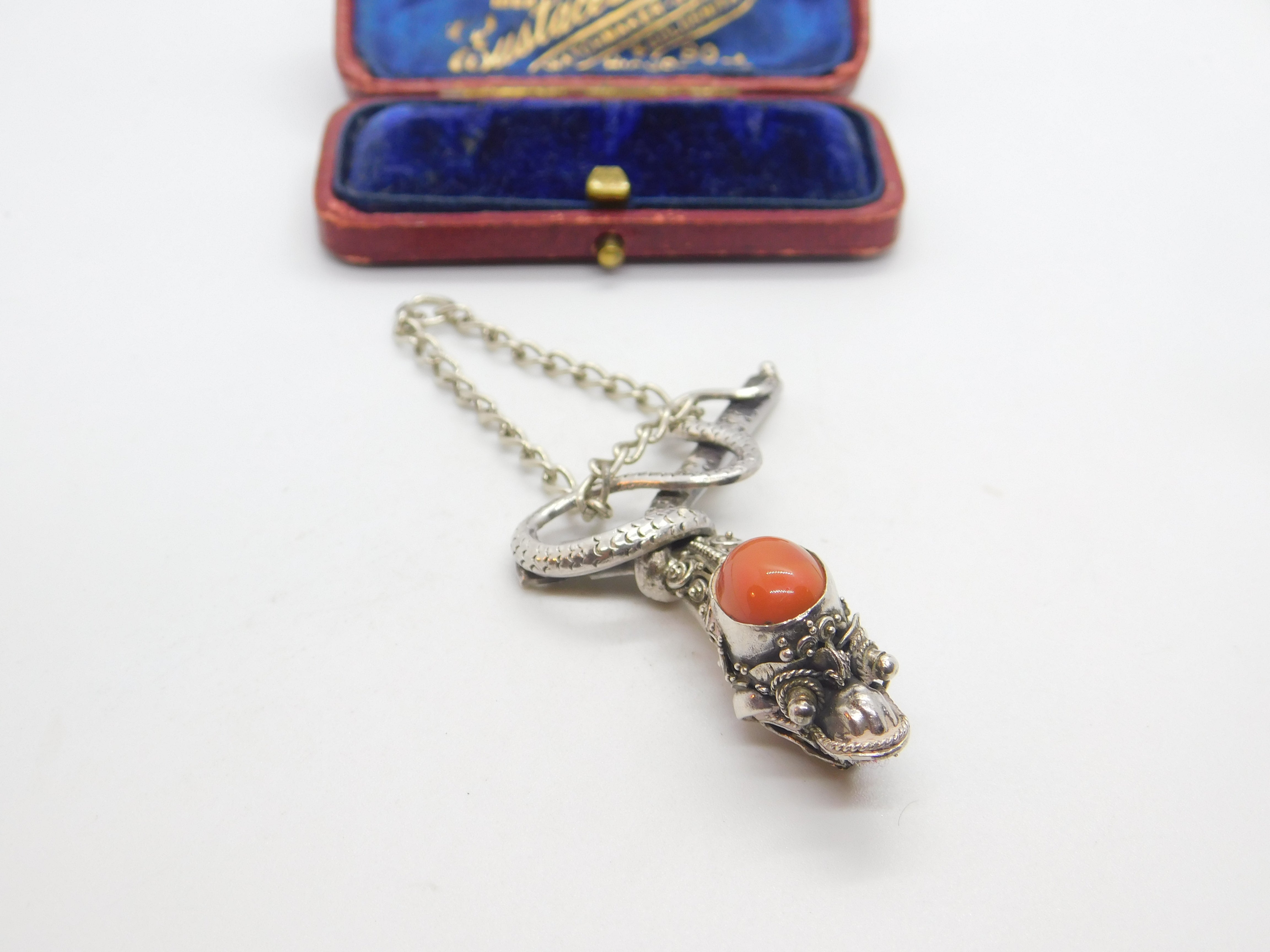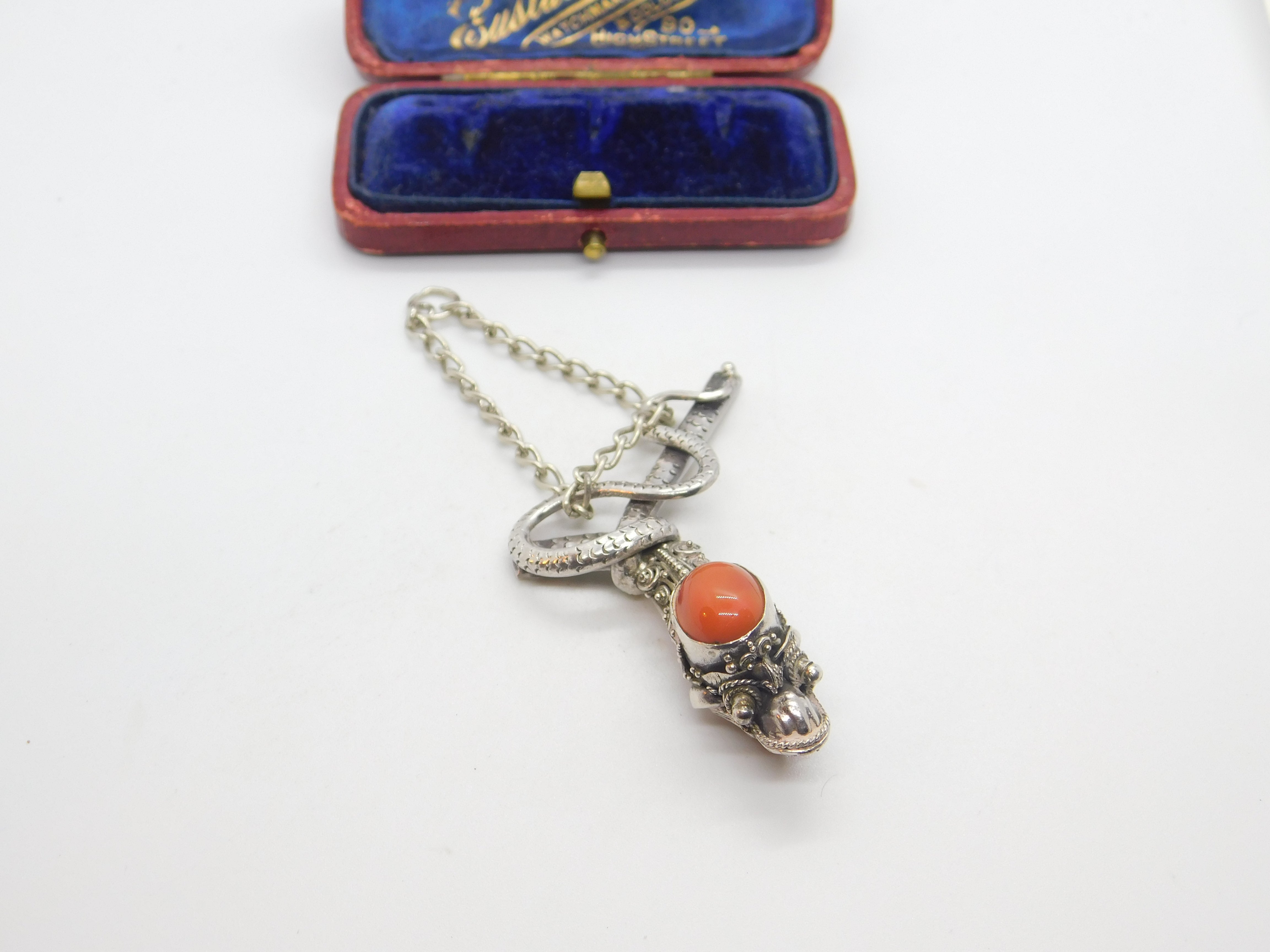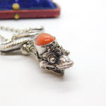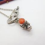 Victorian Sterling Silver & Cabochon Coral Set Snake Pendant Antique c1890
