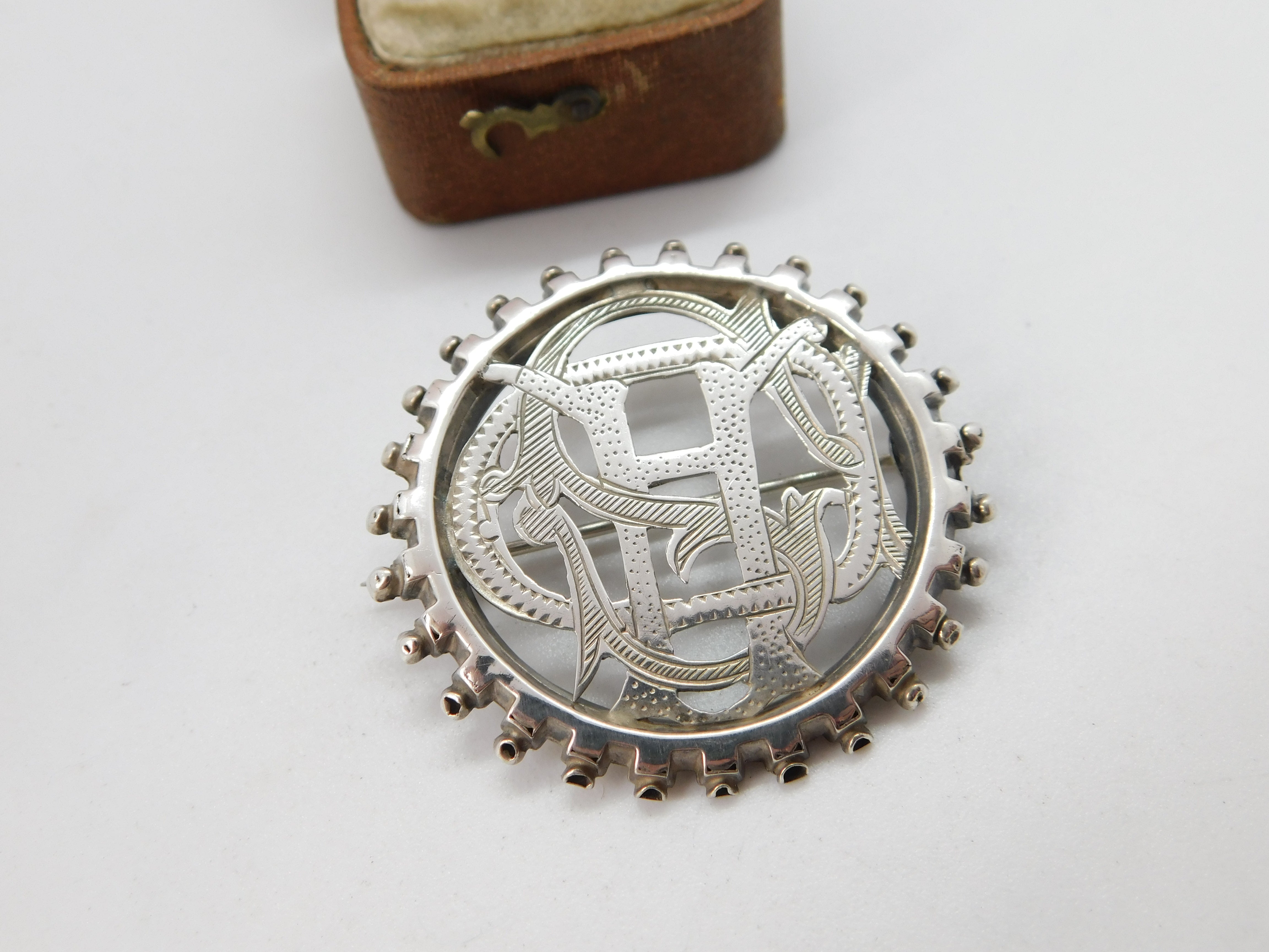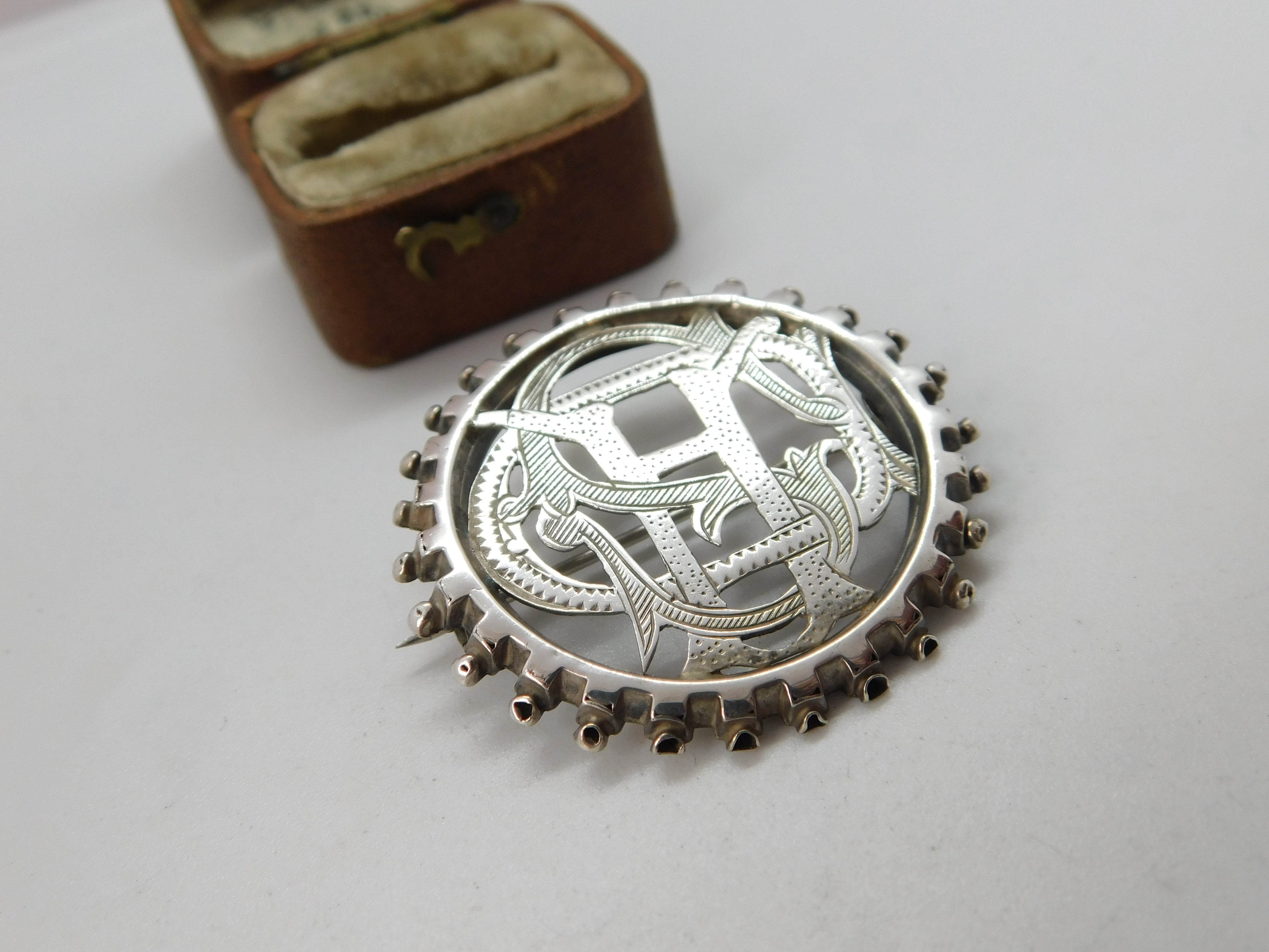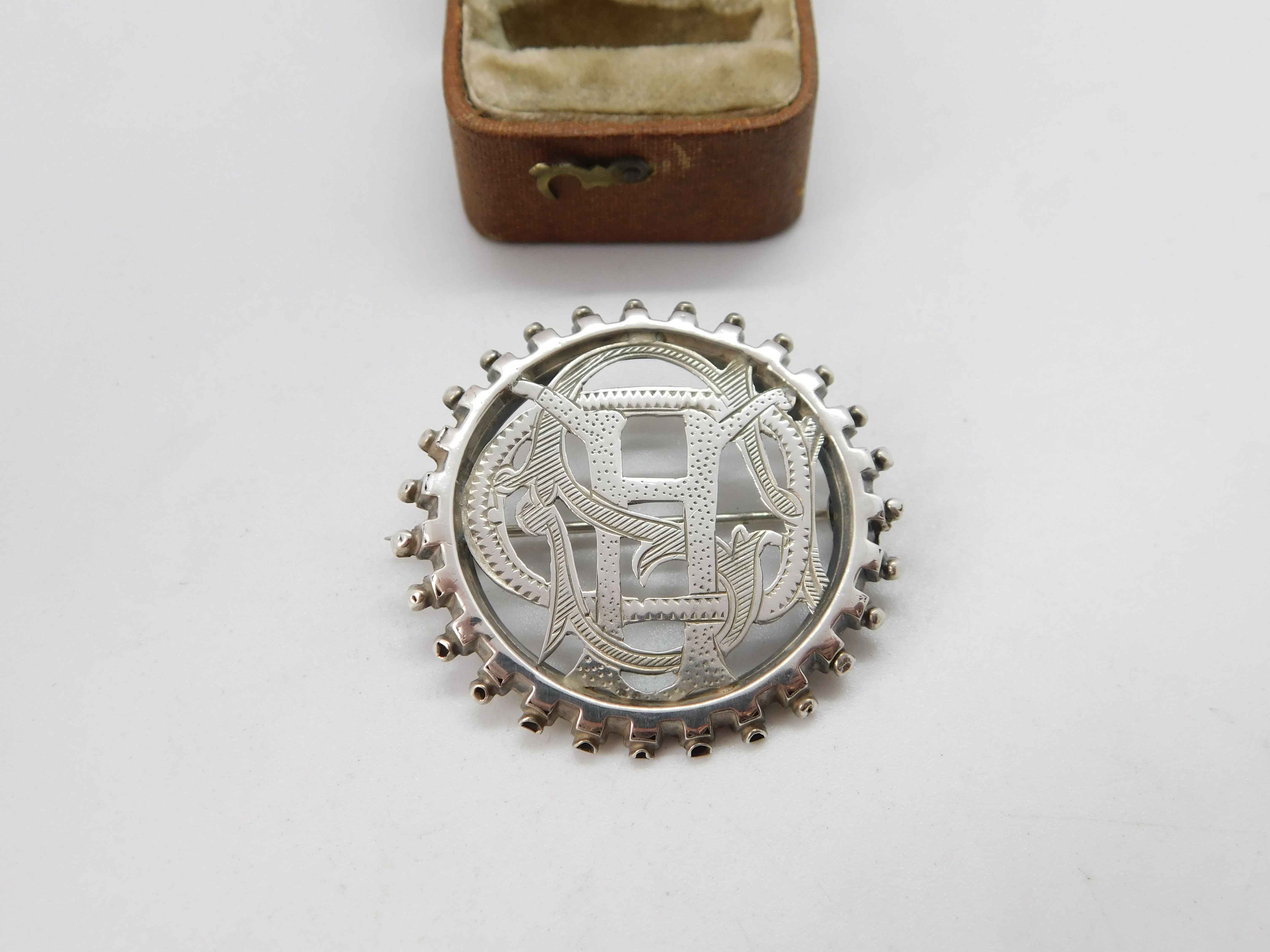 Victorian Sterling Silver 'CHS' Monogram Sweetheart Brooch c1880 Antique