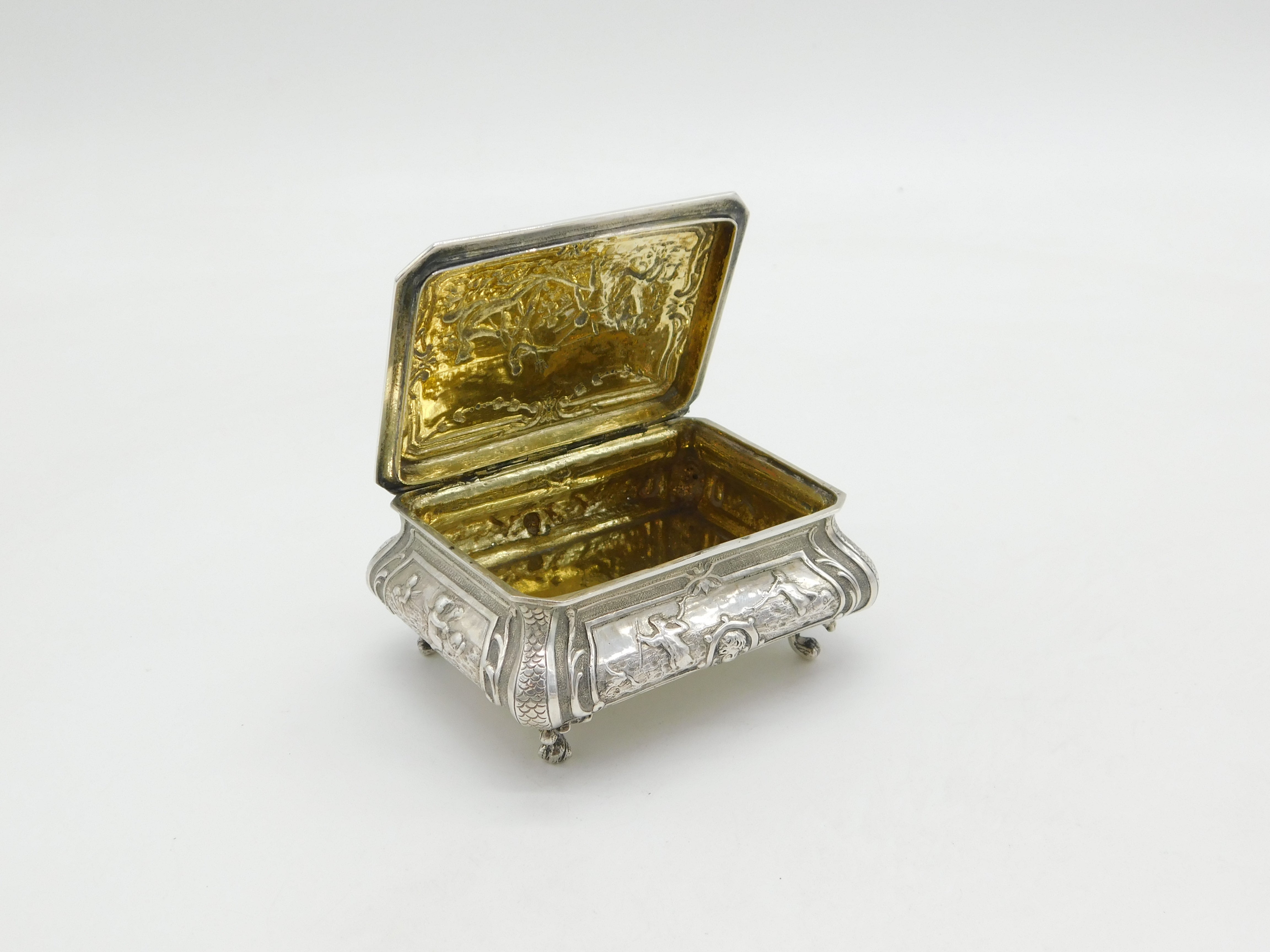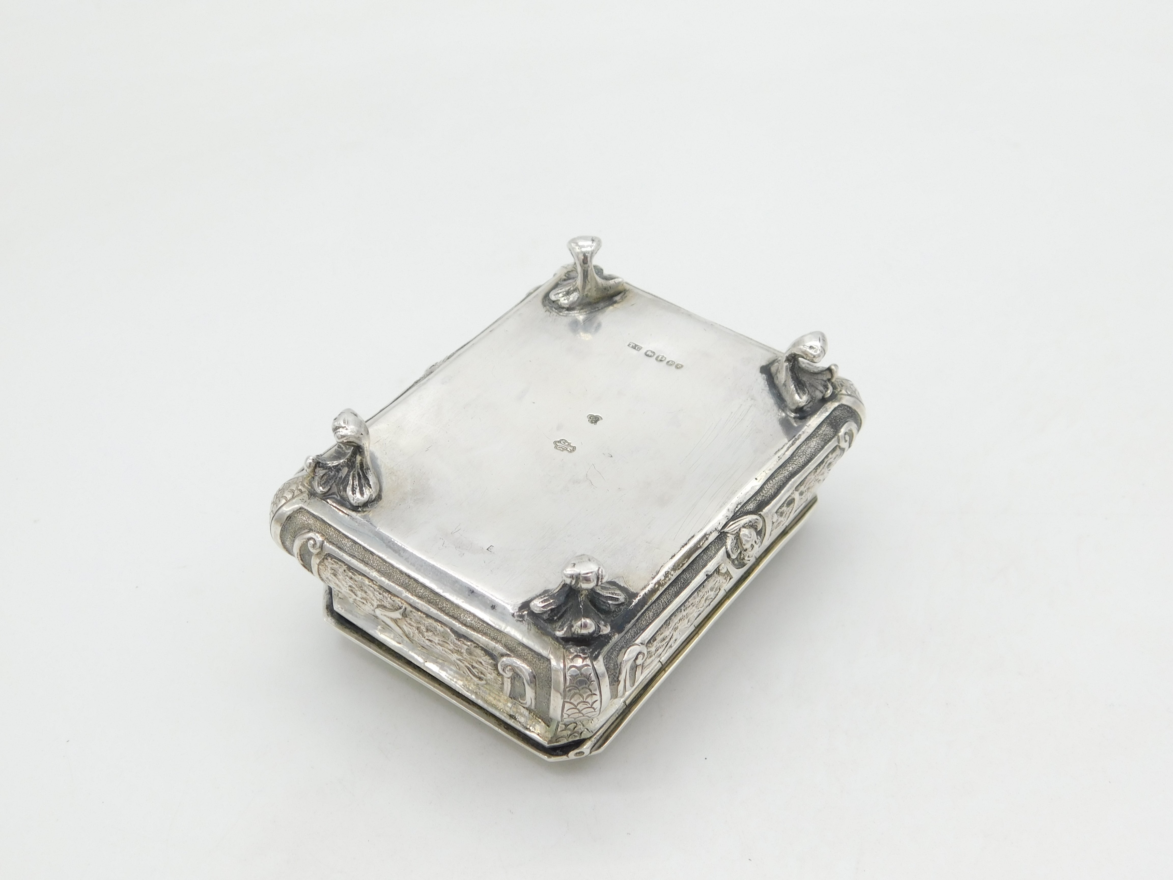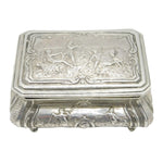 Details: A fantastic and wonderfully designed antique Victorian sterling silver jewellery box casket with lovely classical chariot battle scene to the to lid and throughout hallmarked London 1890 with import hallmarks by Thomas Glaser. This is a wonderful item that would make a perfect gift or addition to any collection.