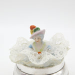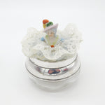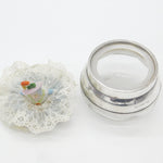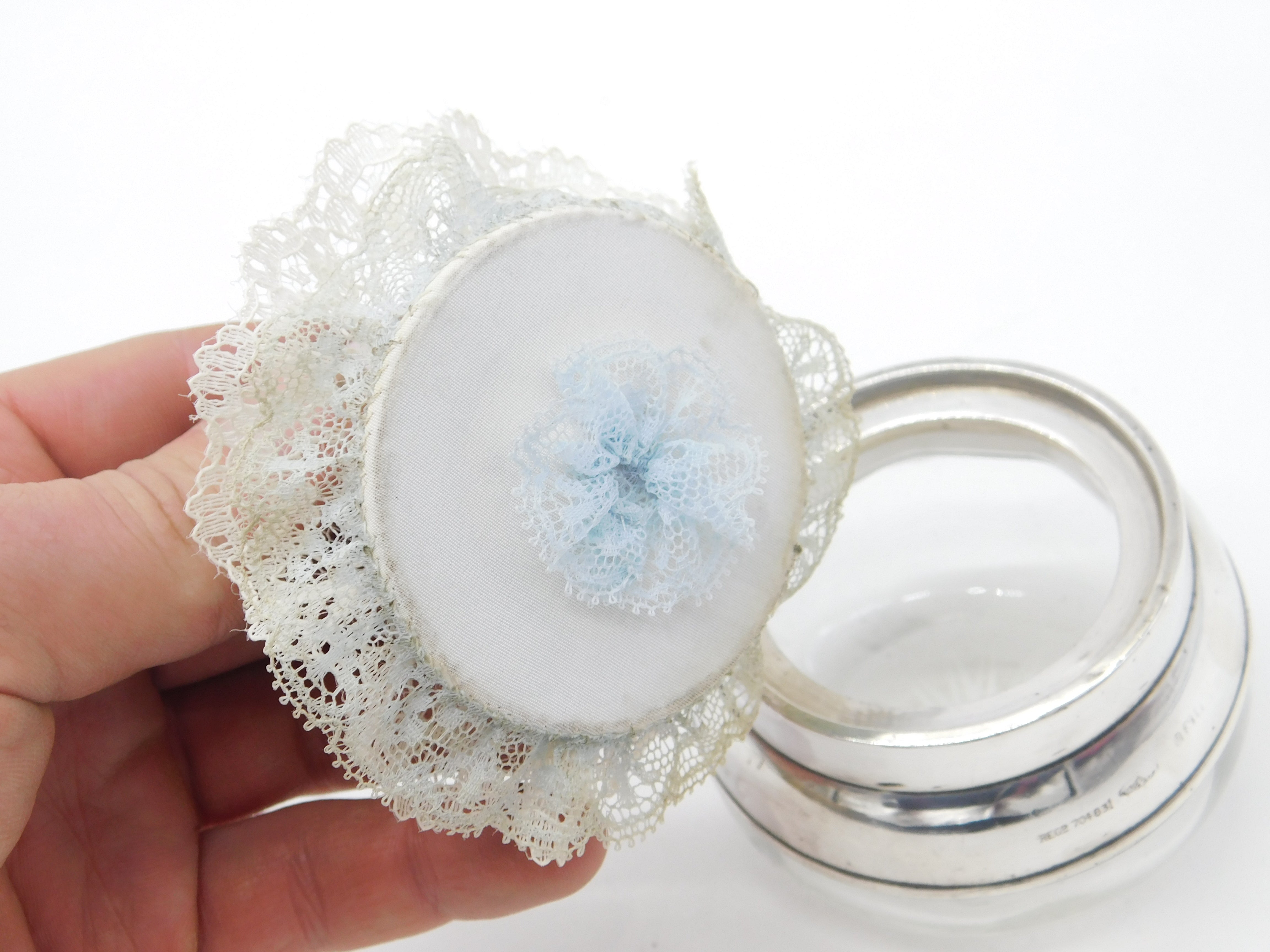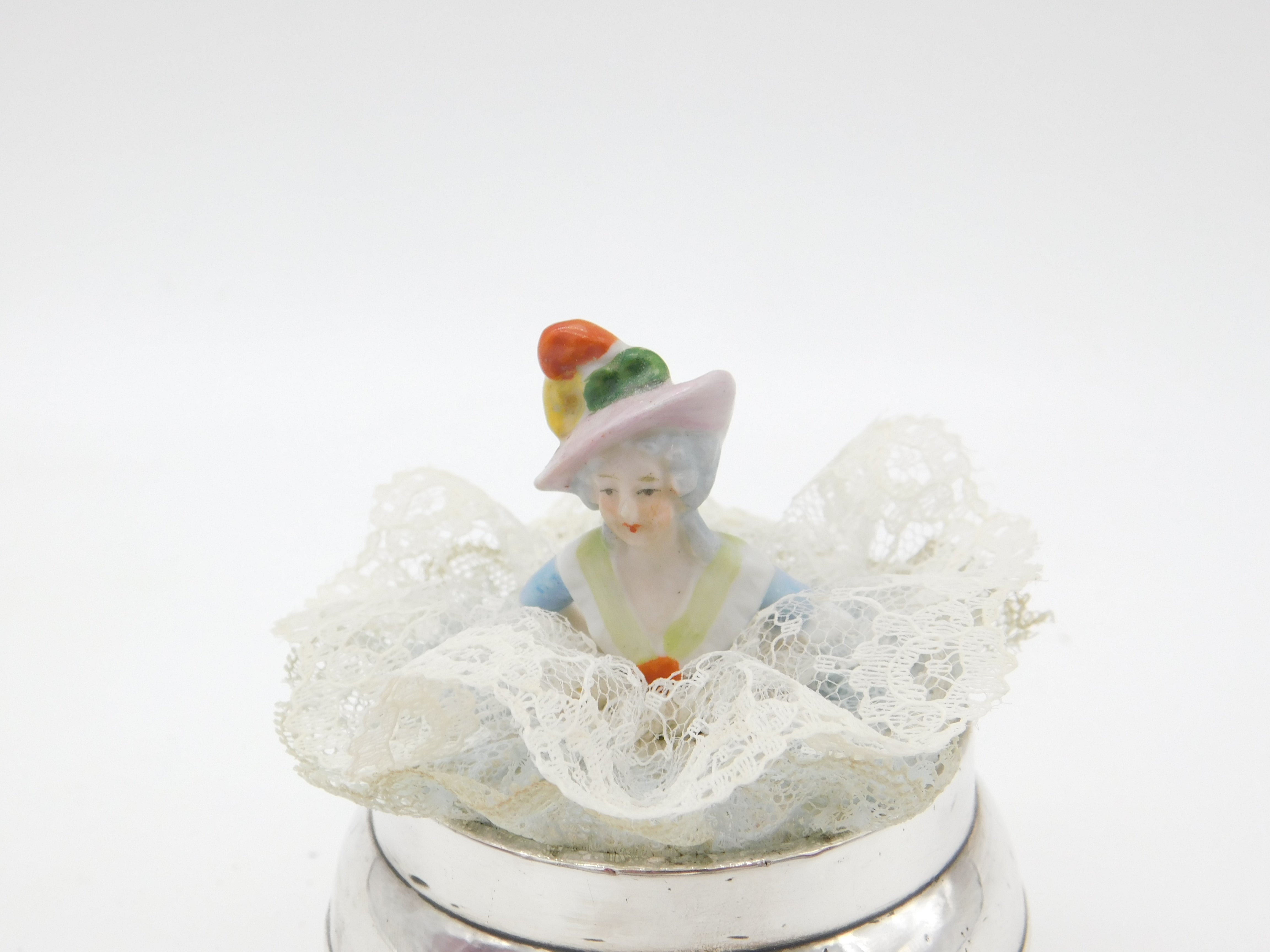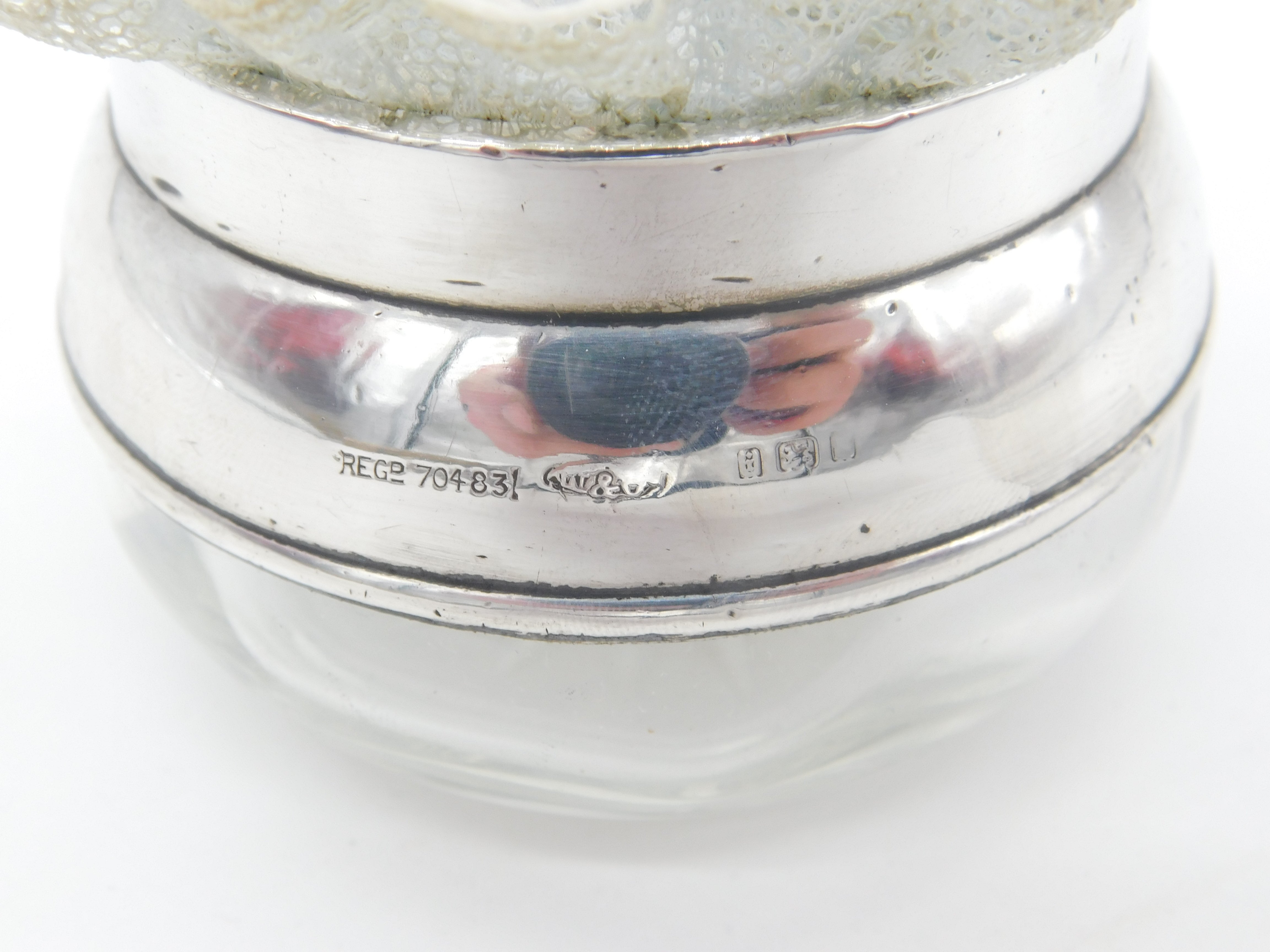 Victorian Sterling Silver & Cut Glass Trinket Pot with Porcelain Dolly Lid 1901
