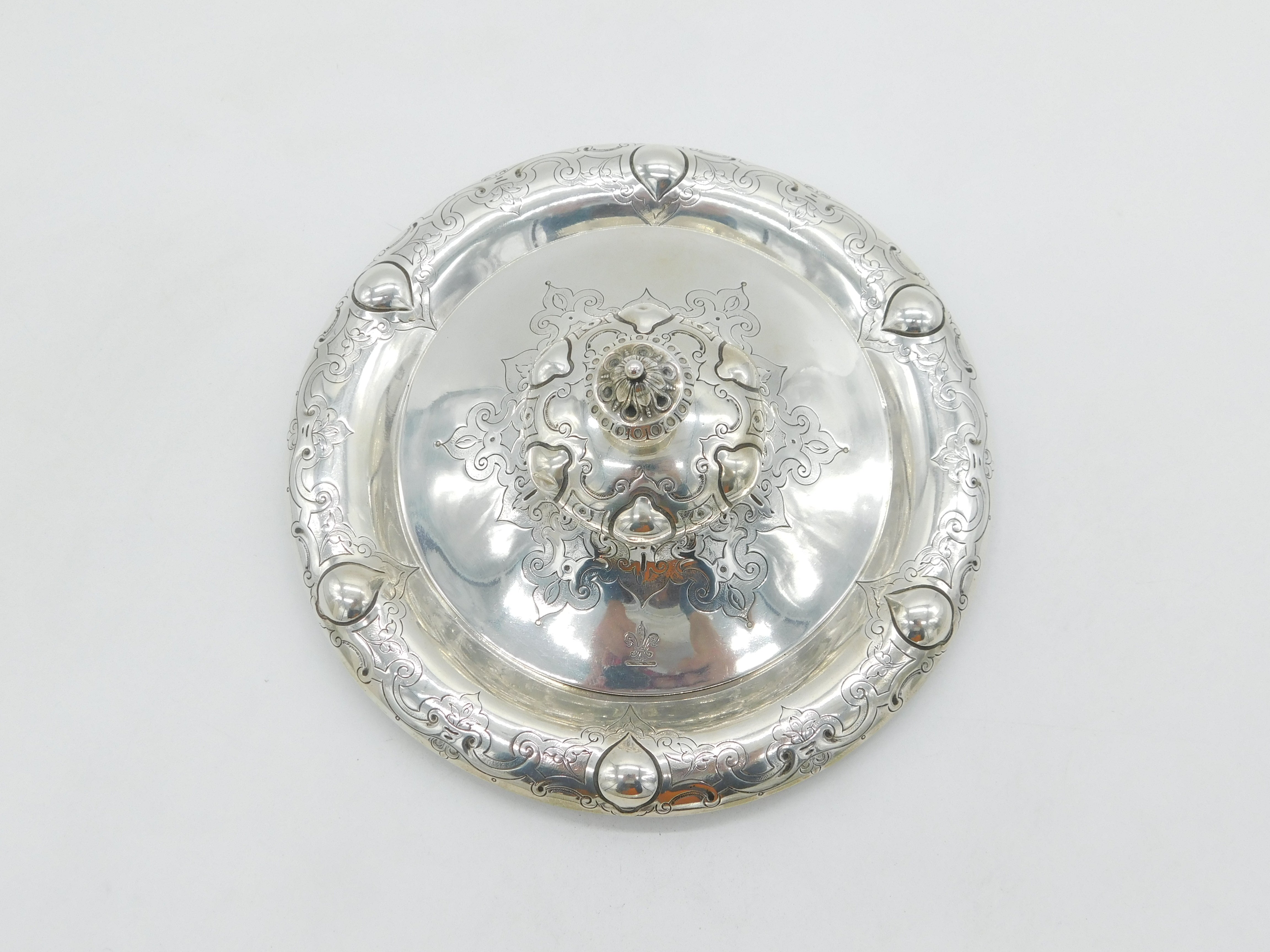 Details: A fantastic and wonderfully designed antique mid-Victorian sterling silver decorative butter dish with superb detailing and patterns throughout to include fleur-de-lis crest hallmarked London 1862 by Edward & John Barnard. This is a wonderful item that would make a perfect gift or addition to any collection. We are more than happy to provide XRF reports for items upon request.