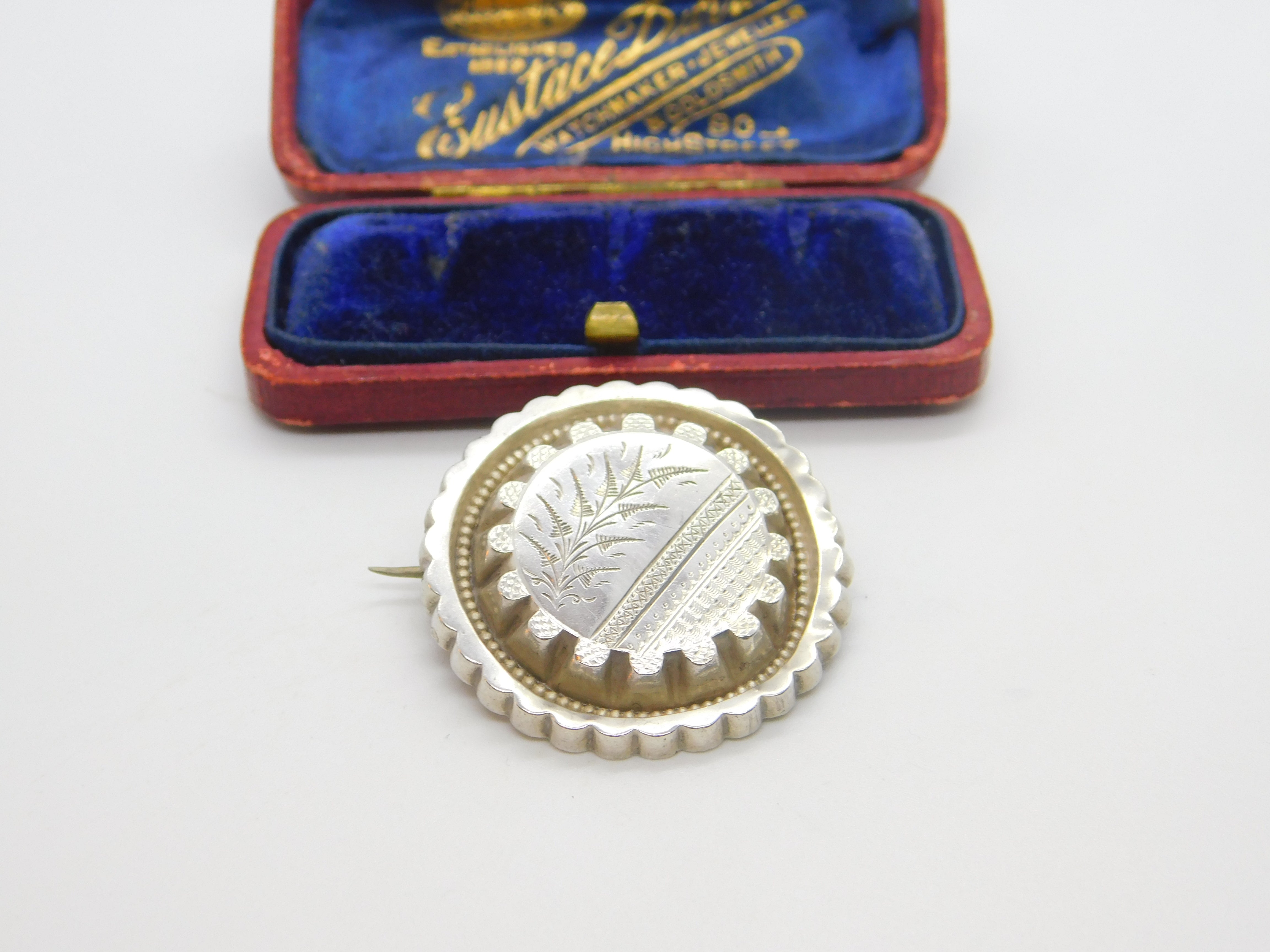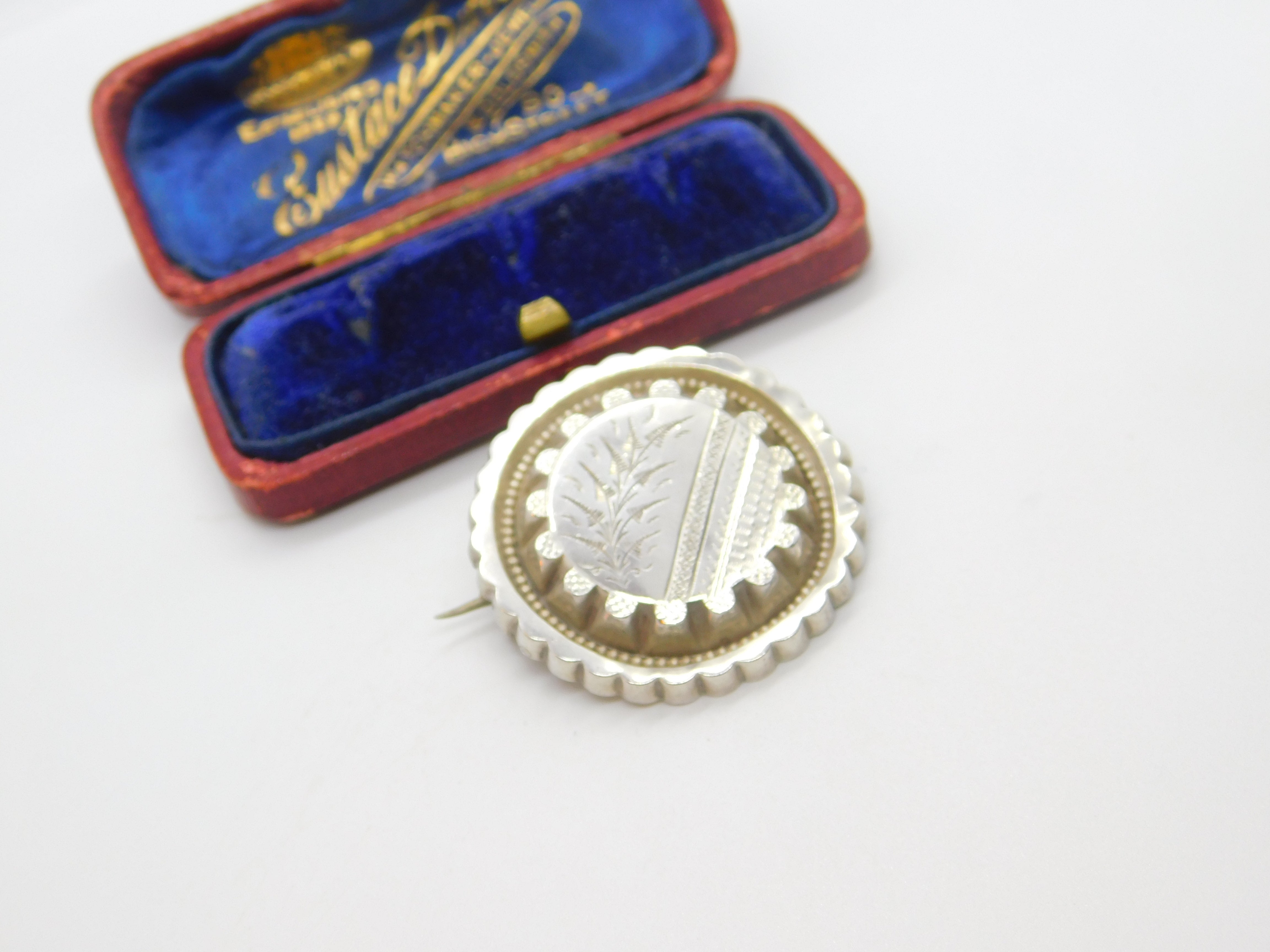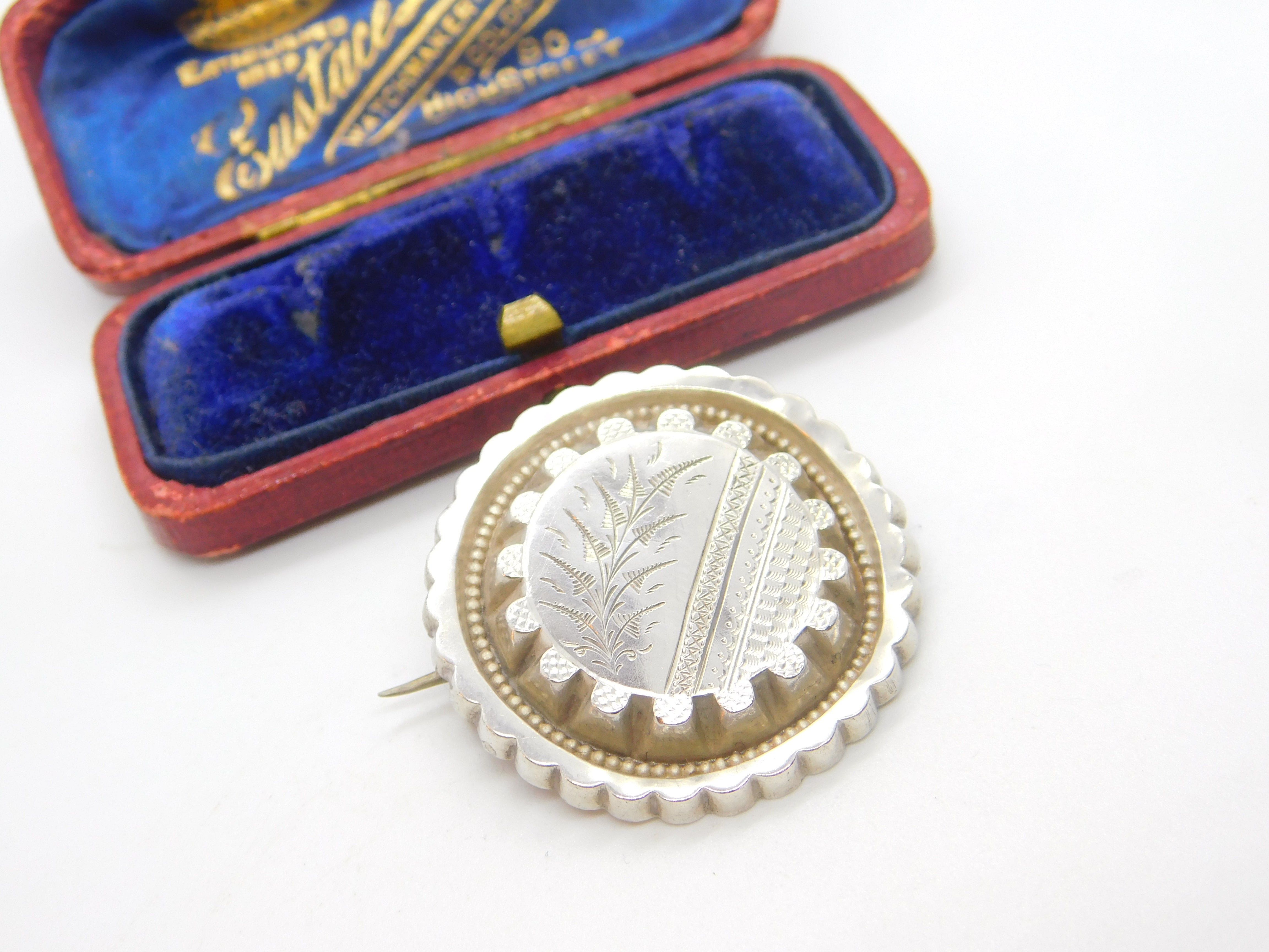 Victorian Sterling Silver Fern Pattern Sweetheart Brooch Antique c1880