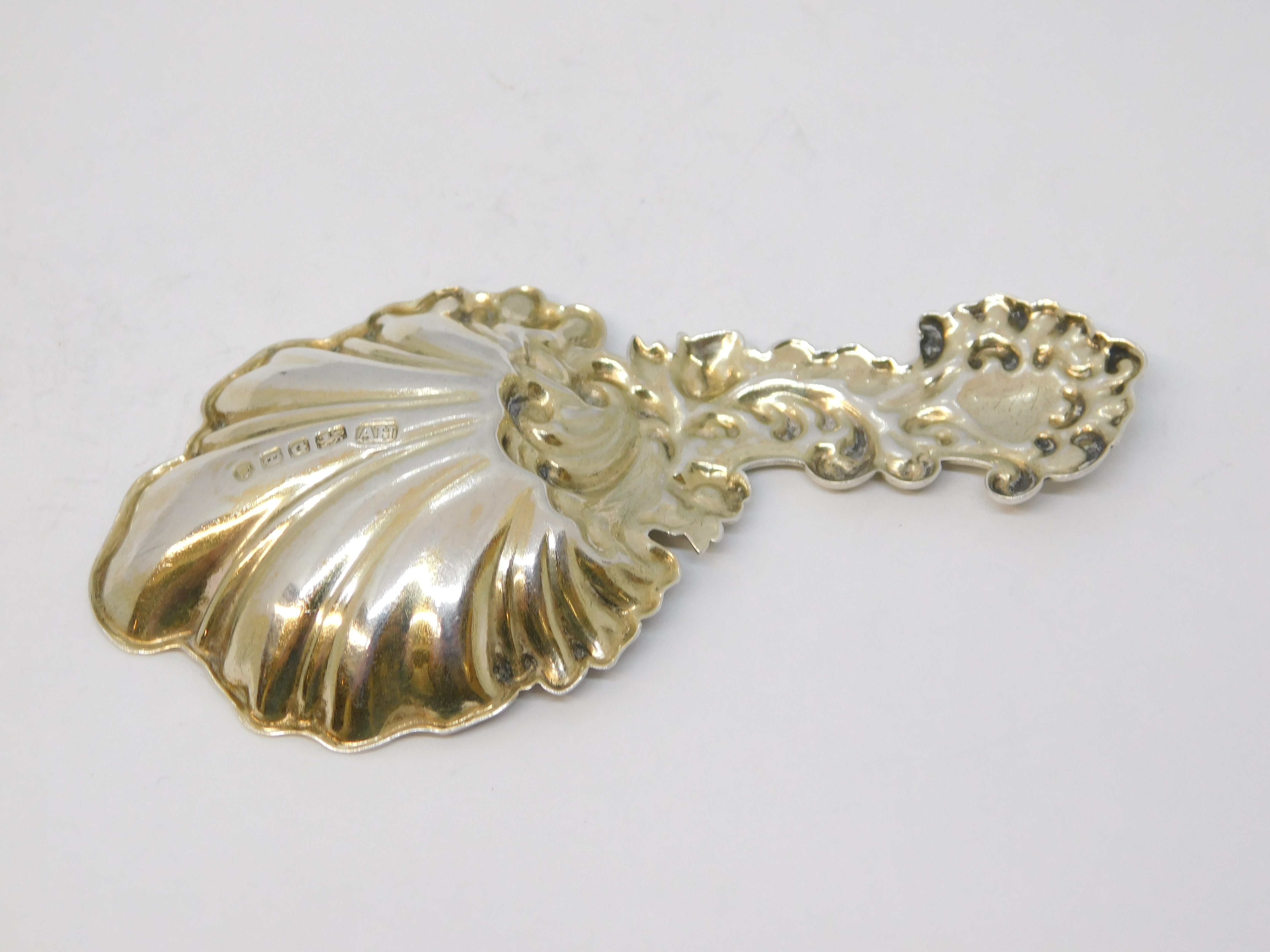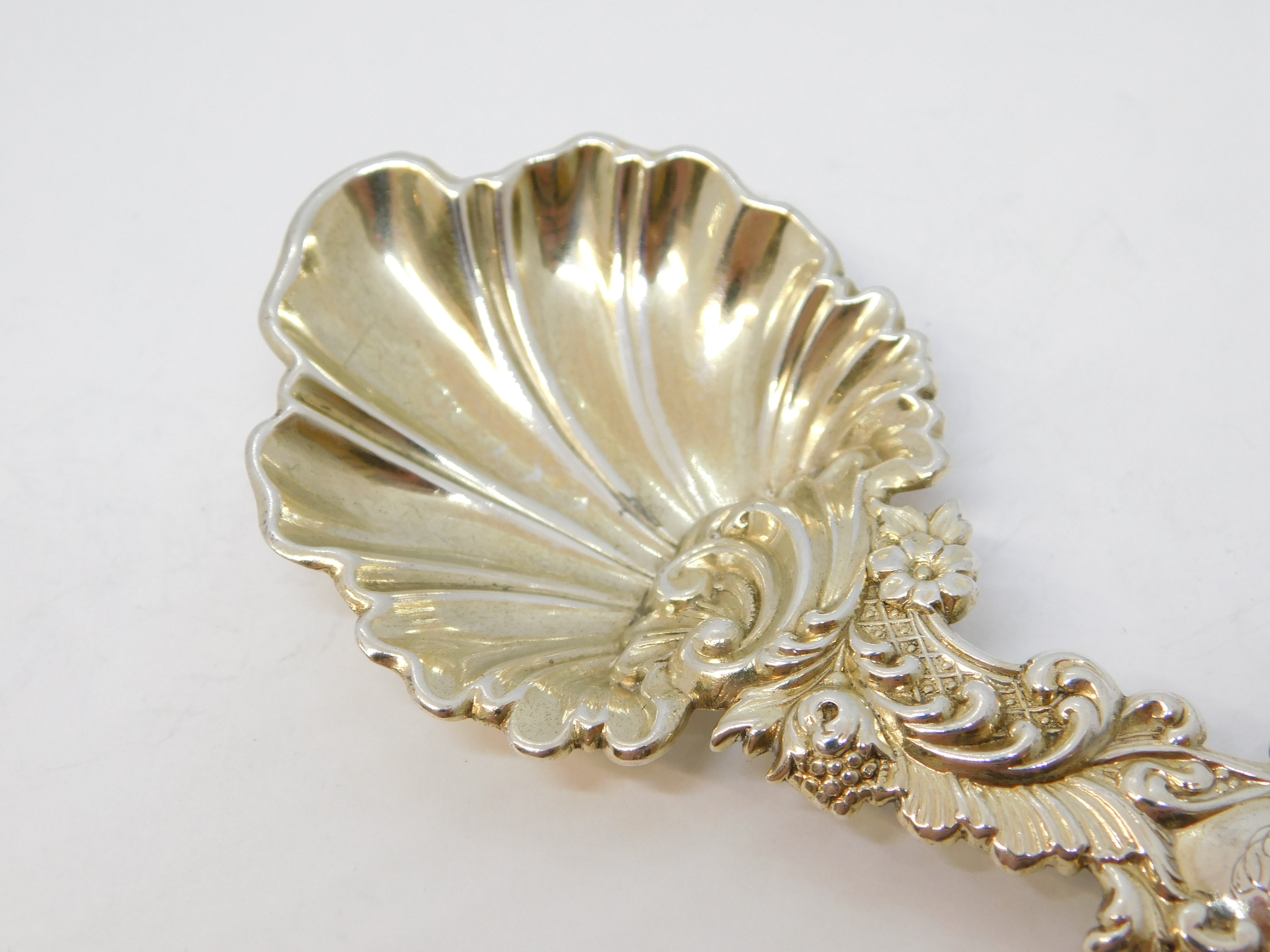 Victorian Sterling Silver Floral Nouveau Tea Caddy Spoon Antique 1850 Sheffield