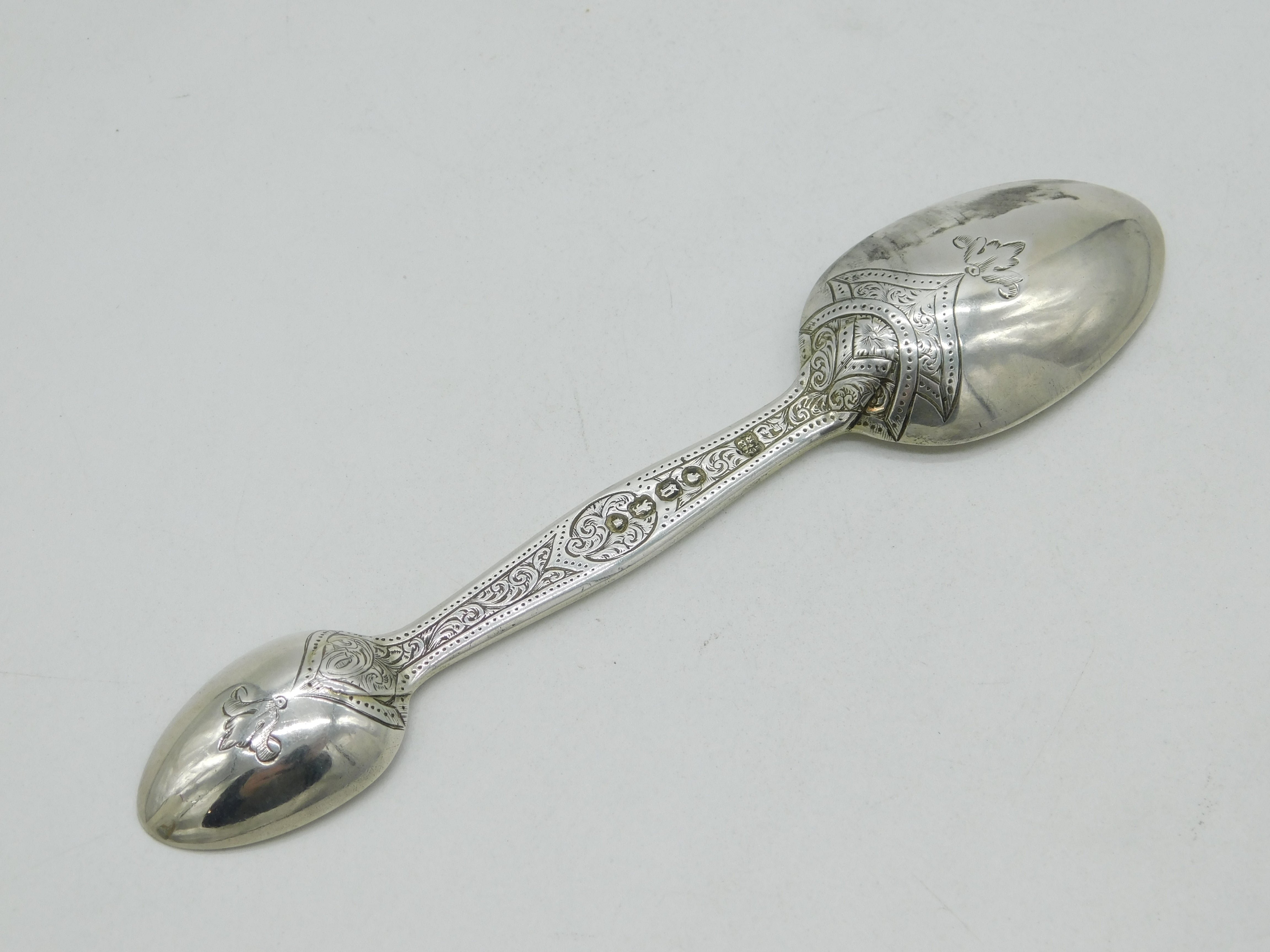 Victorian Sterling Silver Floral Pattern Double-Ended Medicine Spoon Antique 1862 London