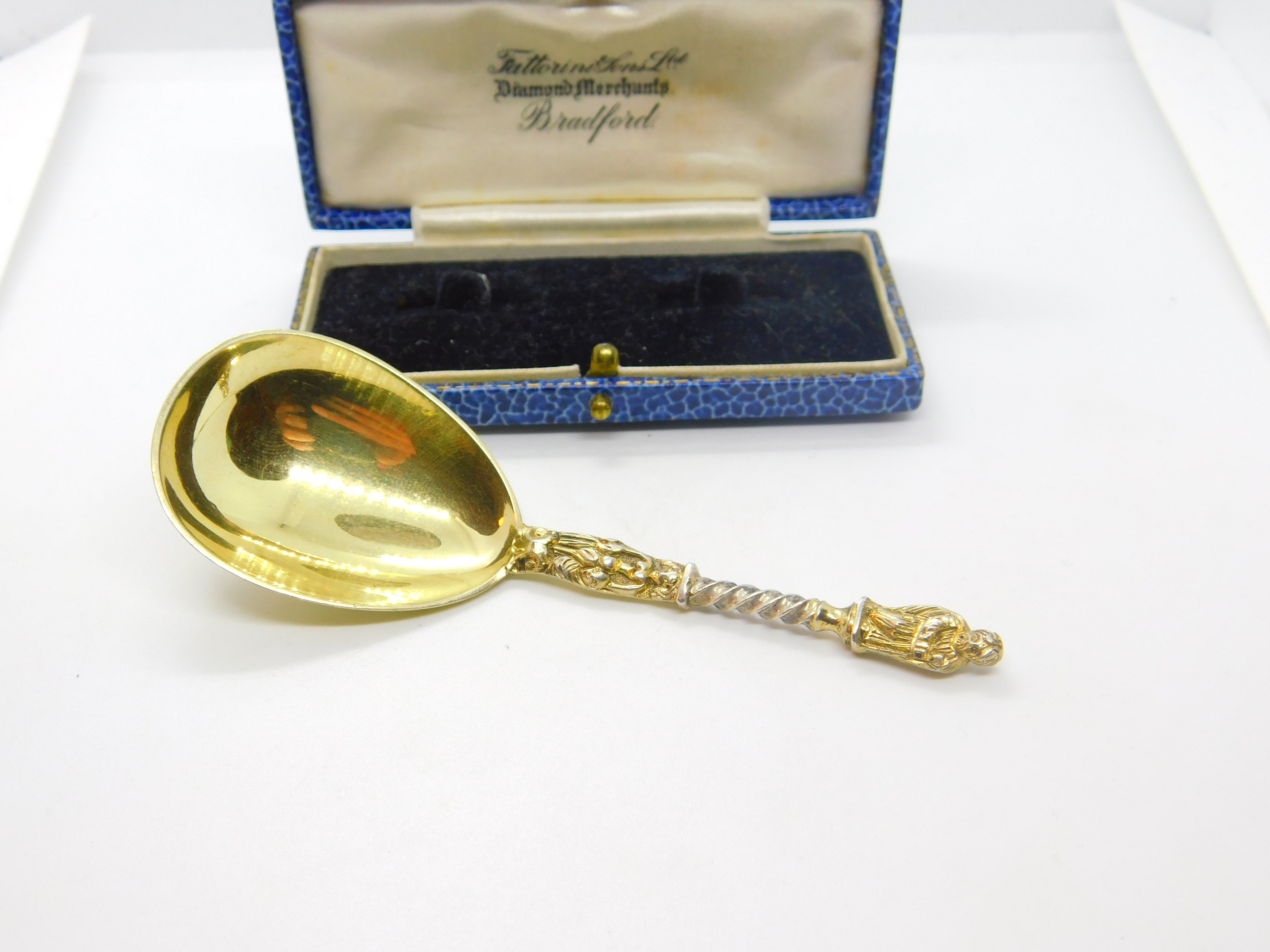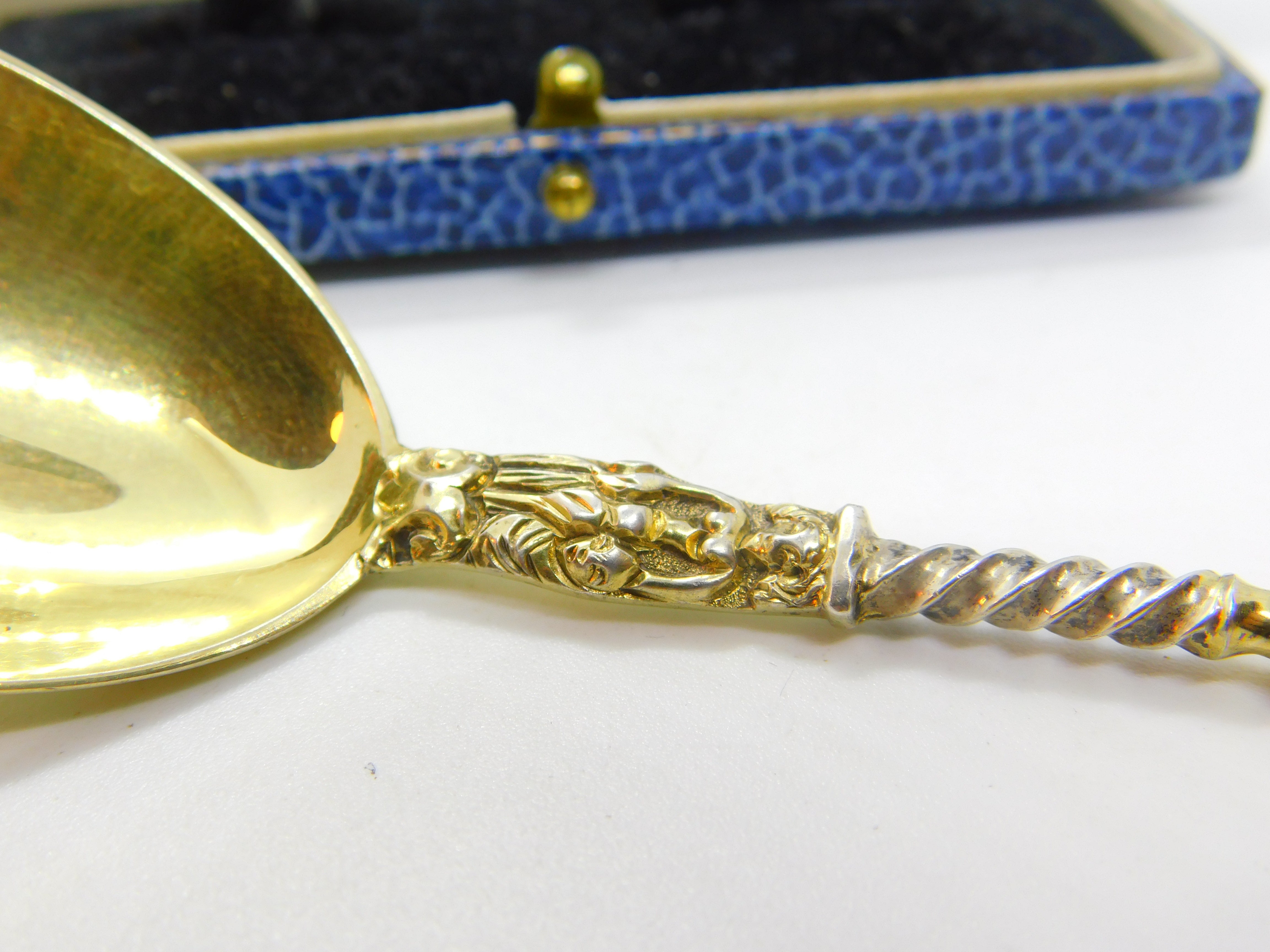 Victorian Sterling Silver Gilt 16th Century Style Tea Caddy Spoon Antique 1875 London