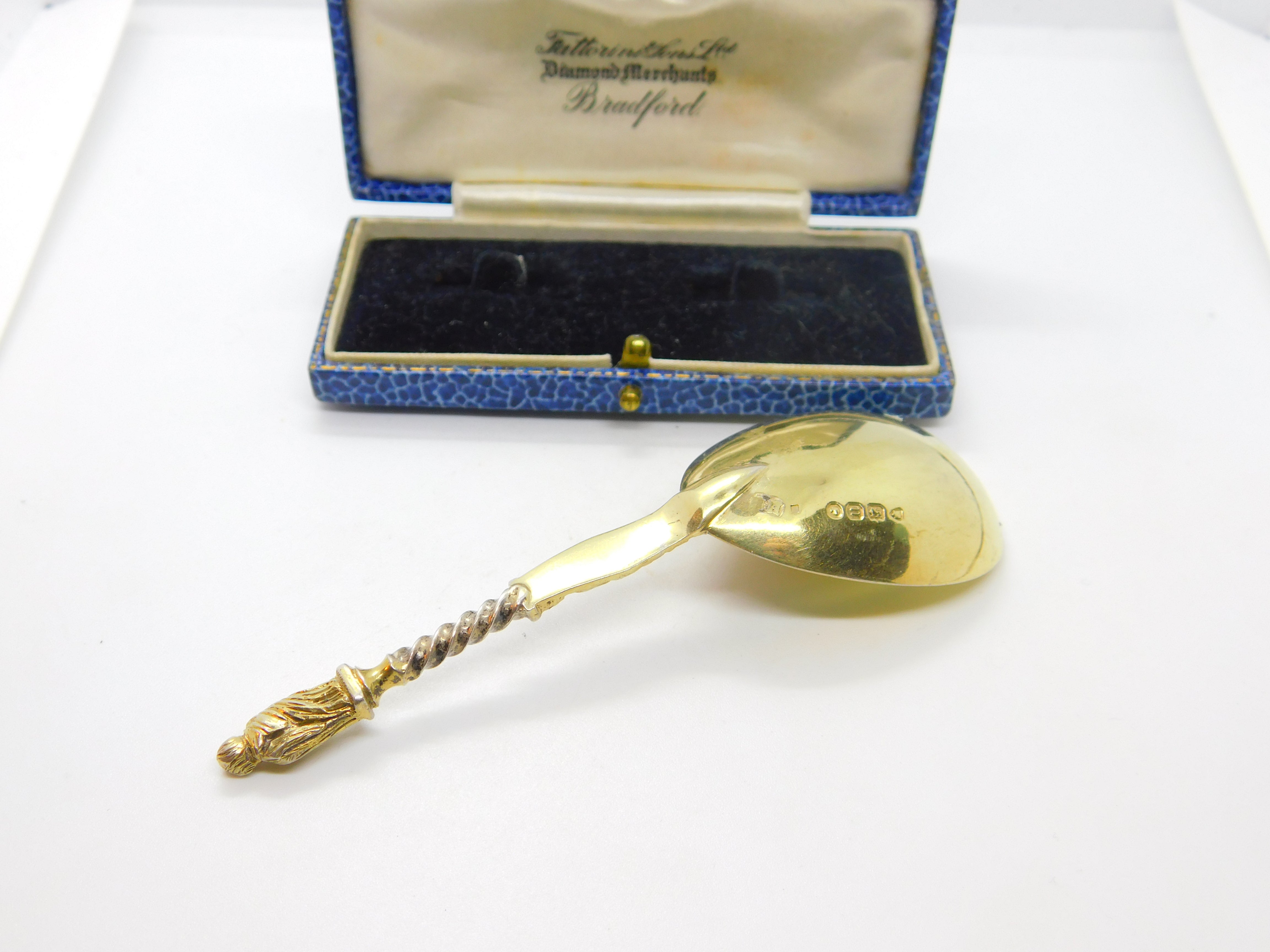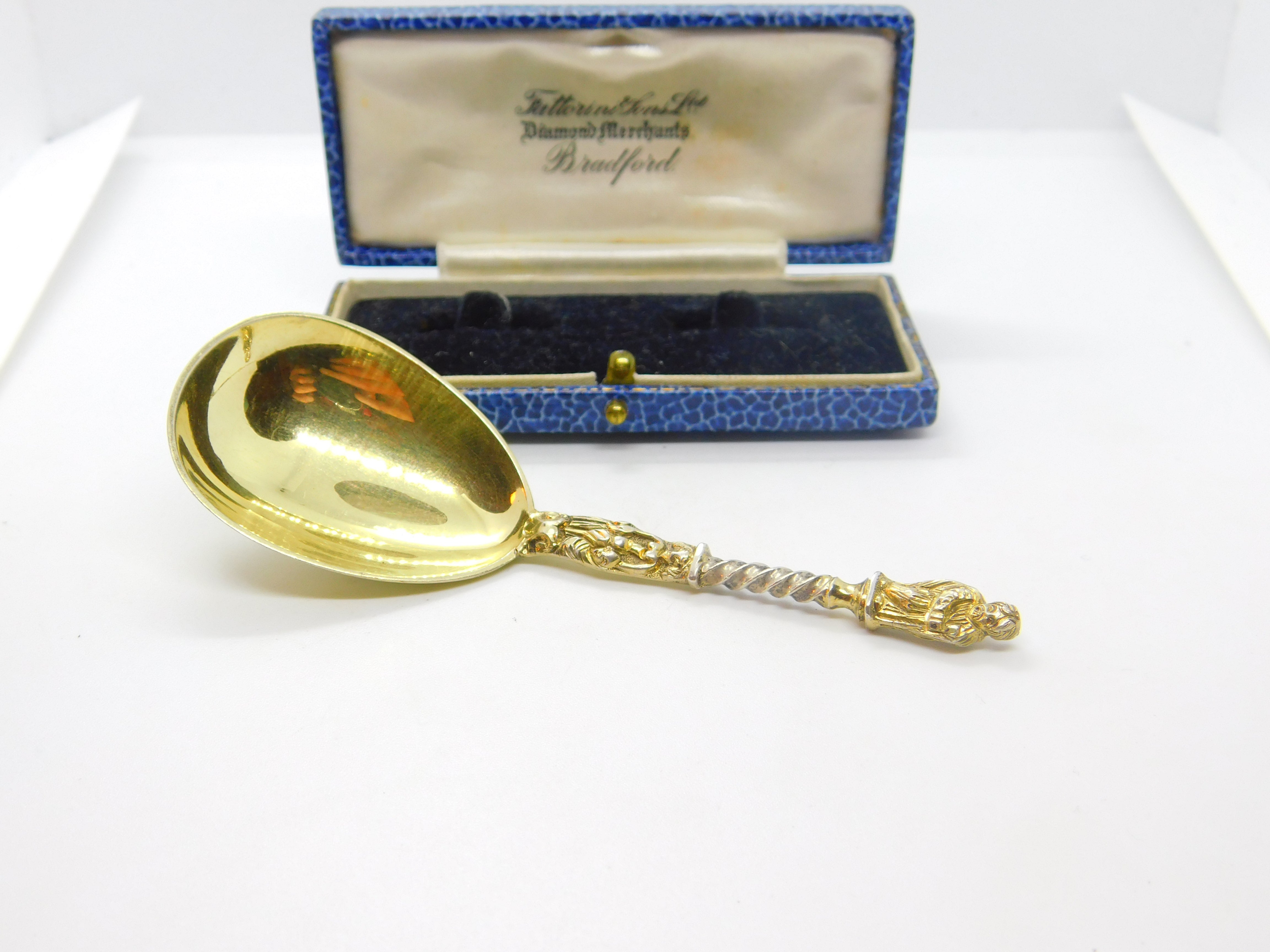 Details: A fantastic and wonderfully designed antique Victorian sterling silver gilt tea caddy spoon with apostle detail in the form of 16th century examples hallmarked London 1875 by Harrison Brothers & Howson. This is a wonderful item that would make a perfect gift or addition to any collection. The BOX pictured is for PRESENTATION ONLY and is NOT included in the listings but used to frame the pictures unless specifically stated otherwise.