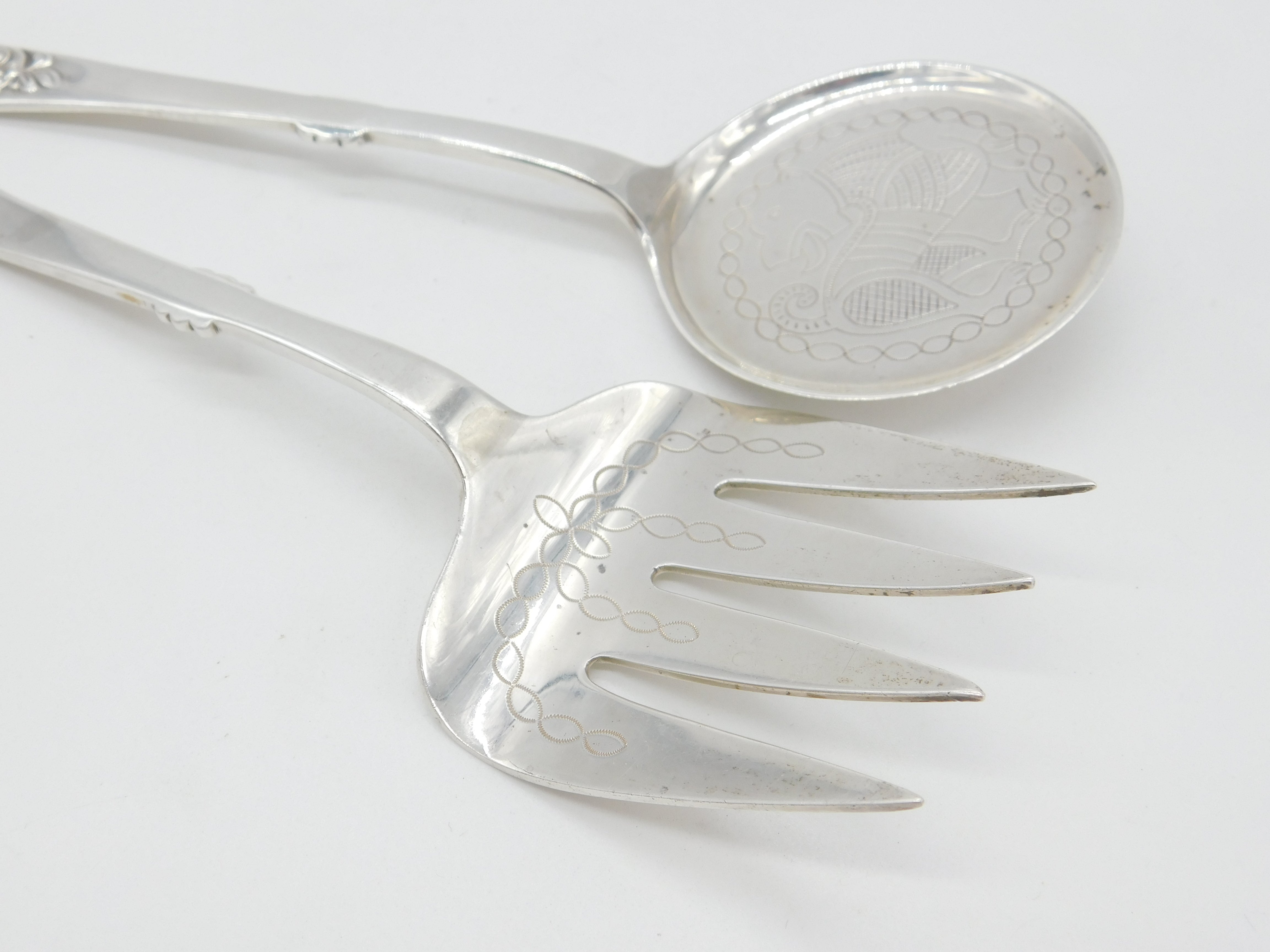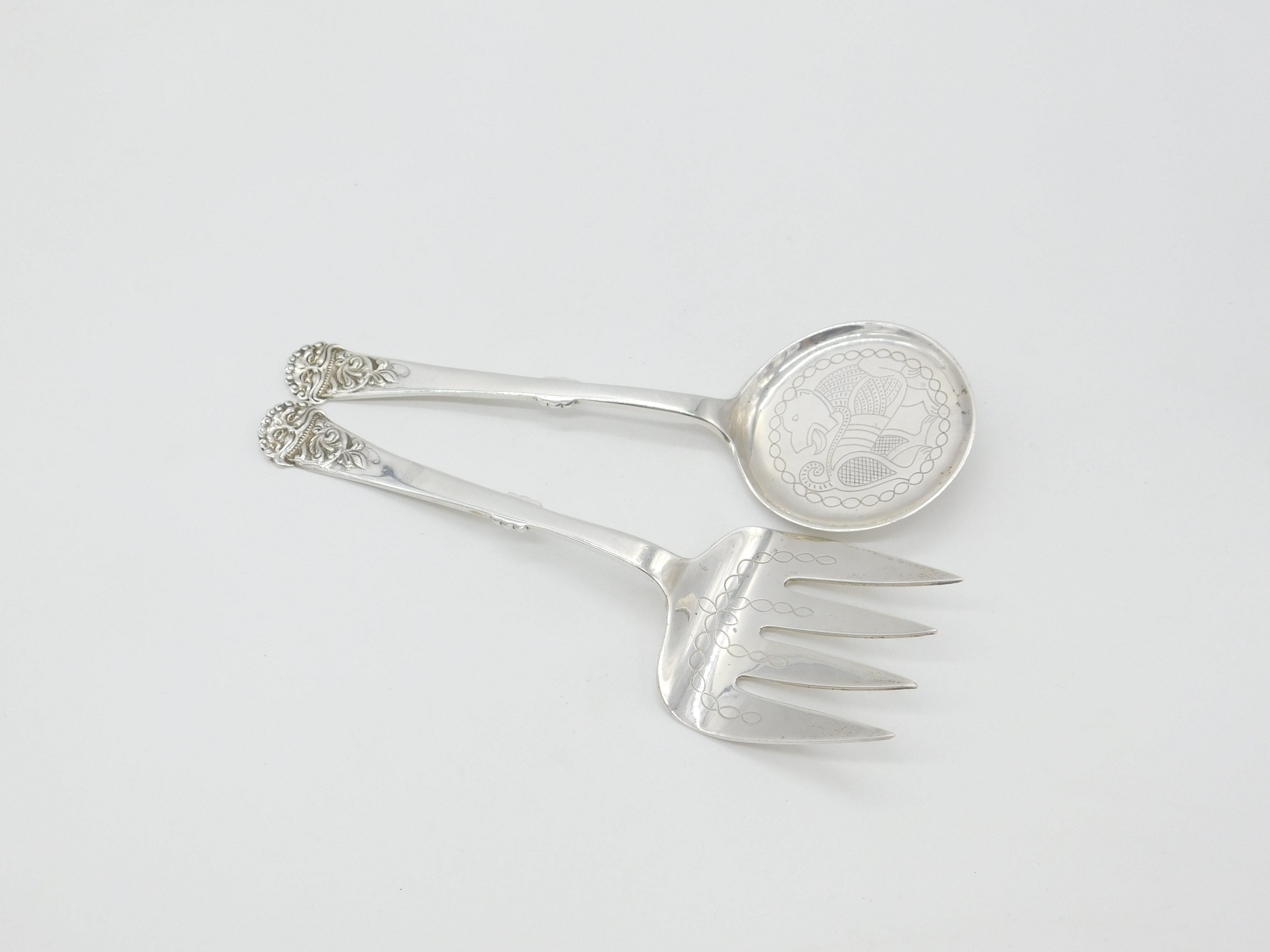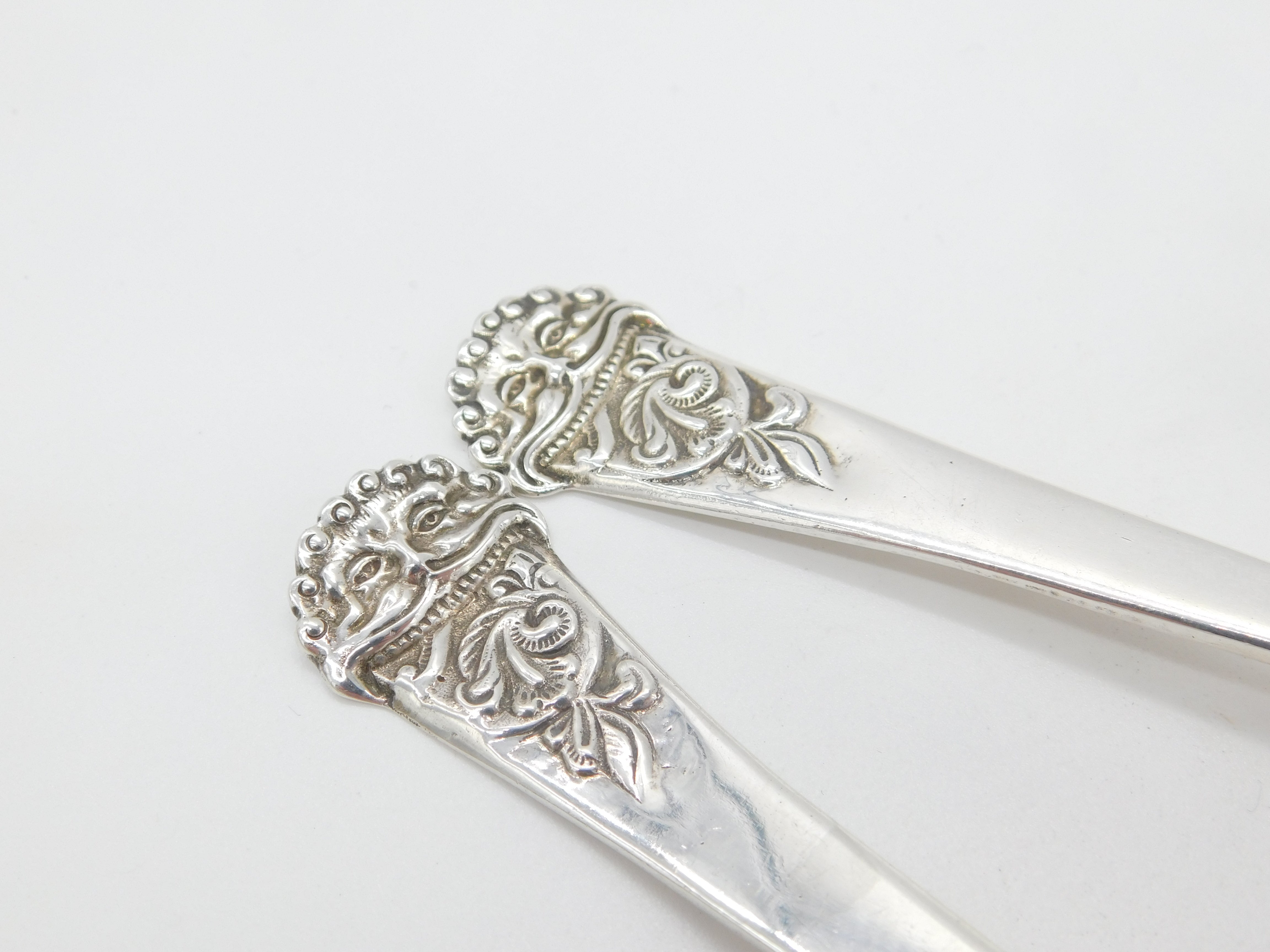 Victorian Sterling Silver Green Man Terminal Salad Servers 1896 Birmingham