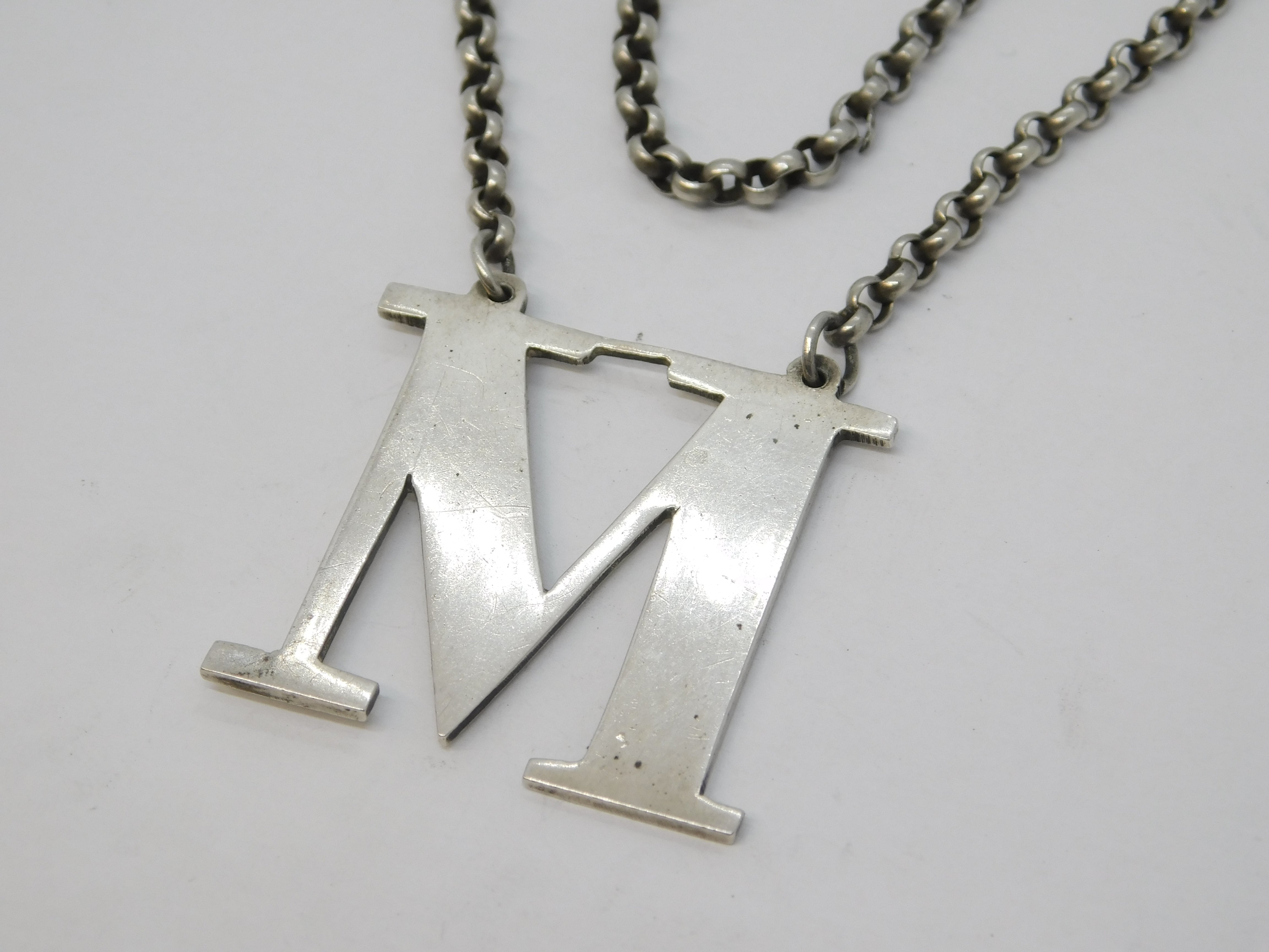 Victorian Sterling Silver 'M' Madeira Decanter Label Antique 1844 Birmingham