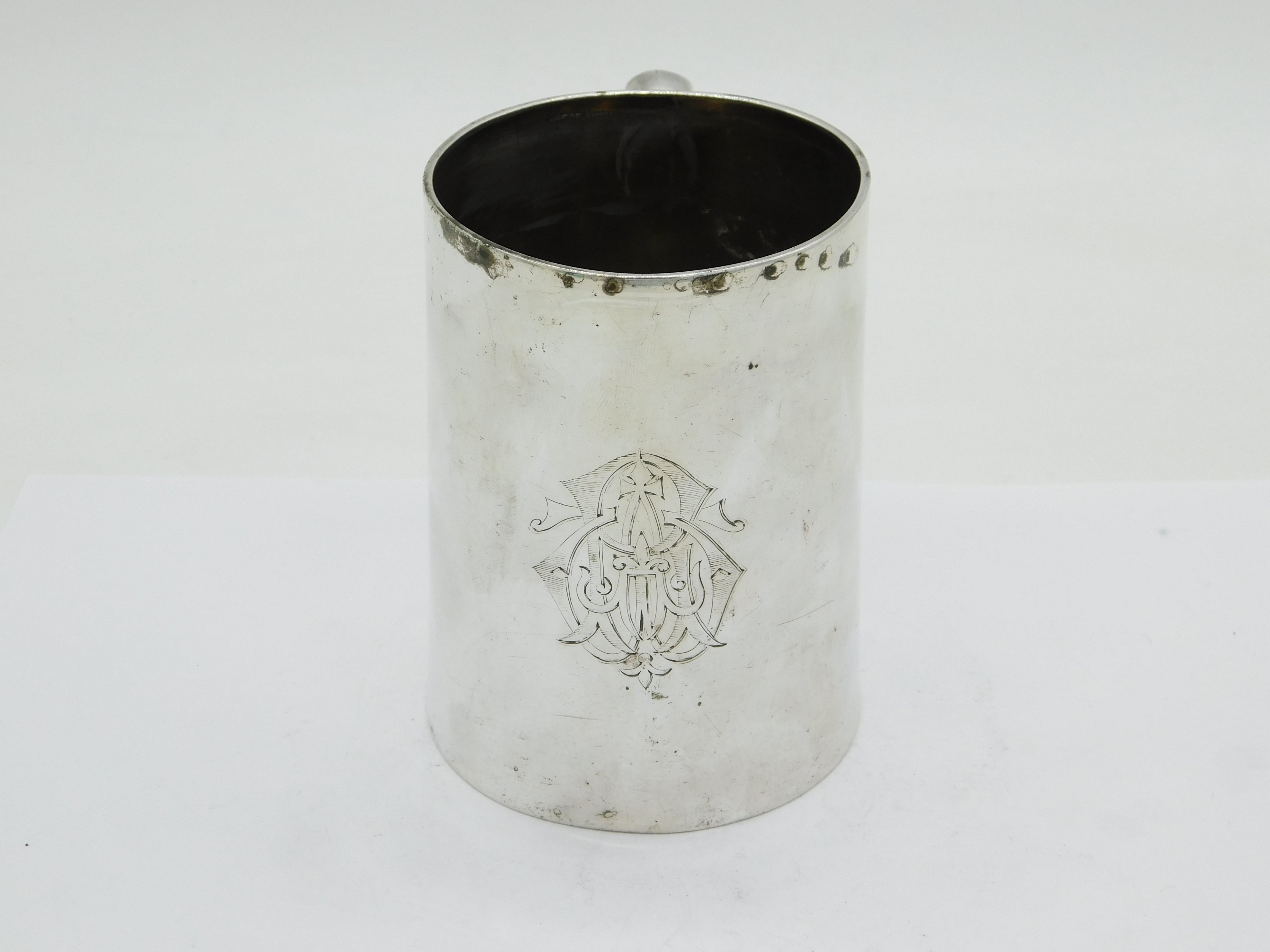 Victorian Sterling Silver Monogram Pint Tankard Mug Antique c1870 London