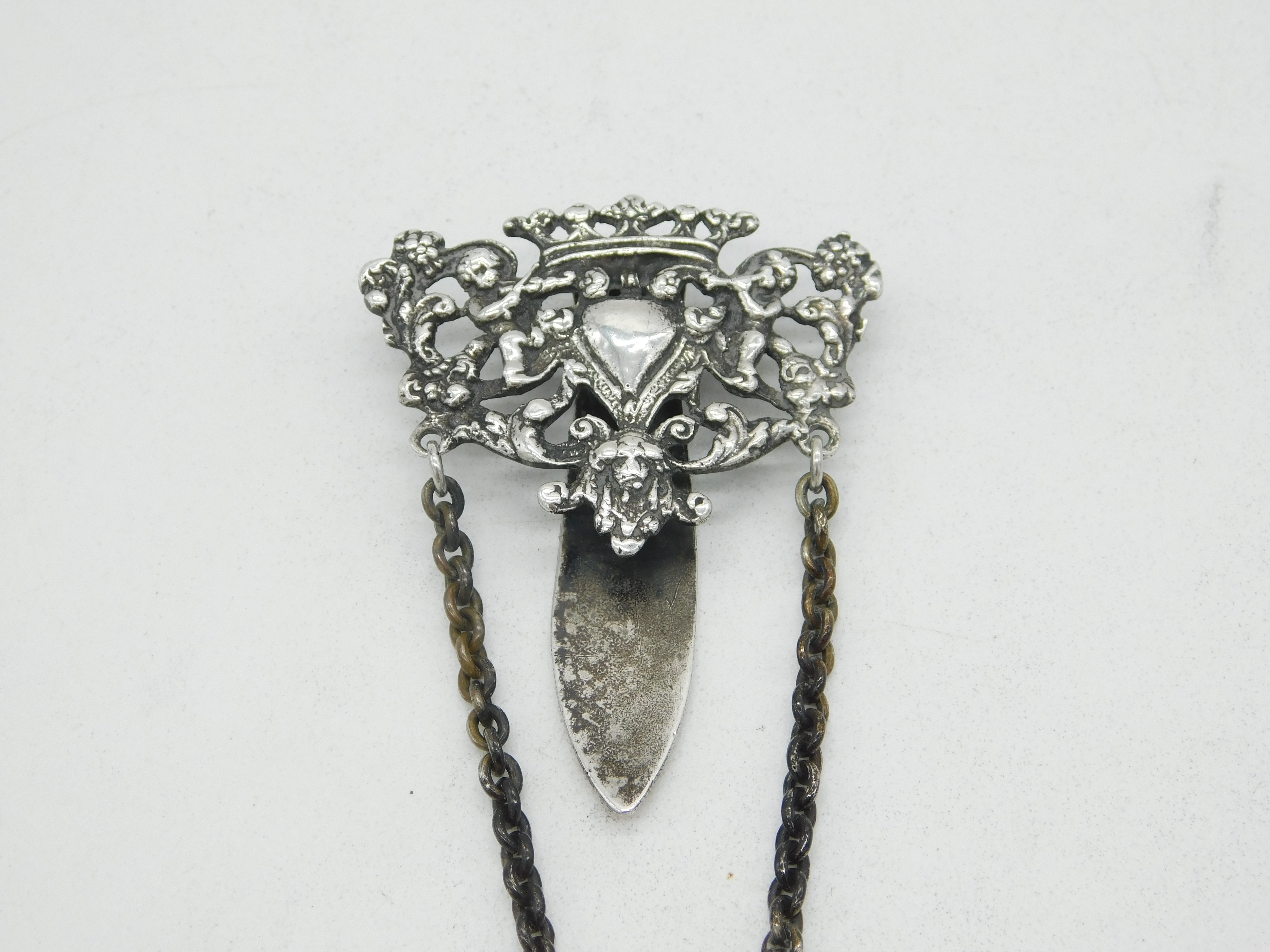 Details: A fantastic and wonderfully designed antique Victorian sterling silver art nouveau decorated sewing chatelaine with lovely detailing hallmarked London 1890 by William Comyns. The chain is cut steel not silver the top aspect is silver. This is a wonderful item that would make a perfect gift or addition to any collection. We are more than happy to provide XRF reports for items upon request.