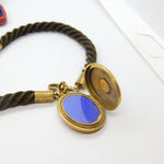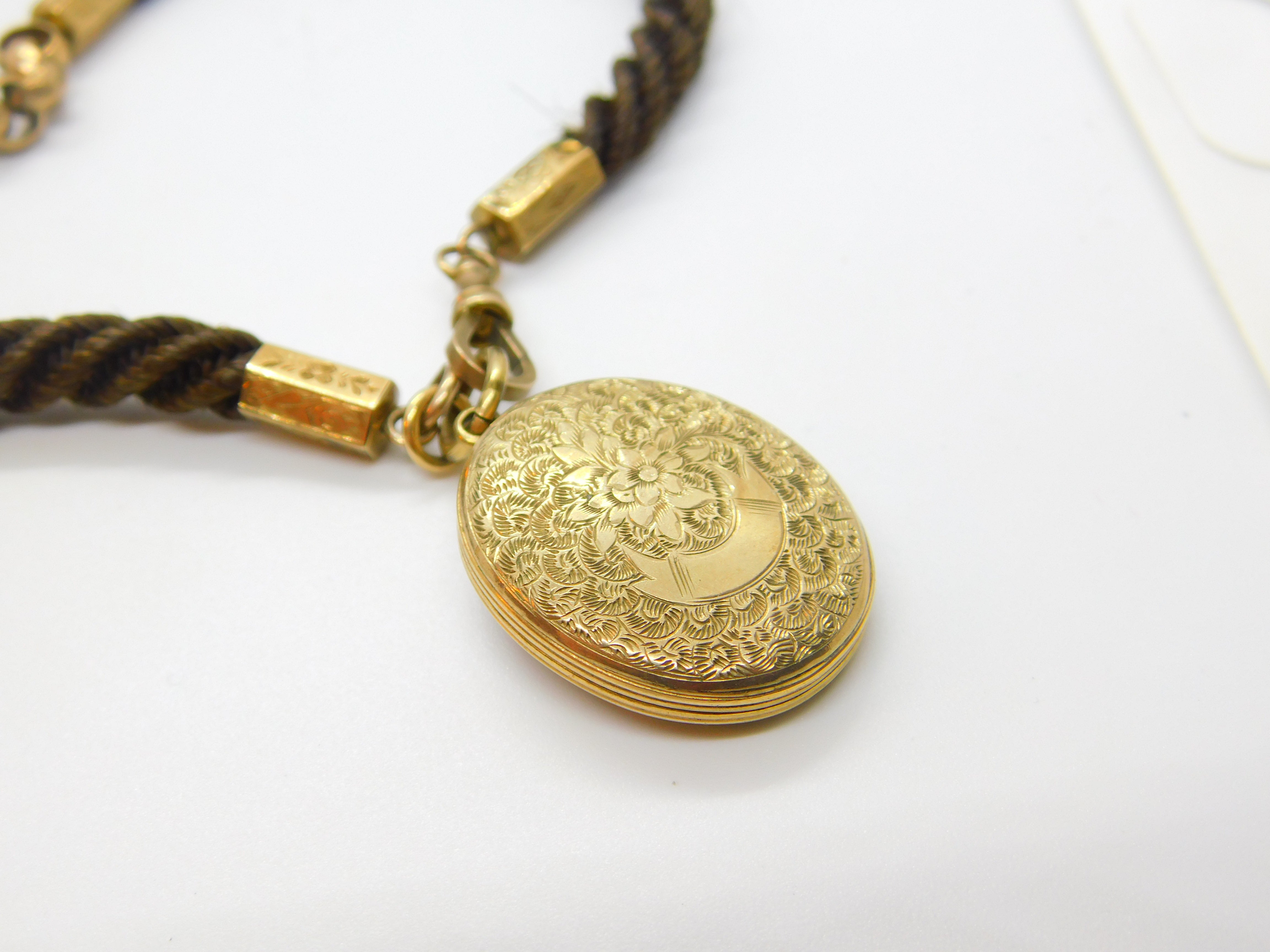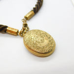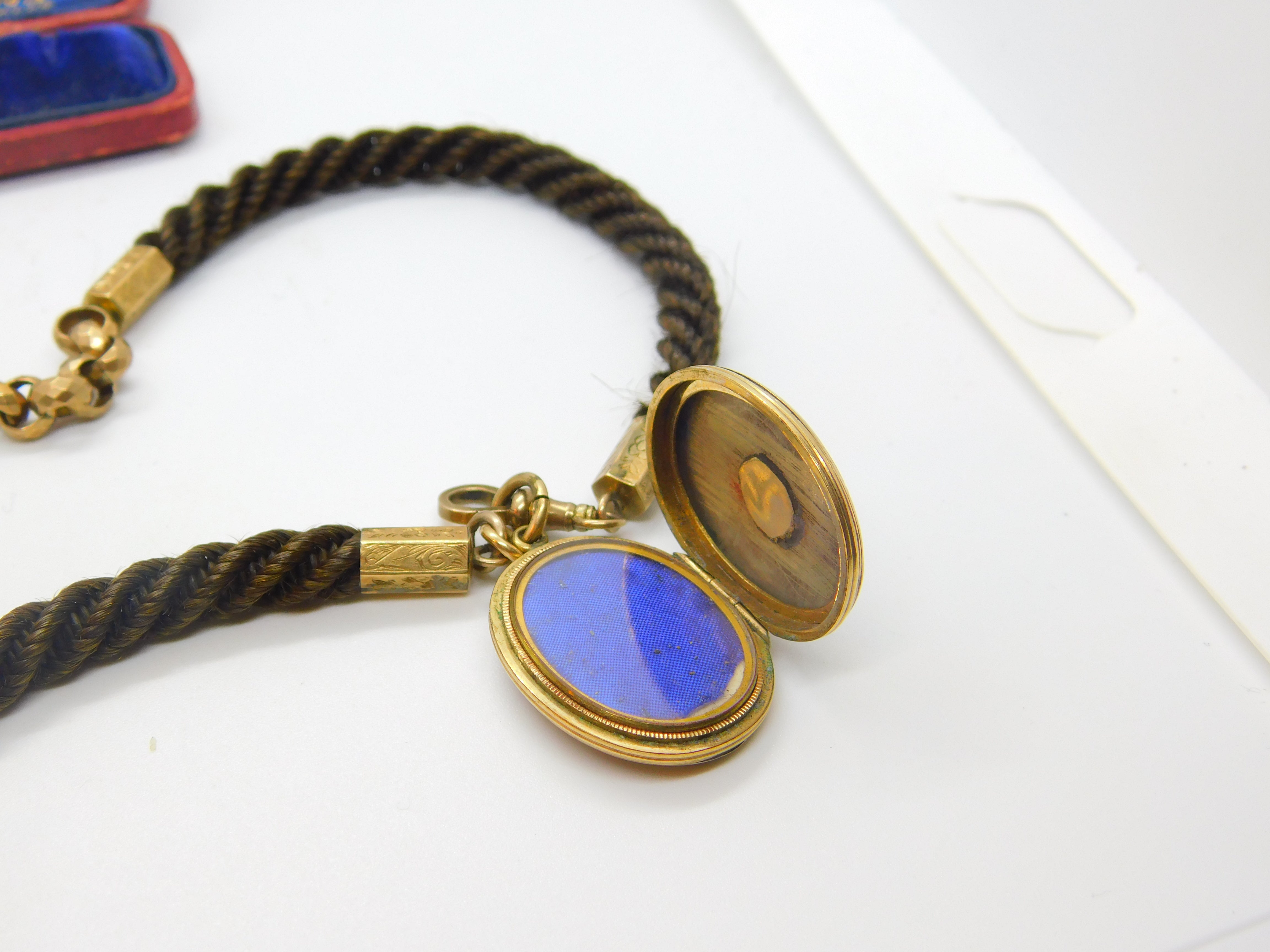 Victorian Woven Hair Pinchbeck Mourning Necklace with 9ct Enamel Memory Locket