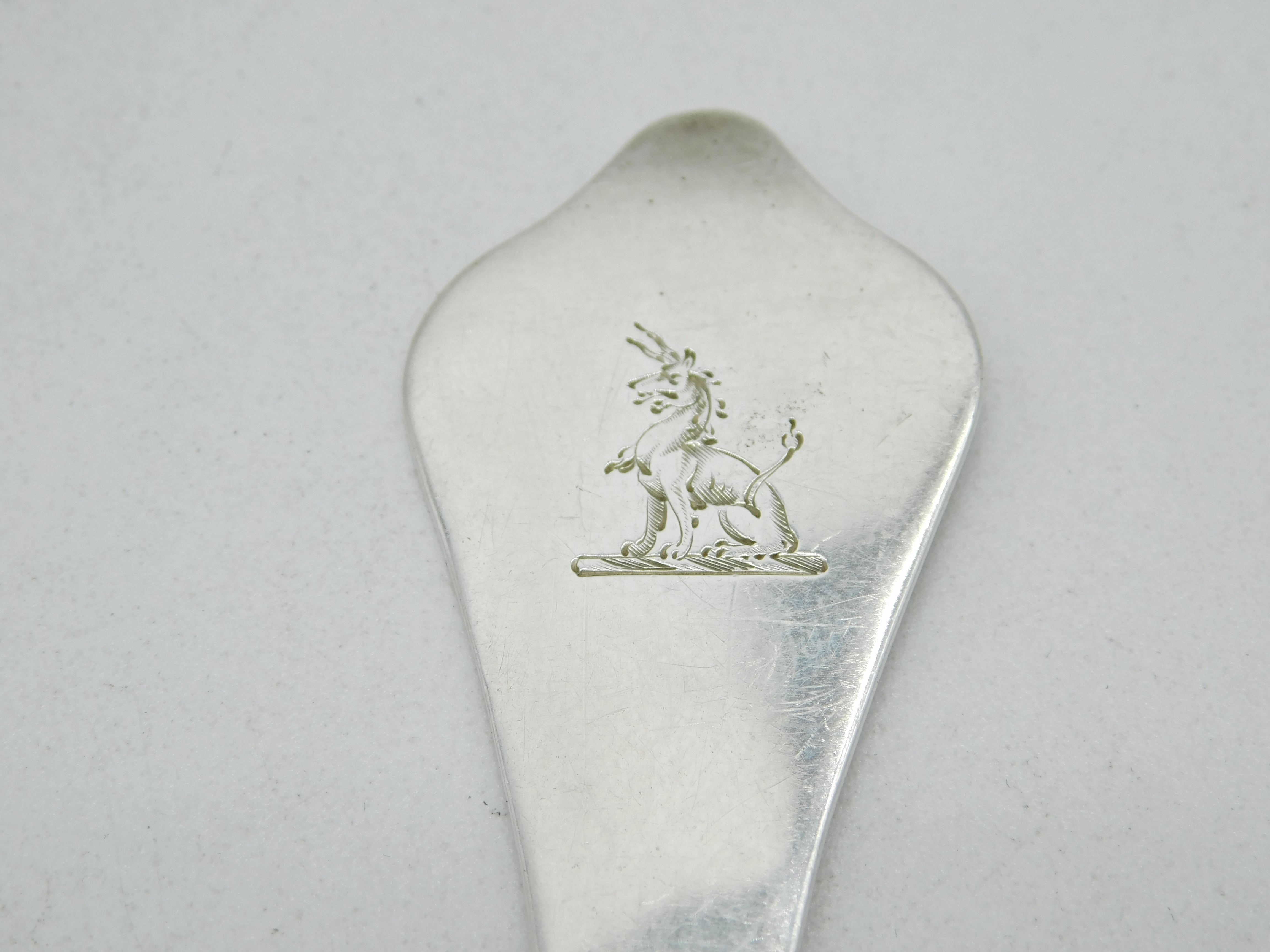 Details: A fantastic and wonderfully designed antique early Britannia silver dog nose rat tail spoon with charming heraldic crest to the reverse of the terminal hallmarked to the reverse London 1702 with rubbed makers marks, nice condition throughout with no repairs or later additions. This is a wonderful item that would make a perfect gift or addition to any collection. We are more than happy to provide XRF reports for items upon request.