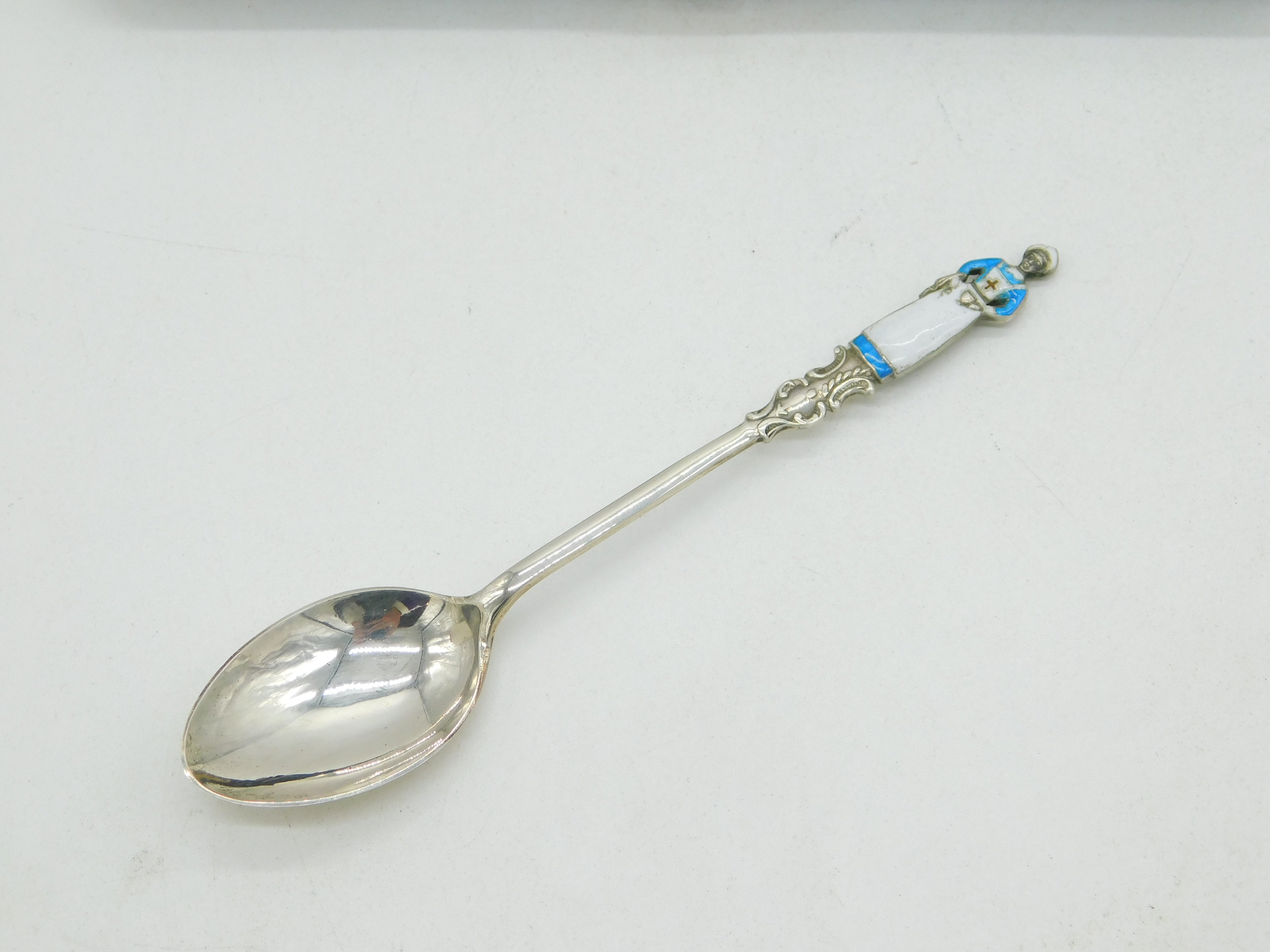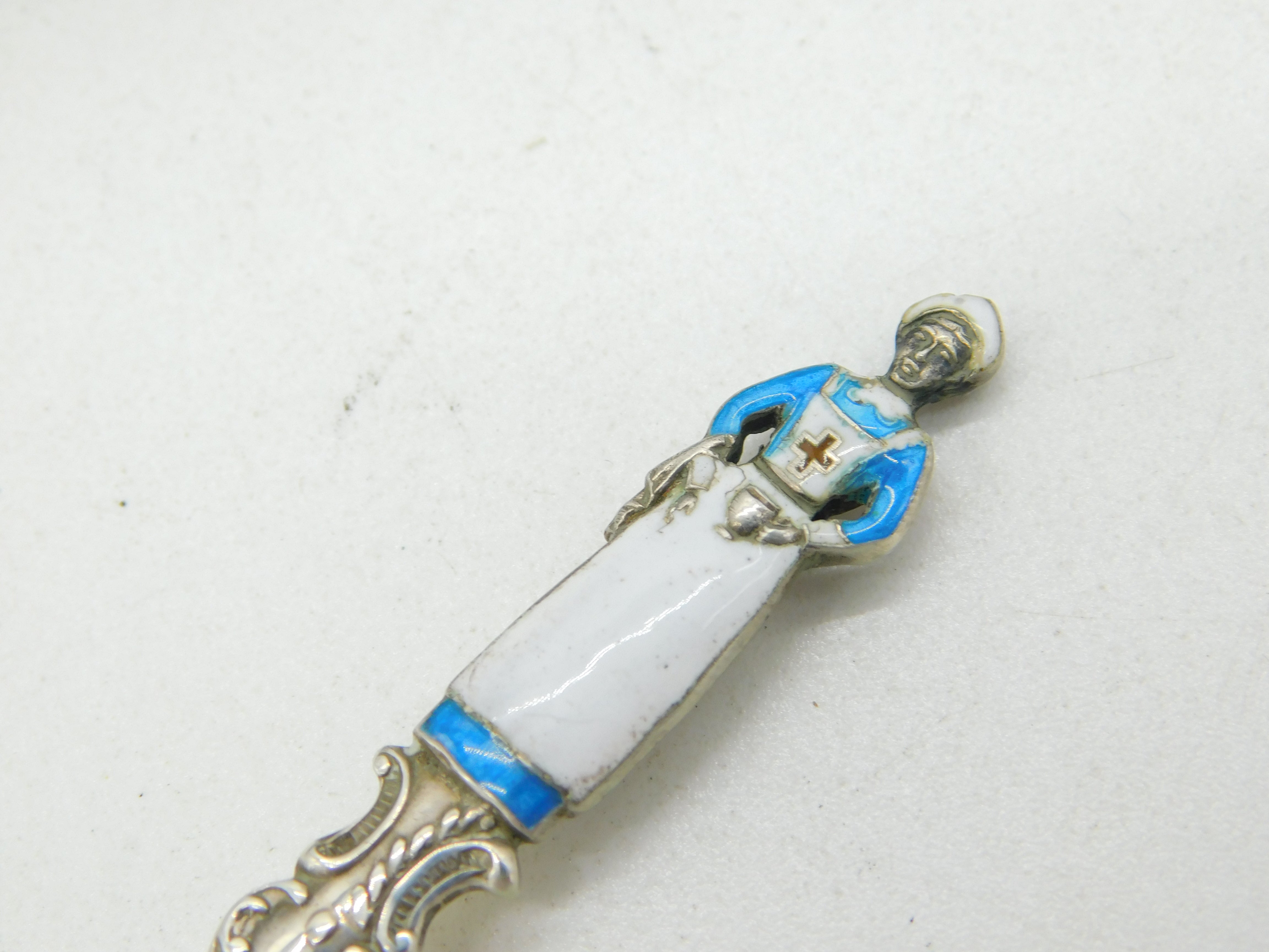 WW1 Sterling Silver Enamel Nurse Pattern Teaspoons Antique 1914 Birmingham