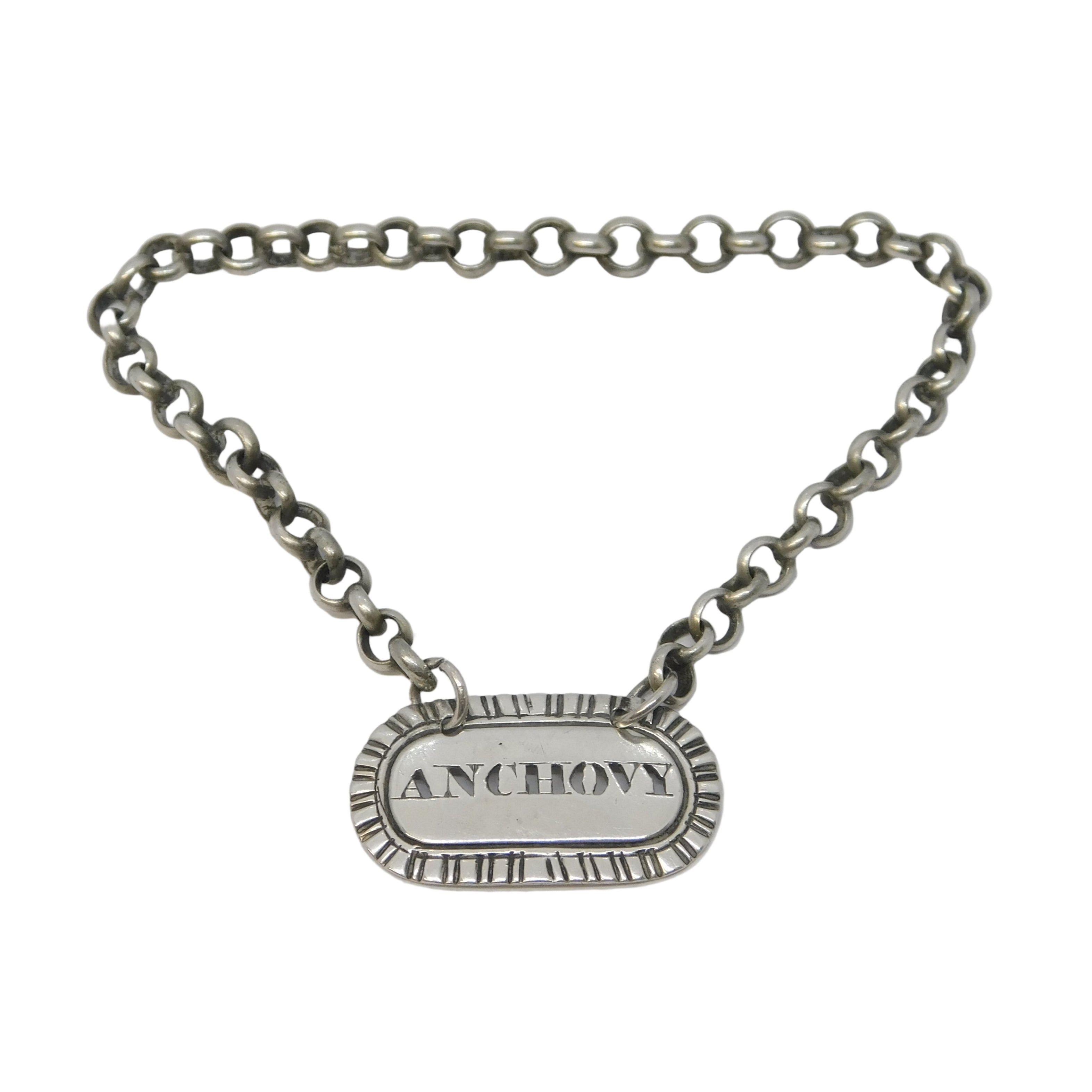 George IV Sterling Silver 'Anchovy' Sauce Label Ticket Antique 1823 London