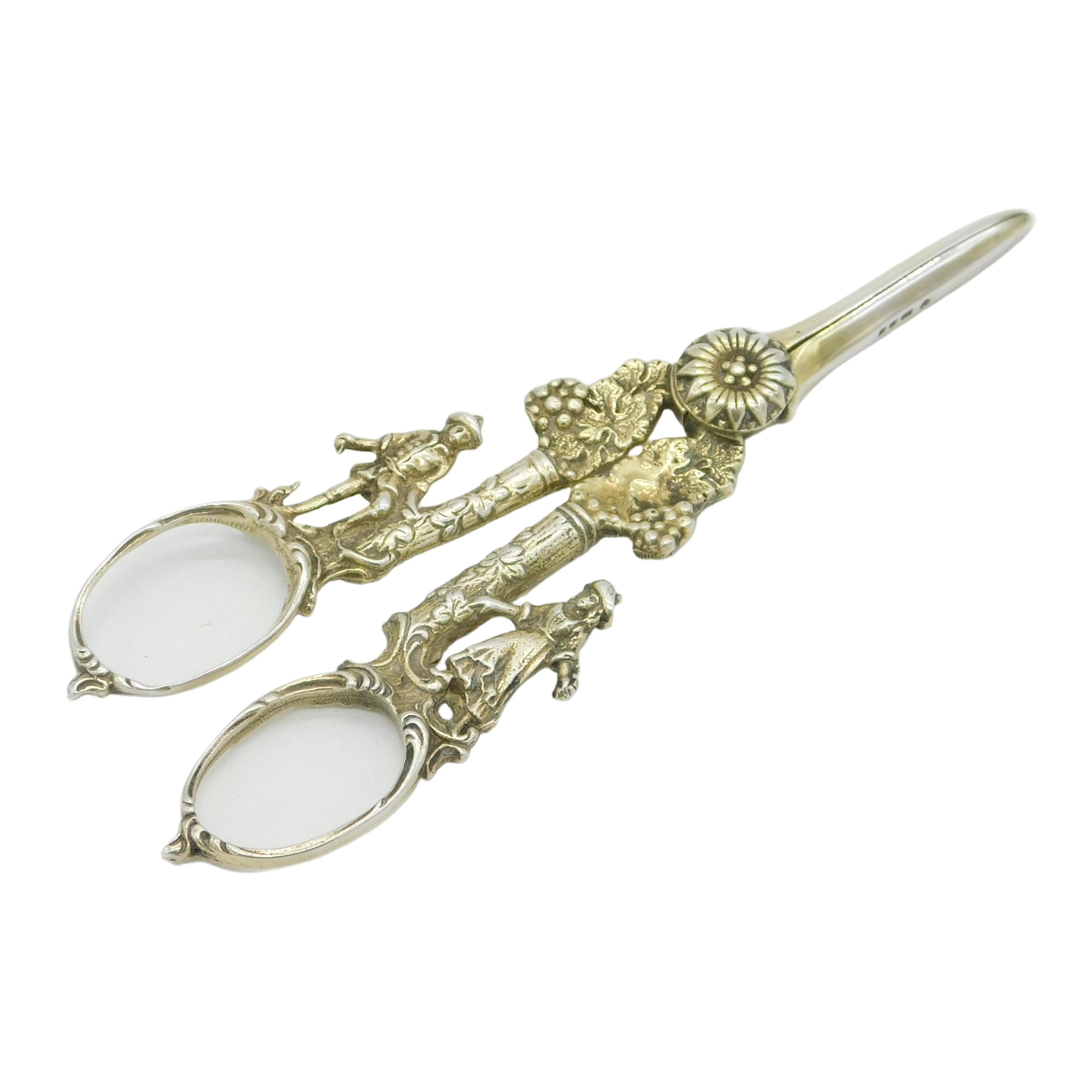 Sterling Silver Gilt Ornate Regency Style Grape Scissors Vintage 1970 London