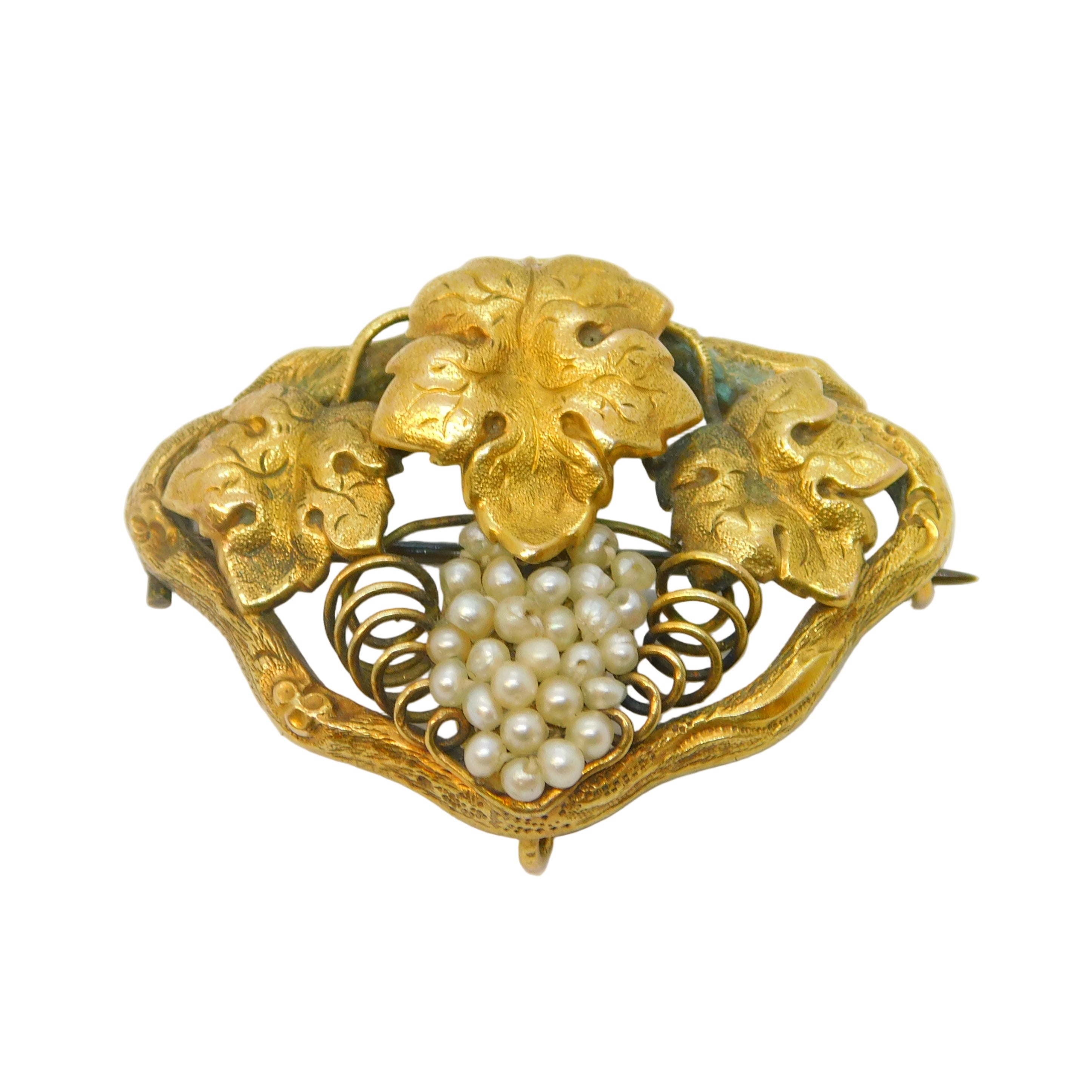 George III 18ct Yellow Gold, Seed Pearl Set Sweetheart Brooch Antique c1790