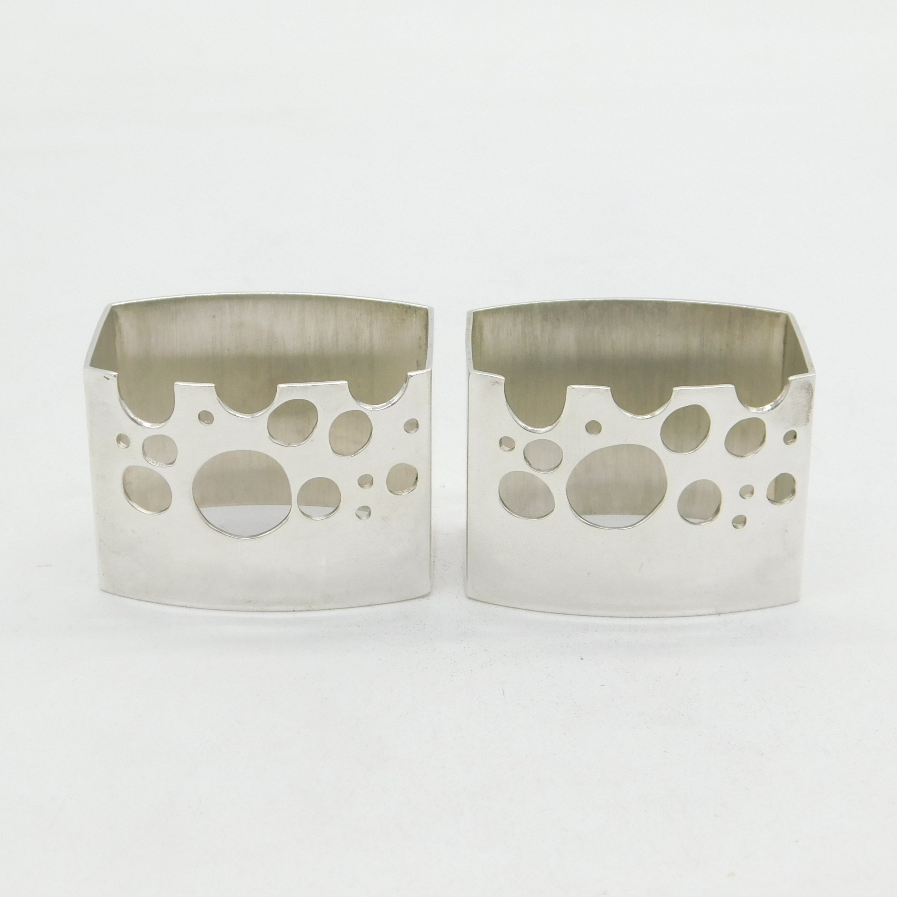 Pair of Sterling Silver Studio Crafted Moonscape Napkin Rings Vintage 1973 Birmingham