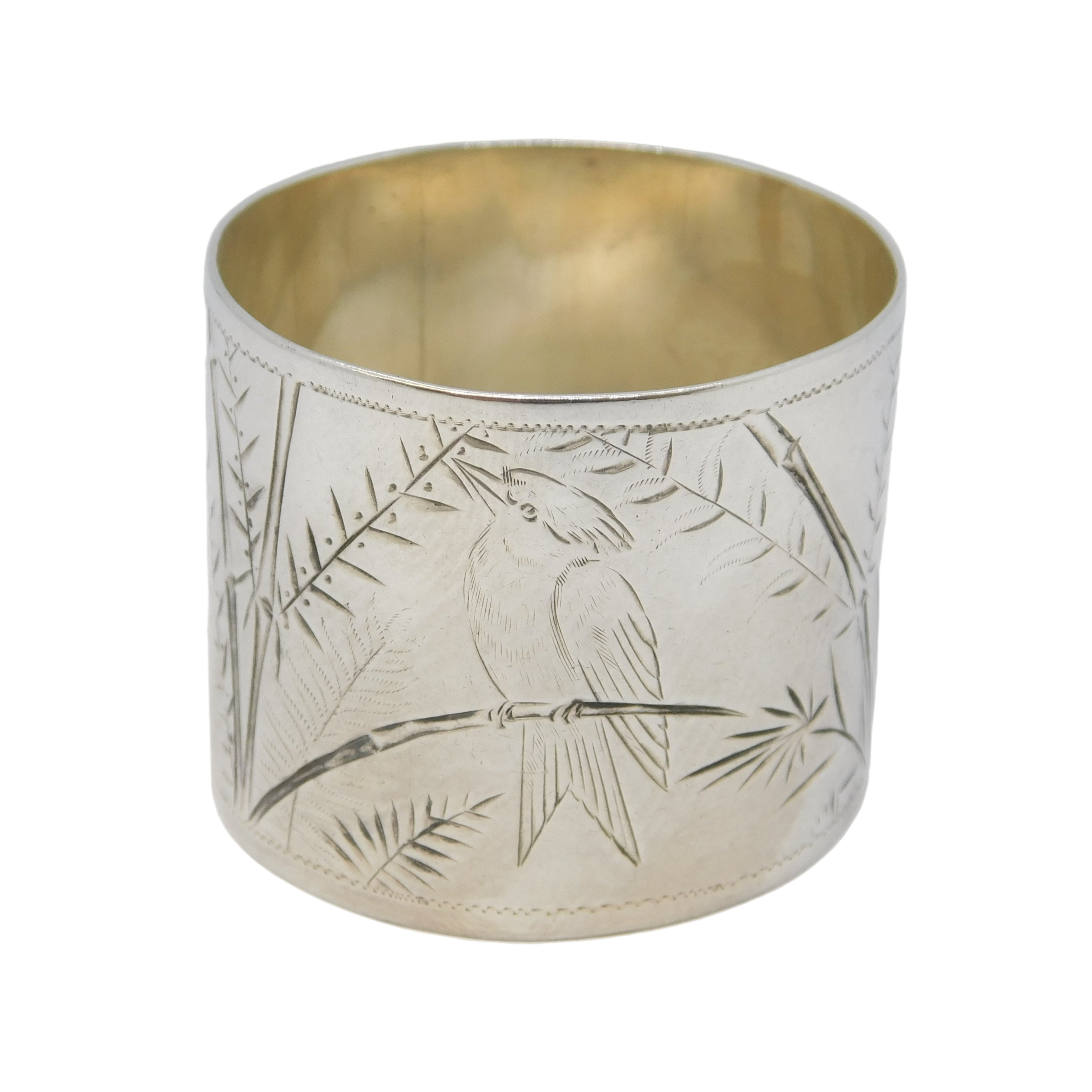 Victorian Sterling Silver Aesthetic Bird Pattern Napkin Ring Antique 1882 London