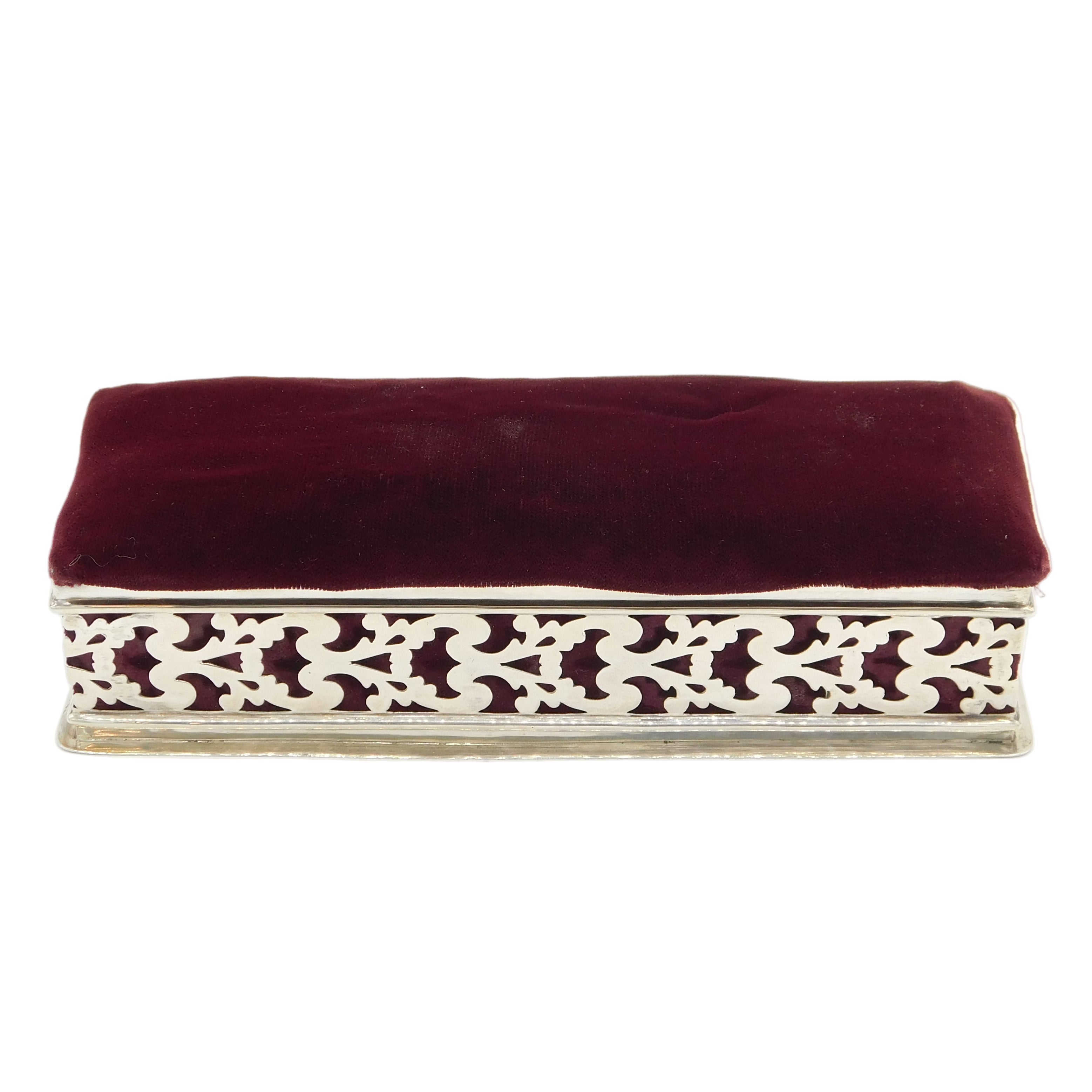 Victorian Large Sterling Silver Velvet Lined Jewellery Box Antique 1896 London