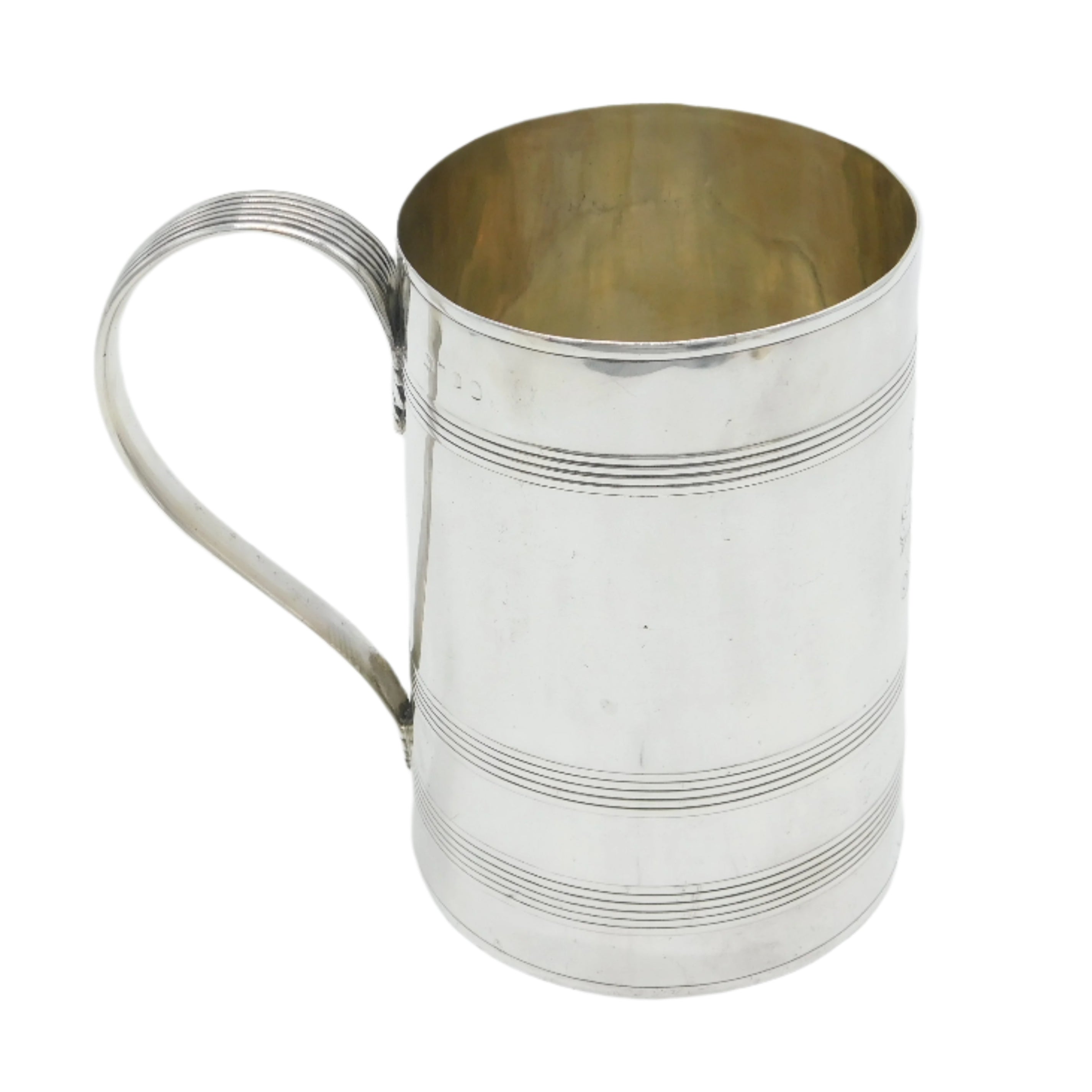 George III Large Sterling Silver Lined Pattern Quart Tankard Antique 1795 London