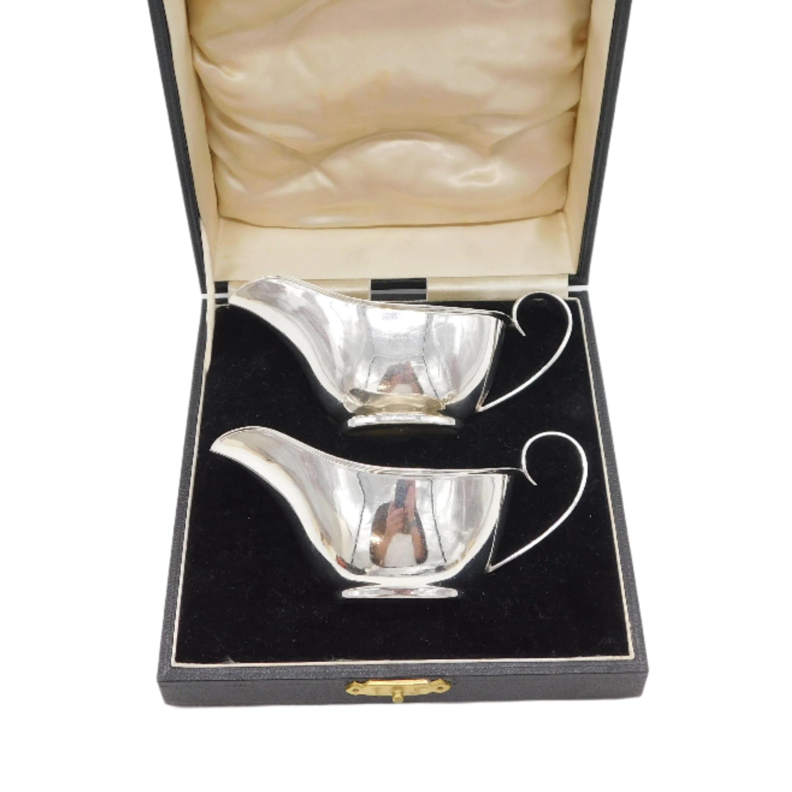 Boxed Pair of Sterling Silver Sauce Boats Antique 1939 Birmingham Art Deco