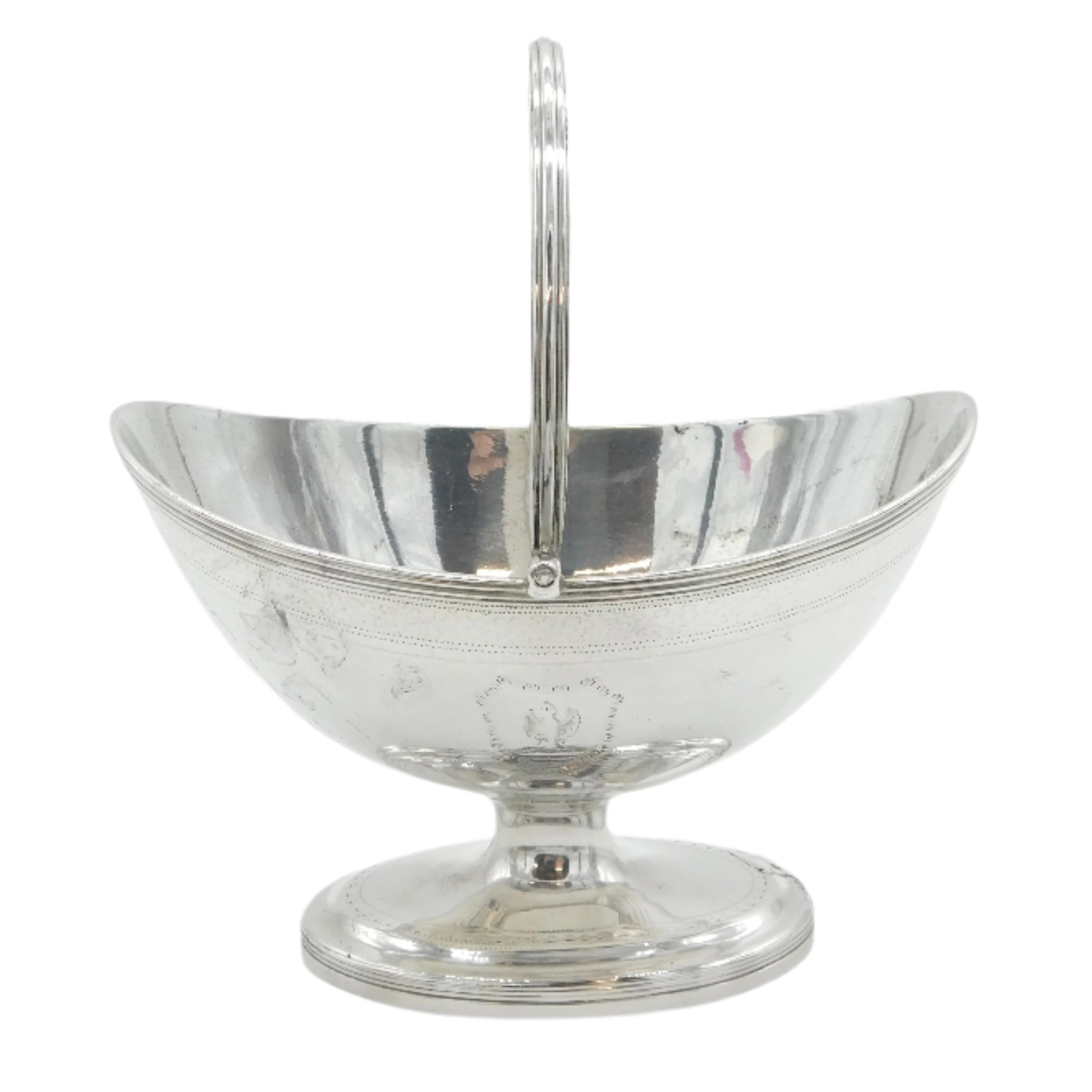 George III Sterling Silver Crested Swing Handle Sugar Basket Antique 1791 London