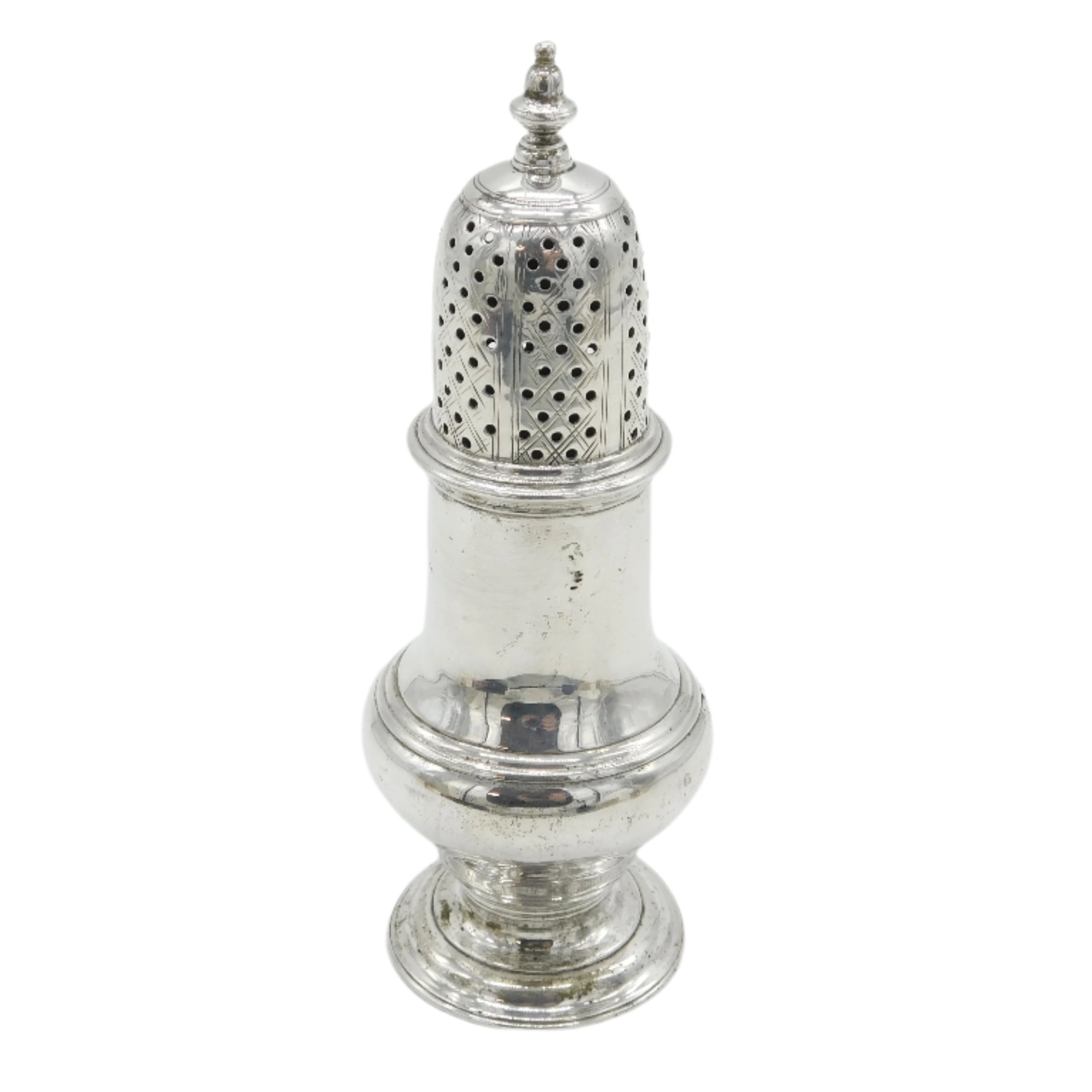 George II Sterling Silver Muffineer Sugar Caster Antique 1755 London J. Wilks