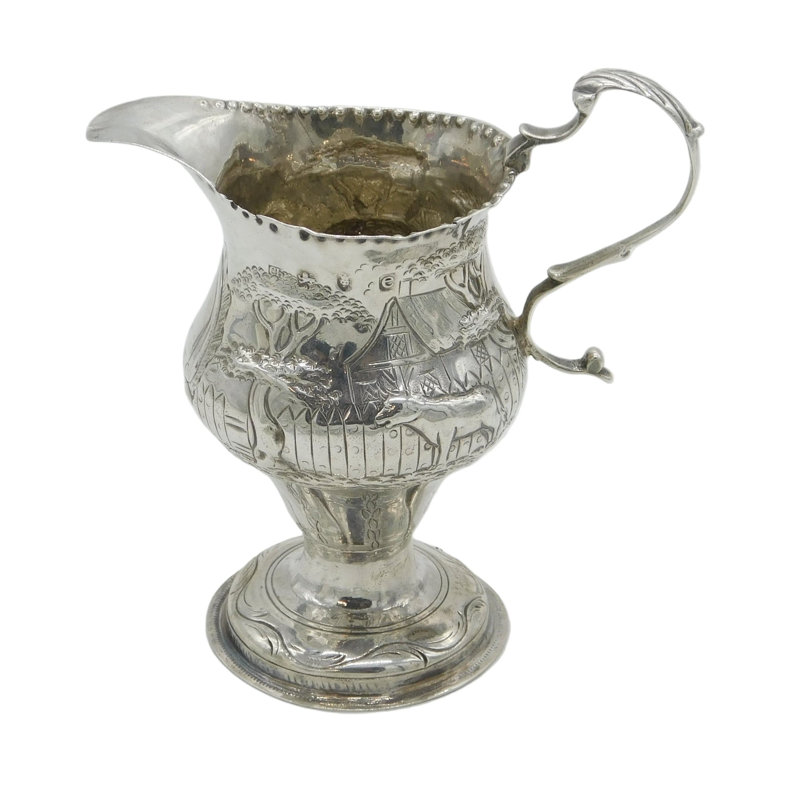 George III Sterling Silver Farm Pattern Pedestal Cream Jug Antique 1820 London