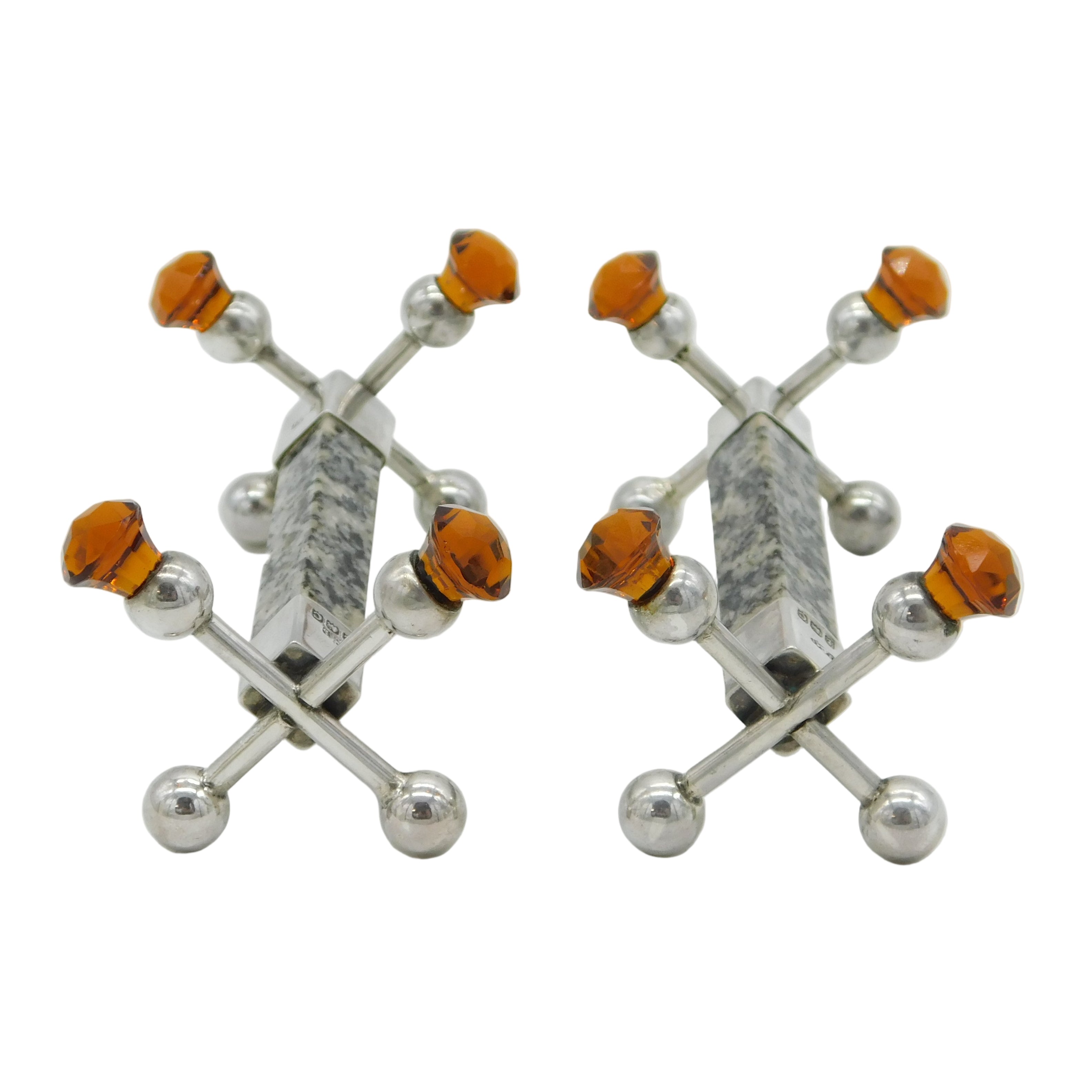 Sterling Silver, Grante, Citrine Scottish Thistle Knife Rest Pair Antique 1927 Birmingham