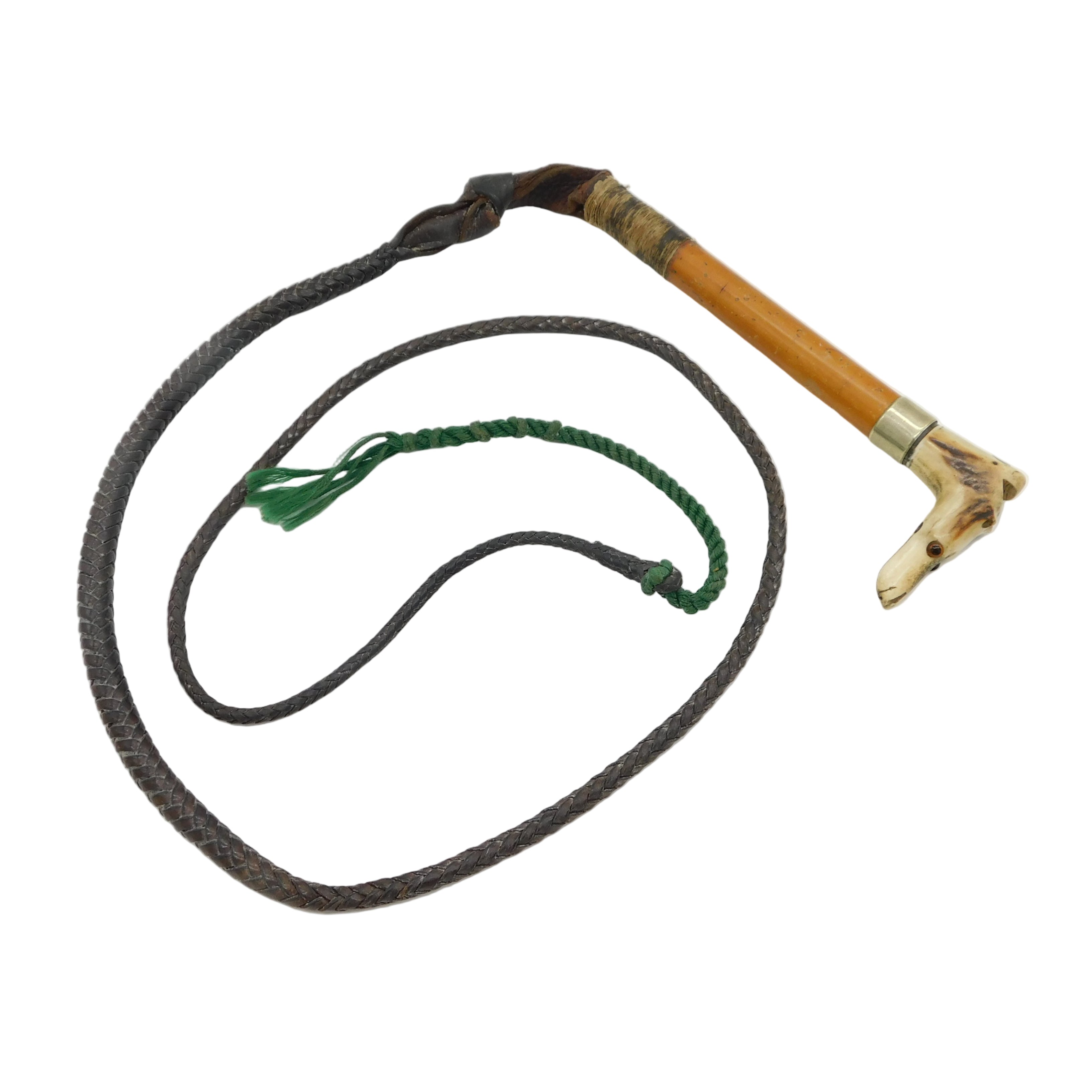 19th Century Ornate Carved Beagling Crop Whip & Dog Whistle Antique c1880