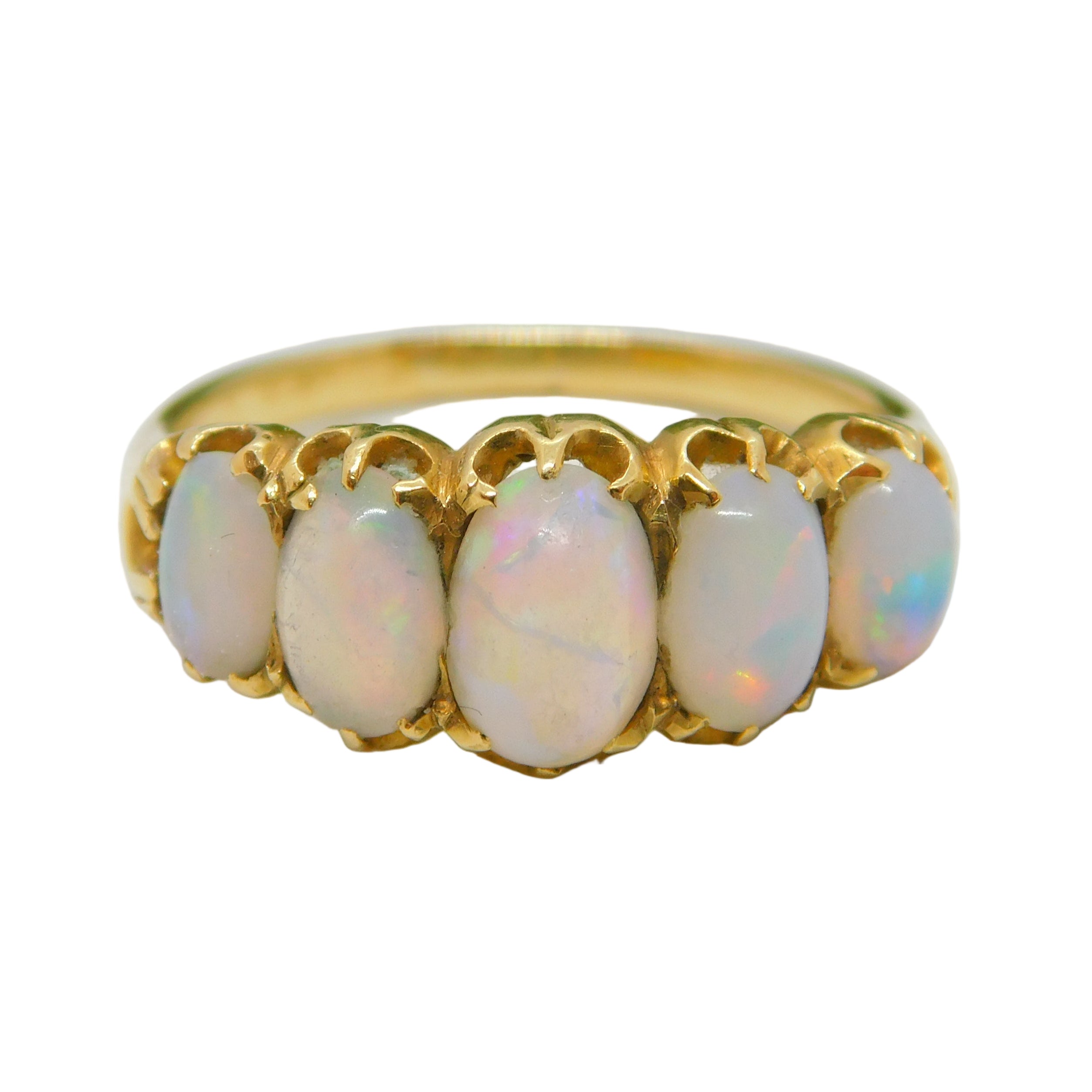 Victorian 18ct Yellow Gold Five Stone Cabochon Opal Ring Antique c1890