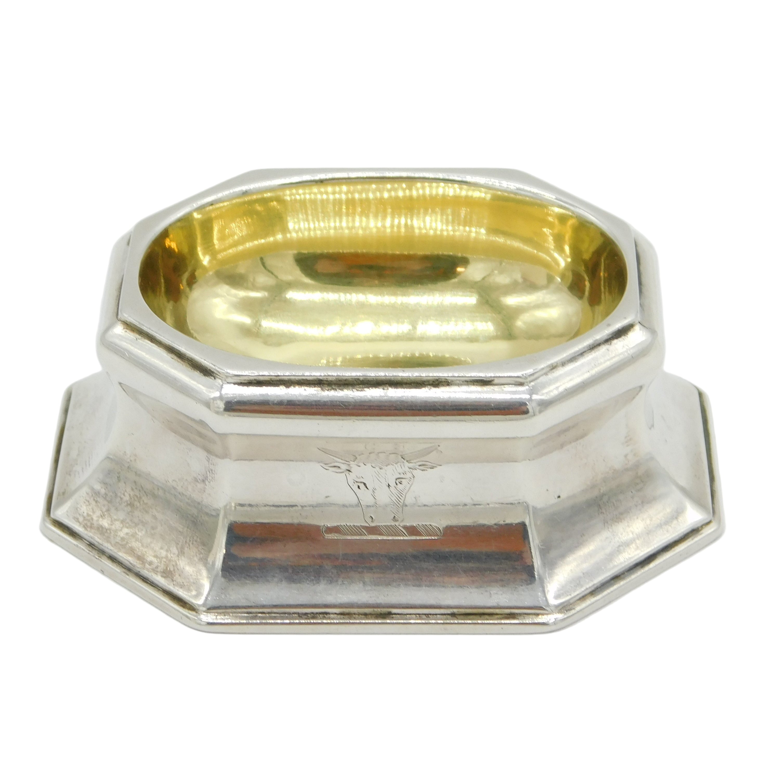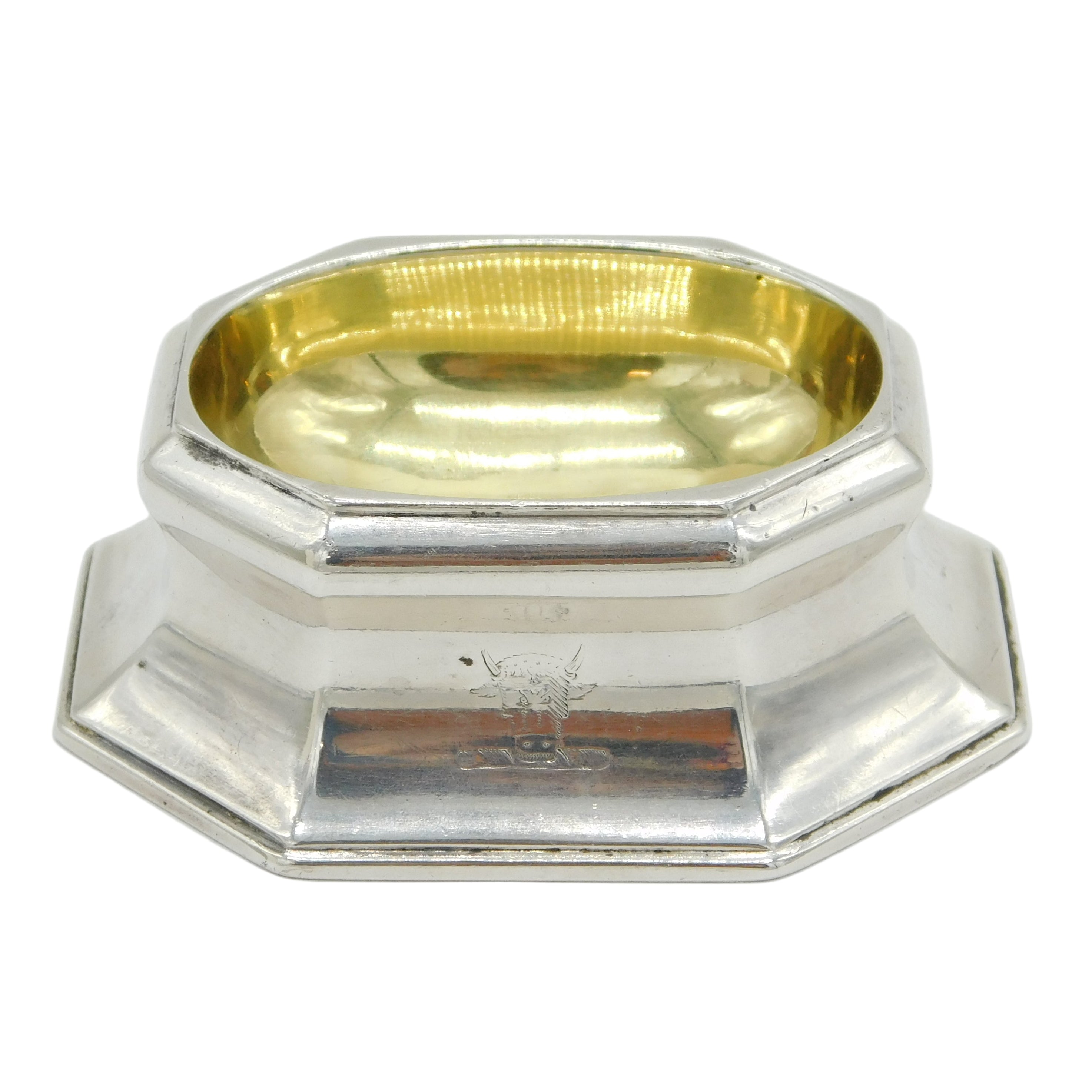 George II Sterling Silver Crested Trencher Salt Antique 1739 London Edward Wood