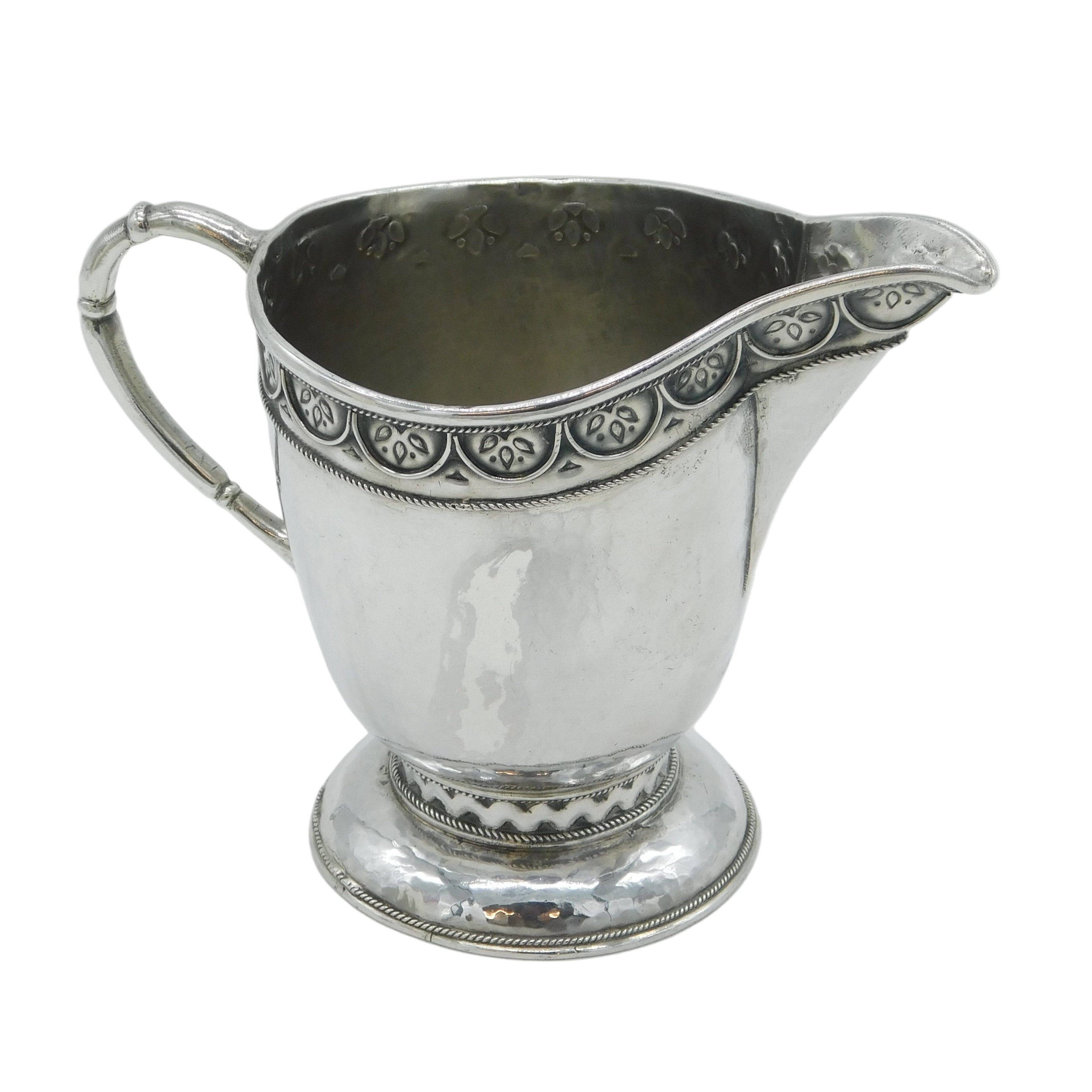 Arts & Crafts Planished Sterling Silver Floral Cream Jug Antique 1931 Chester
