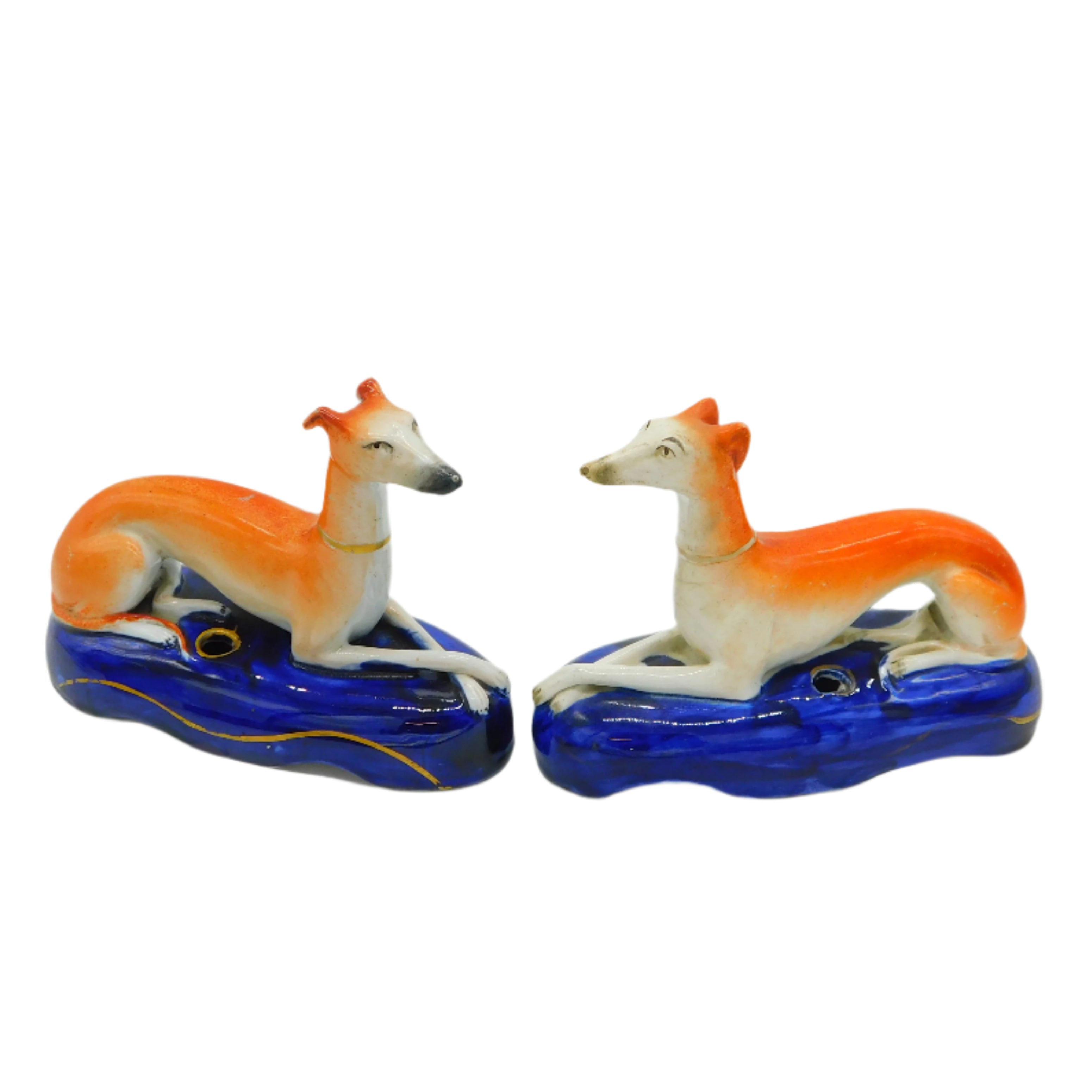 Victorian Pair of Staffordshire Greyhound Dog Pen Holders Antique c1840 AF