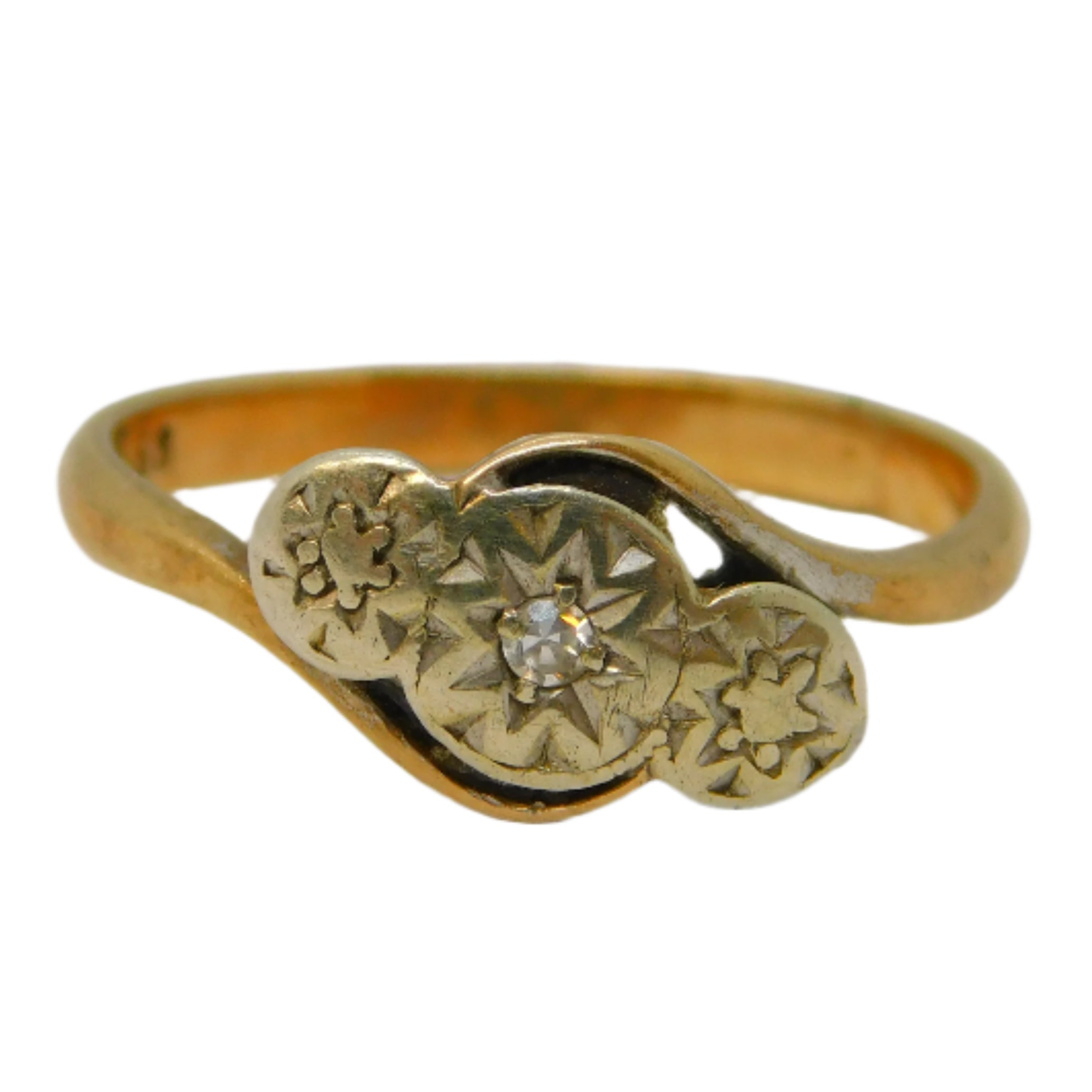 Edwardian 9ct Gold & Diamond Crossover Dress Ring Antique c1910
