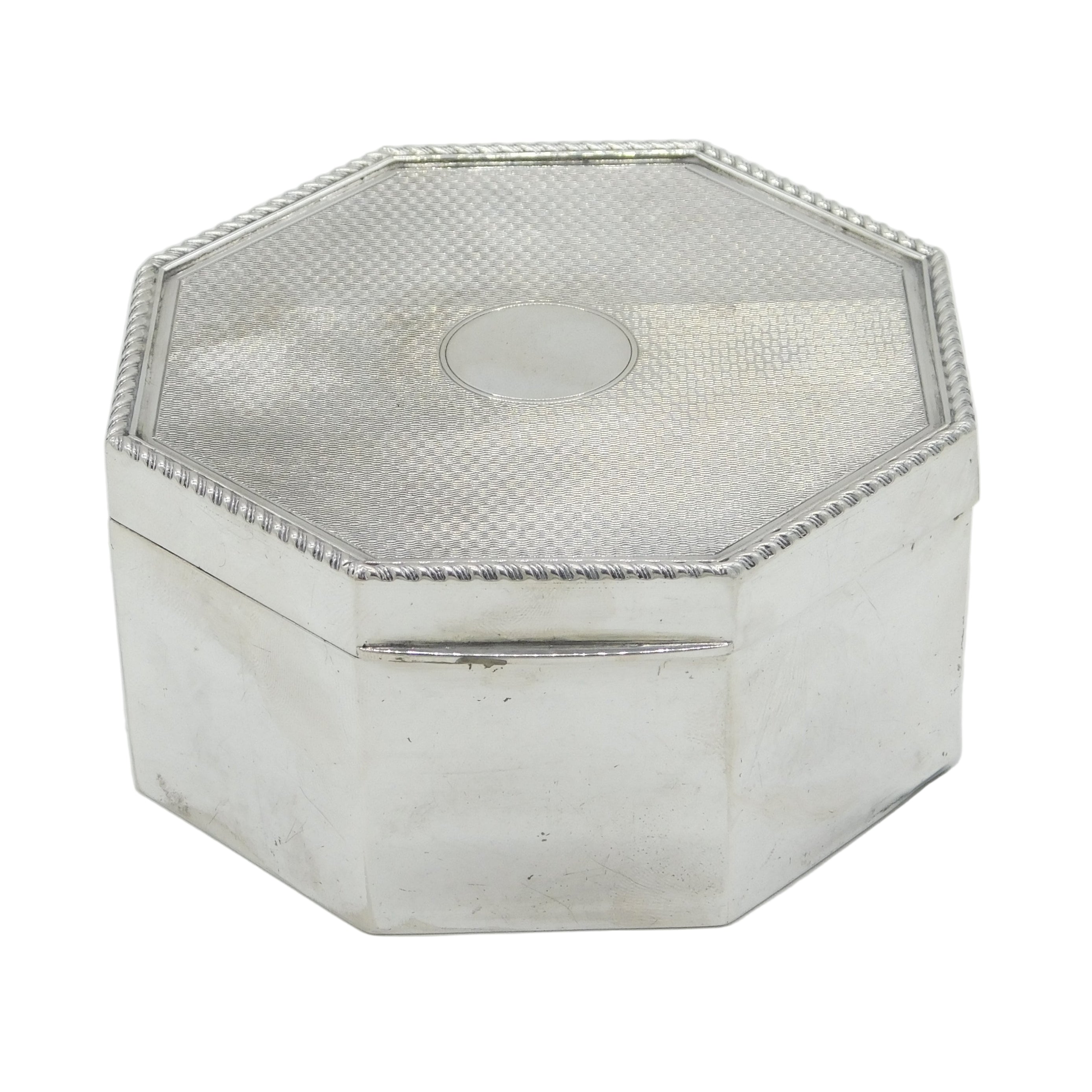 Sterling Silver Large Engine Turned Octagonal Jewellery Box Antique 1915 Deco