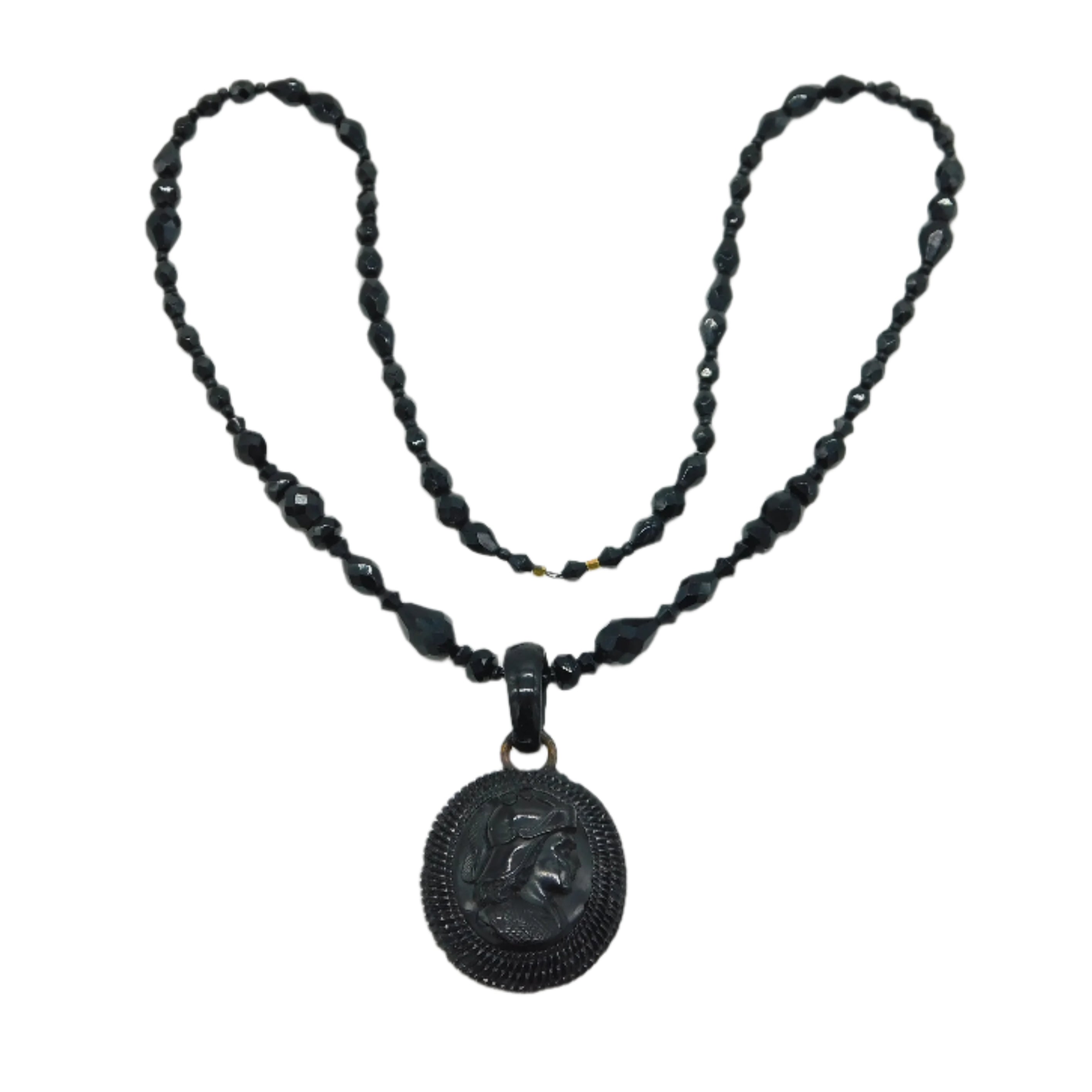 19th Century French Jet Cameo Mourning Necklace Gold Locket Back Antique c1860