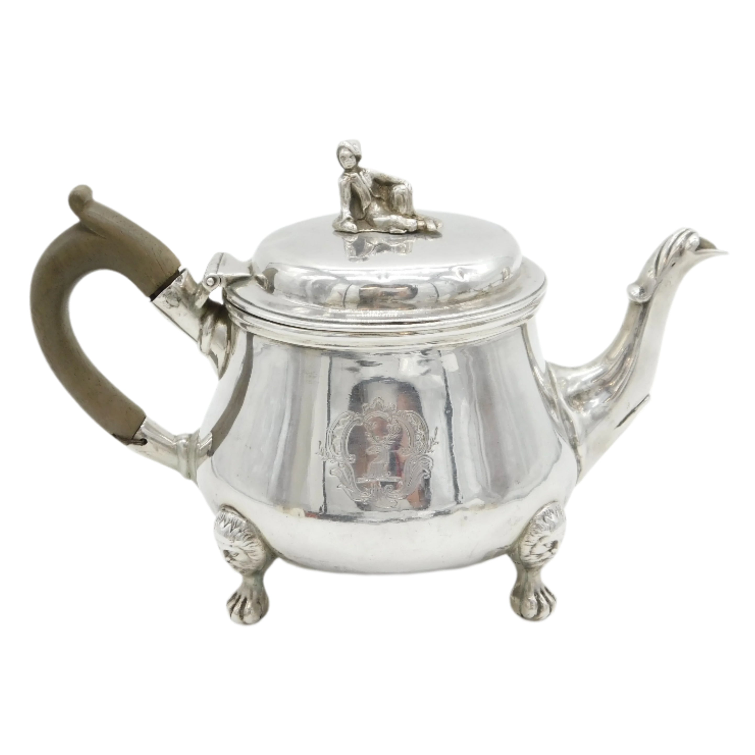 George III Sterling Silver Green Man Footed Bachelors Teapot Antique 1815 London
