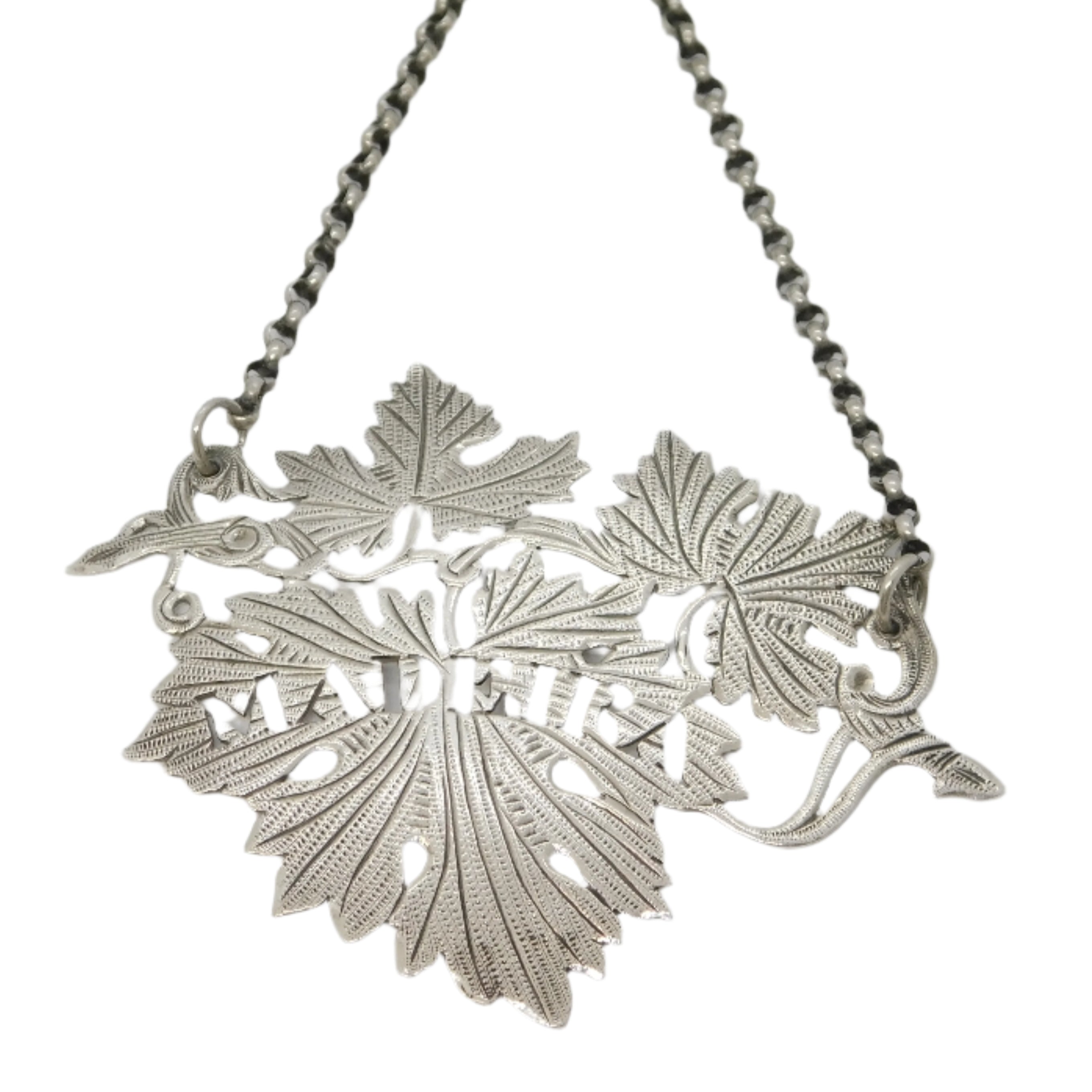 George IV Sterling Silver Grape Vine Madeira Decanter Label Antique 1827 London