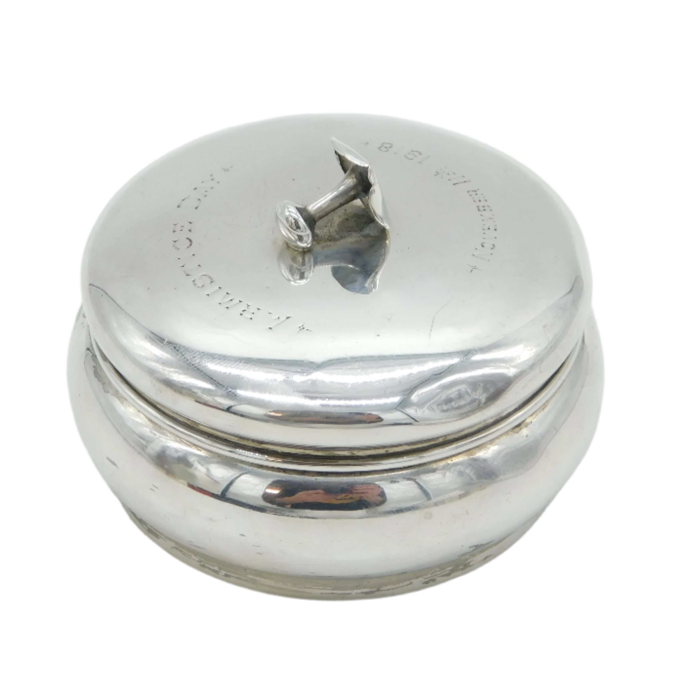 Edwardian Sterling Silver Collar Stud Box WW1 Inscription Antique 1909 Birmingham