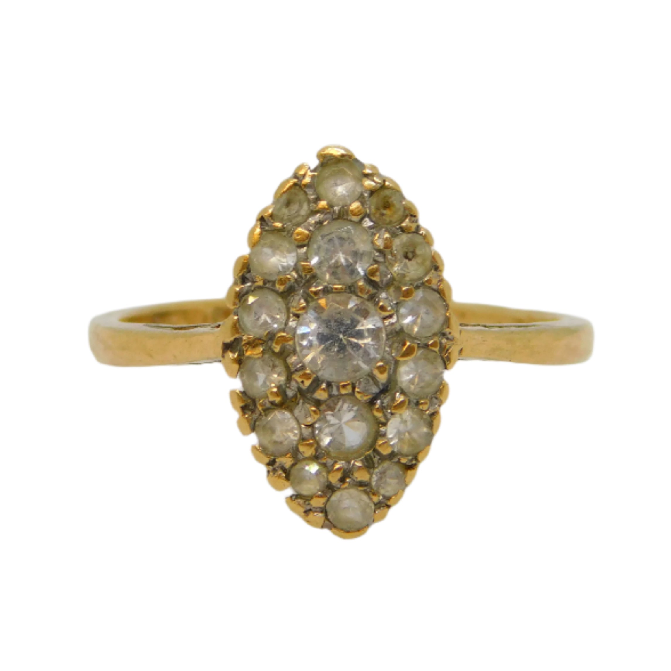 19th Century 18ct Two-Tone Gold & Diamond Set Navette Statement Ring Antique c1890 Belle Époque