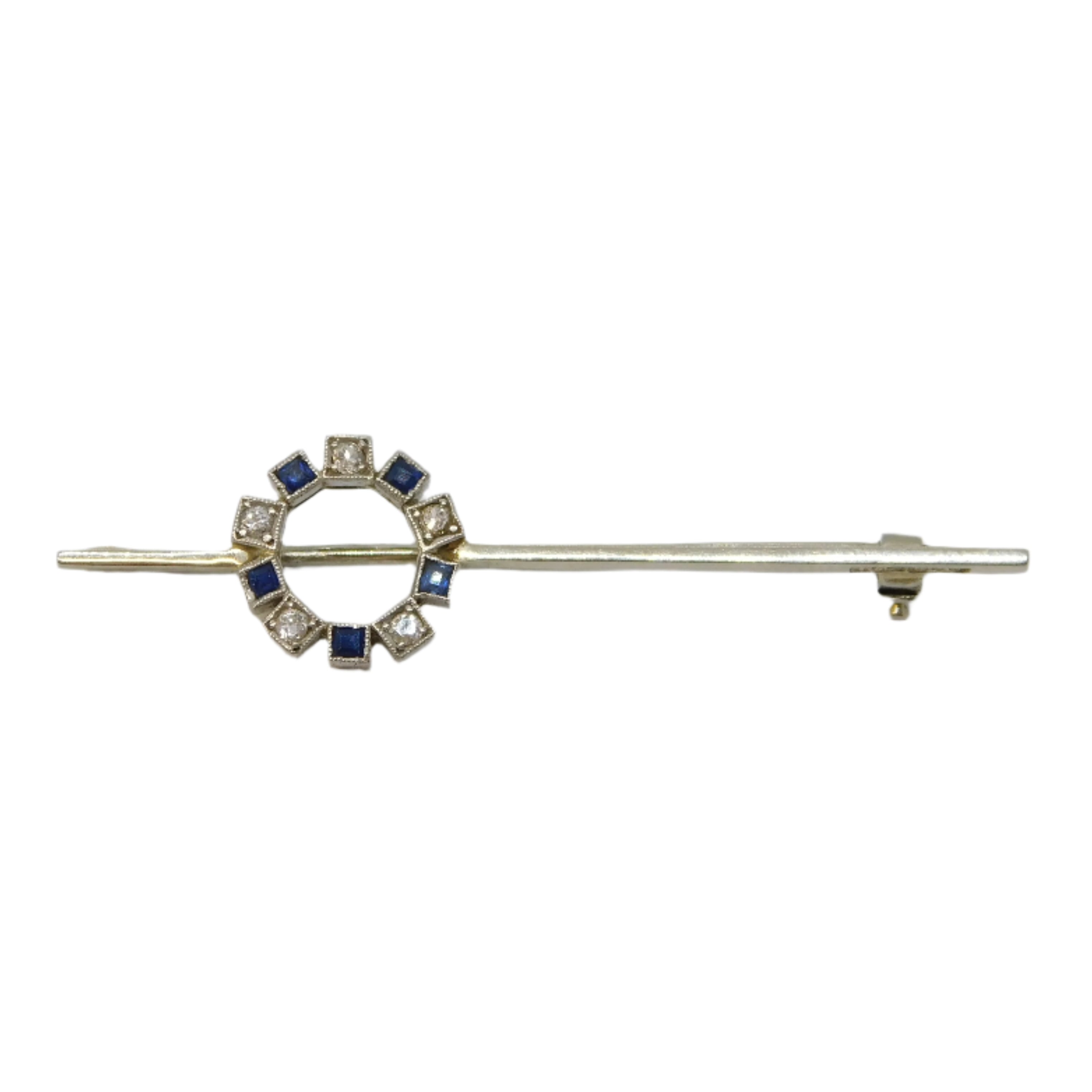 18ct White Gold, Sapphire & Diamond Sweetheart Brooch Antique c1890