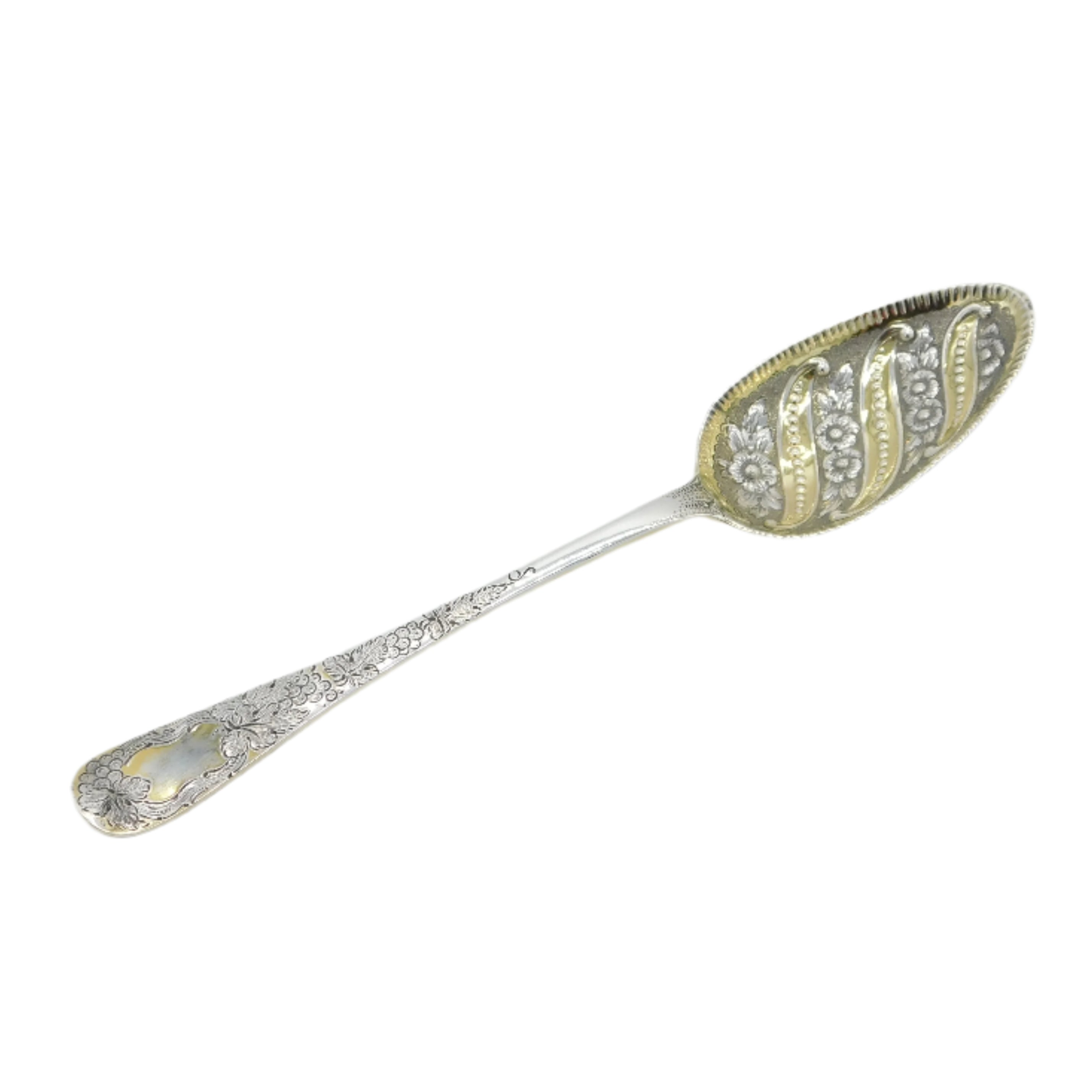 George III Sterling Silver Gilt Floral Dessert Serving Spoon Antique 1803 London