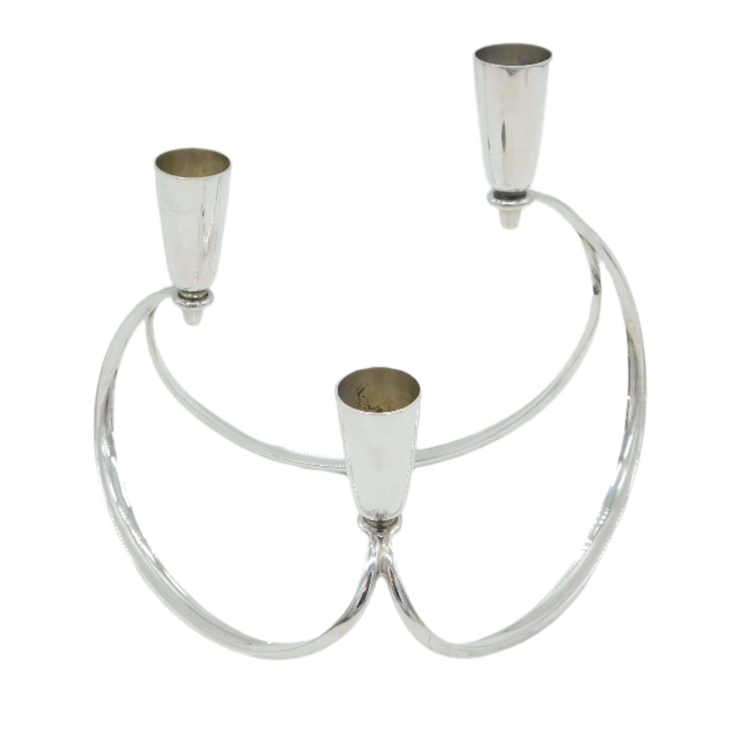 Danish Sterling Silver Modernist Three-Branch Candelabra Vintage c1970 by Cohr
