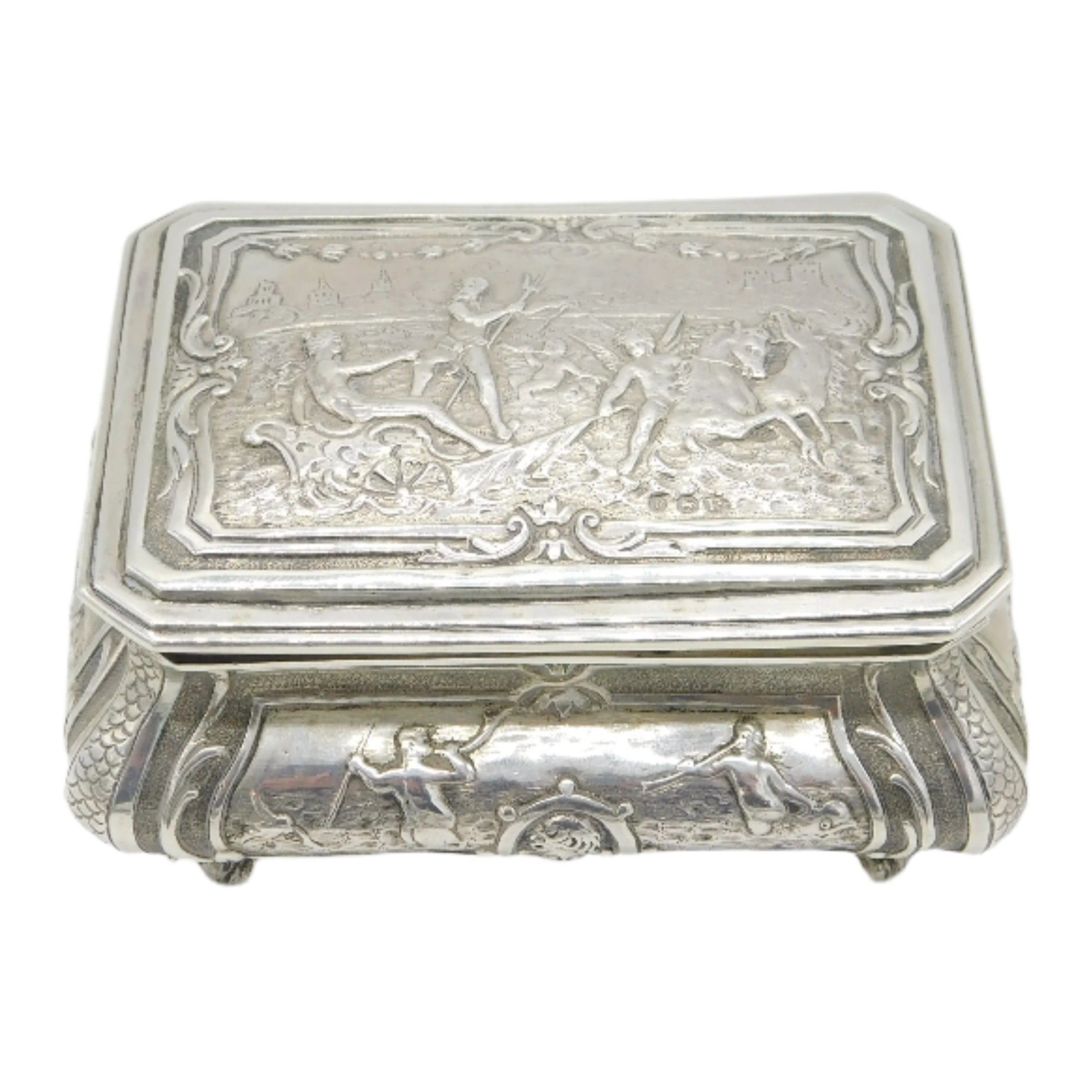 Victorian Sterling Silver Classical Battle Scene Jewellery Casket Antique 1890 London